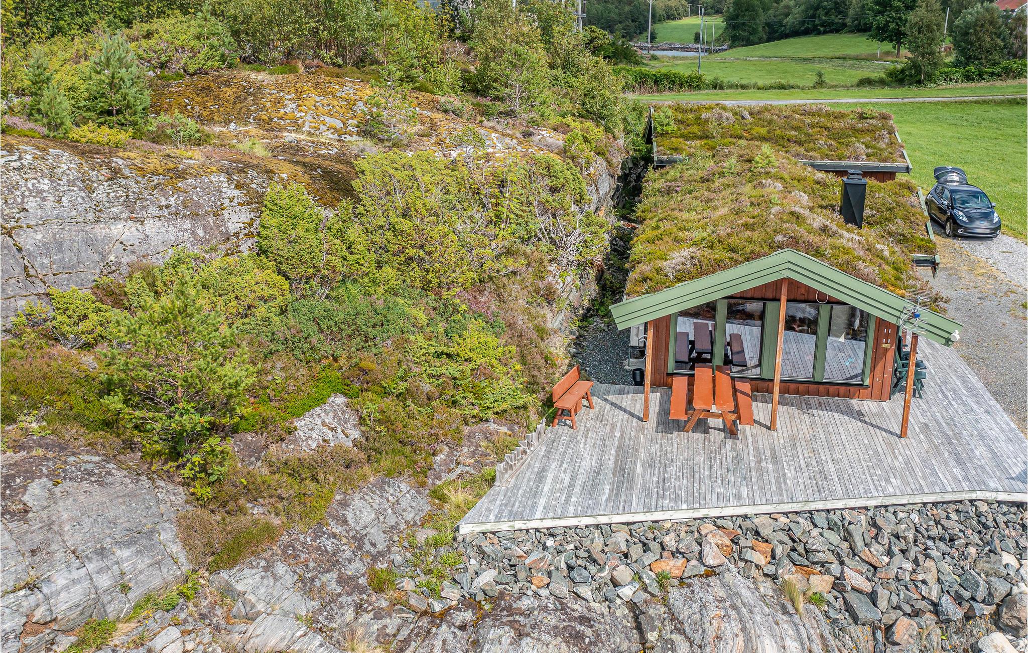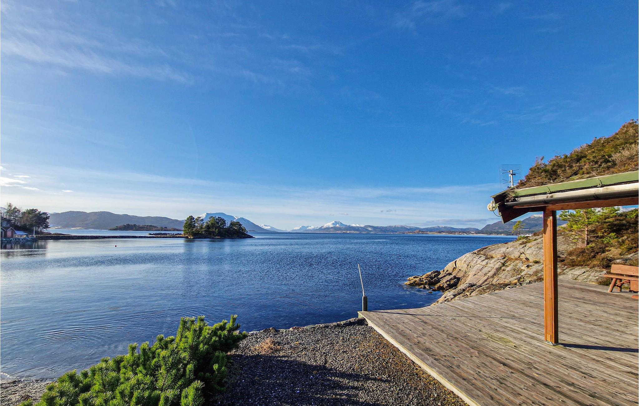 Feriehuset har en helt unik grund ved stranden. Med fjorden lige uden for døren kan I opleve den fantastiske norske natur på nært hold. Den store terrasse inviterer til mange timer udendørs i smukke omgivelser. Der er 200 meter til båden.