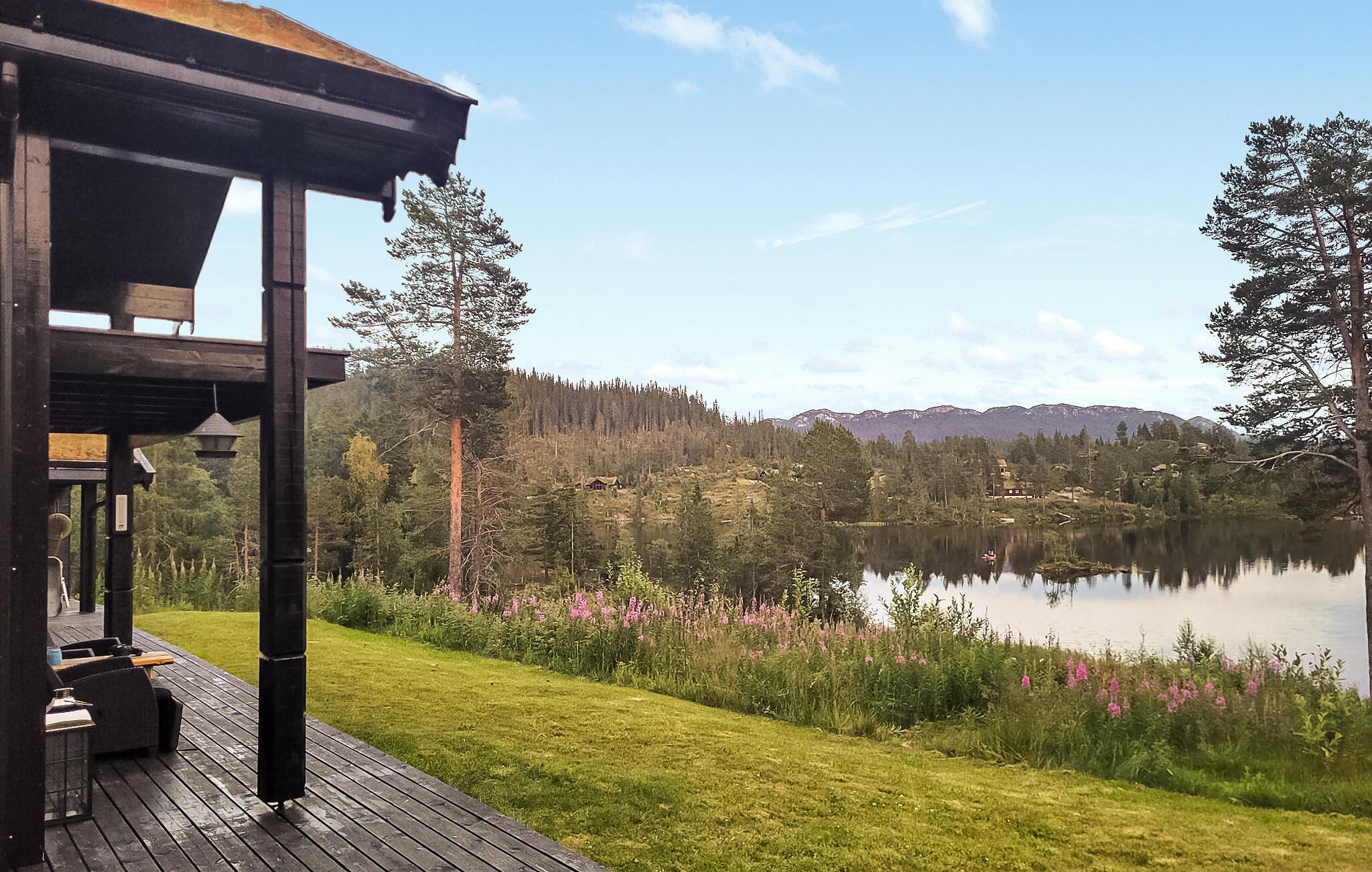Glæd jer til dette hyggelige feriehus lige ved en sø. Beliggende kun få meter fra Øvre Trovasstjønns klare vand inviterer jeres sommerhus i Øyfjell til at nyde den smukke natur fuldt ud. Start jeres dag med en afslappet morgenmad på terrassen, mens I stirrer ud på den funklende sø og de omkringliggende skove. Benyt lejligheden til at søsætte den medfølgende robåd og udforske søen, hvad enten det er på en stille fisketur eller en afslappende udflugt på vandet. Bagefter kan I køle af ved at svømme i søens friske vand. Lad hverdagen bag jer og nyd naturens fred og ro. Området byder på adskillige aktiviteter i hver sæson. Om sommeren inviterer vandrestier jer til lange ture i bjergene, mens I om vinteren finder præparerede langrendsløjper lige uden for døren. Udforsk det maleriske landskab på egen hånd eller tag en dagstur til Rauland skicenter, som ligger en kort køretur derfra. Øyfjell er en sand perle på alle tider af året. Efter en aktiv dag kan I varme jer om aftenen ved pejsen og nyde den klare luft i en venlig atmosfære.