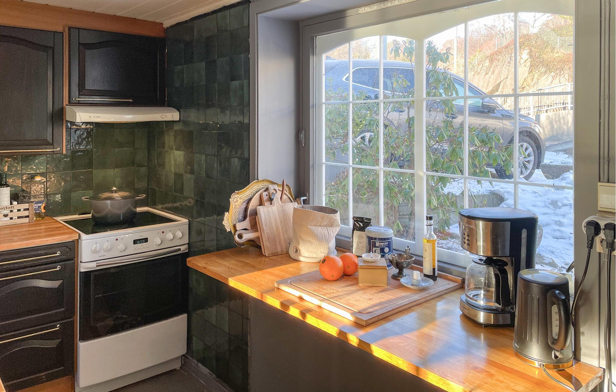 Oplev et afslappende ophold i jeres idylliske feriehus i Arendal. Med en direkte beliggenhed ved vandet og en smukt anlagt have tilbyder dette hus de ideelle rammer for en afslappende ferie i Norge. Find jer godt til rette i det hyggelige og kærligt designede interiør. Den smagfulde indretning med varme farver, træelementer og komfortable siddepladser skaber en indbydende atmosfære. Slap af i den stilfulde opholdsstue med udsigt til vandet og nyd den hyggelige varme fra brændeovnen. Afslut dagen på den komfortable sofa og brug det separate område med TV til en hyggelig filmaften.
