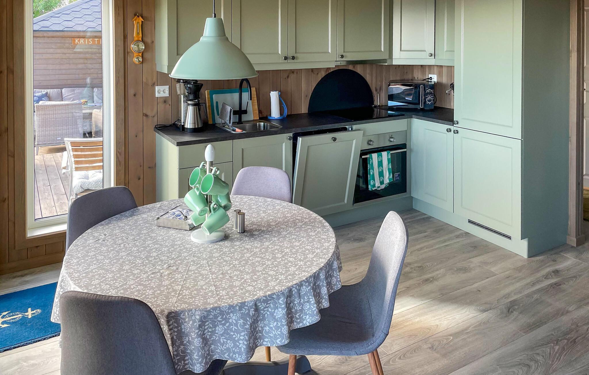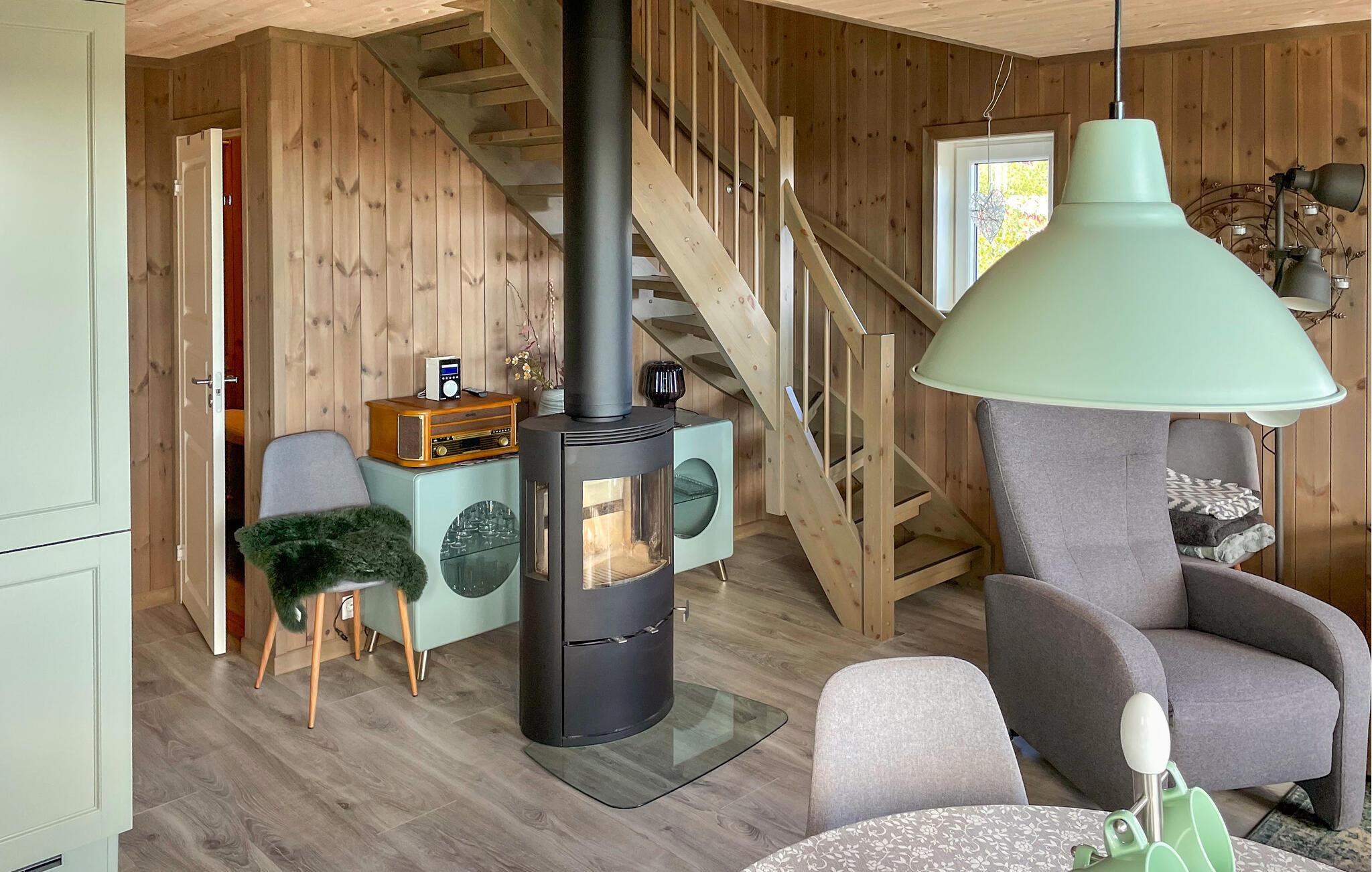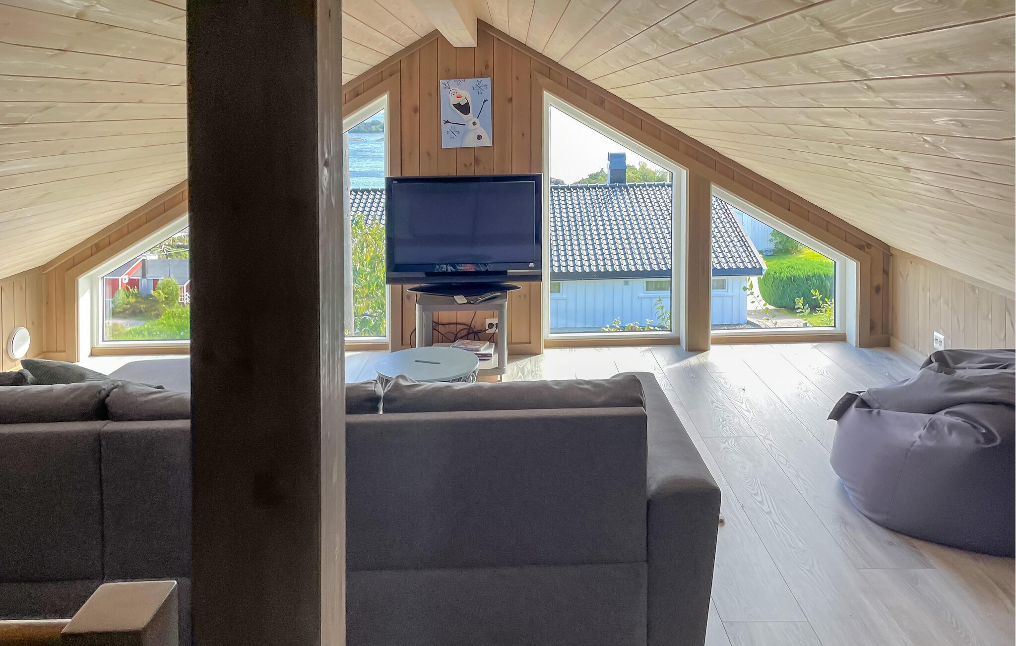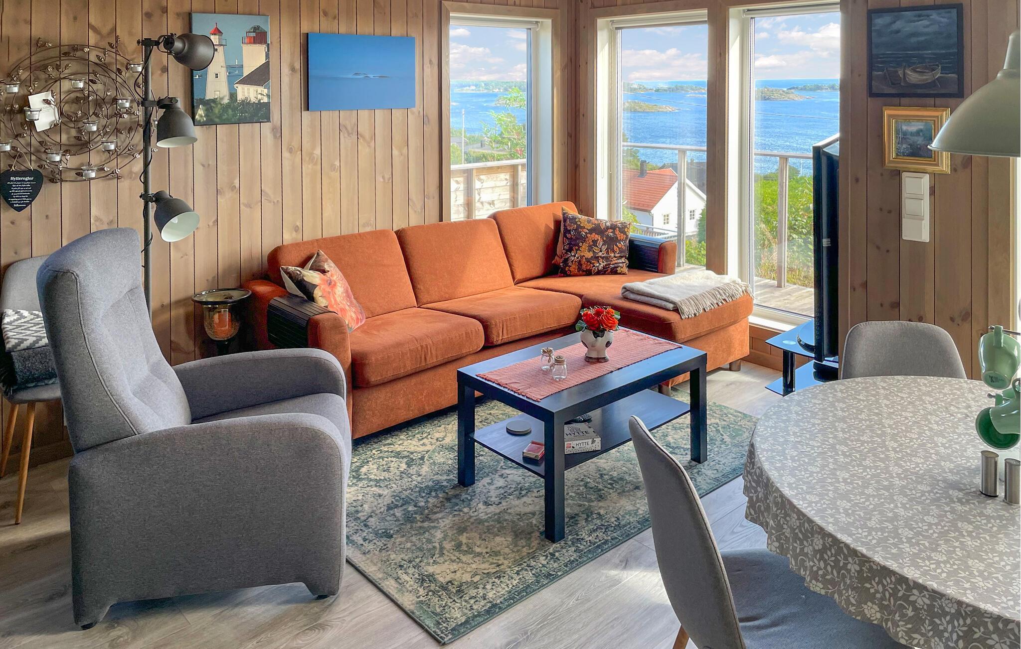 Rustik charme og komfort forenes harmonisk i dette hus. Varme trævægge, lyse møbler og store vinduer med en fantastisk udsigt over havet skaber en atmosfære, hvor I hurtigt kan slappe af og lade op. Sæt jer til rette i den behagelige sofa, bladr i jeres feriebøger eller nyd blot havudsigten.