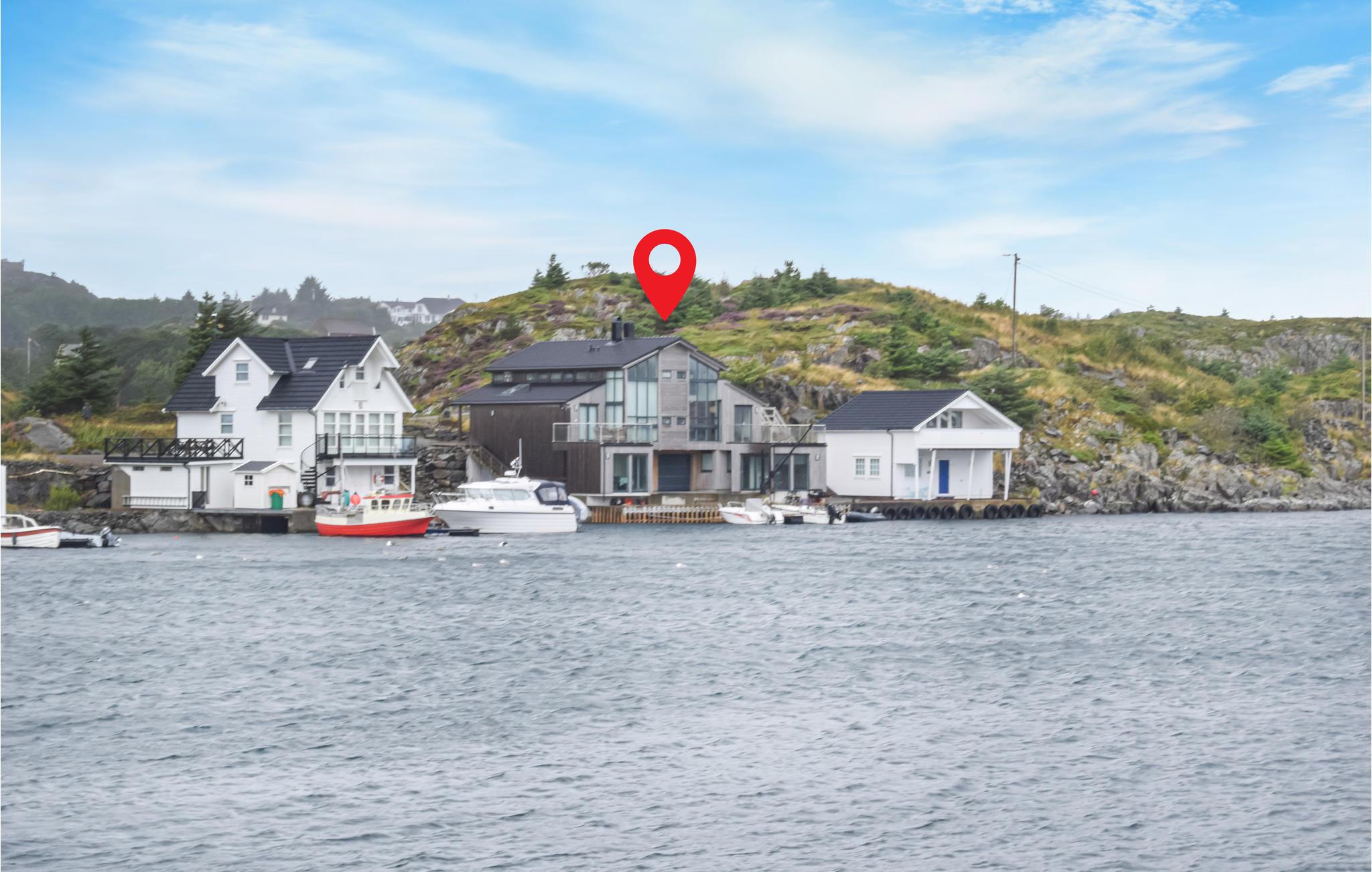 Huset har en stor mole og terrasse med fantastisk panoramaudsigt over fjorden. Der kan du sætte dig ned, spise en bedre middag og bare nyde din ferietid med familie og venner. Der er et legeområde på kajen og et smukt udhus med køkken til filetering, madlavning og måltider.