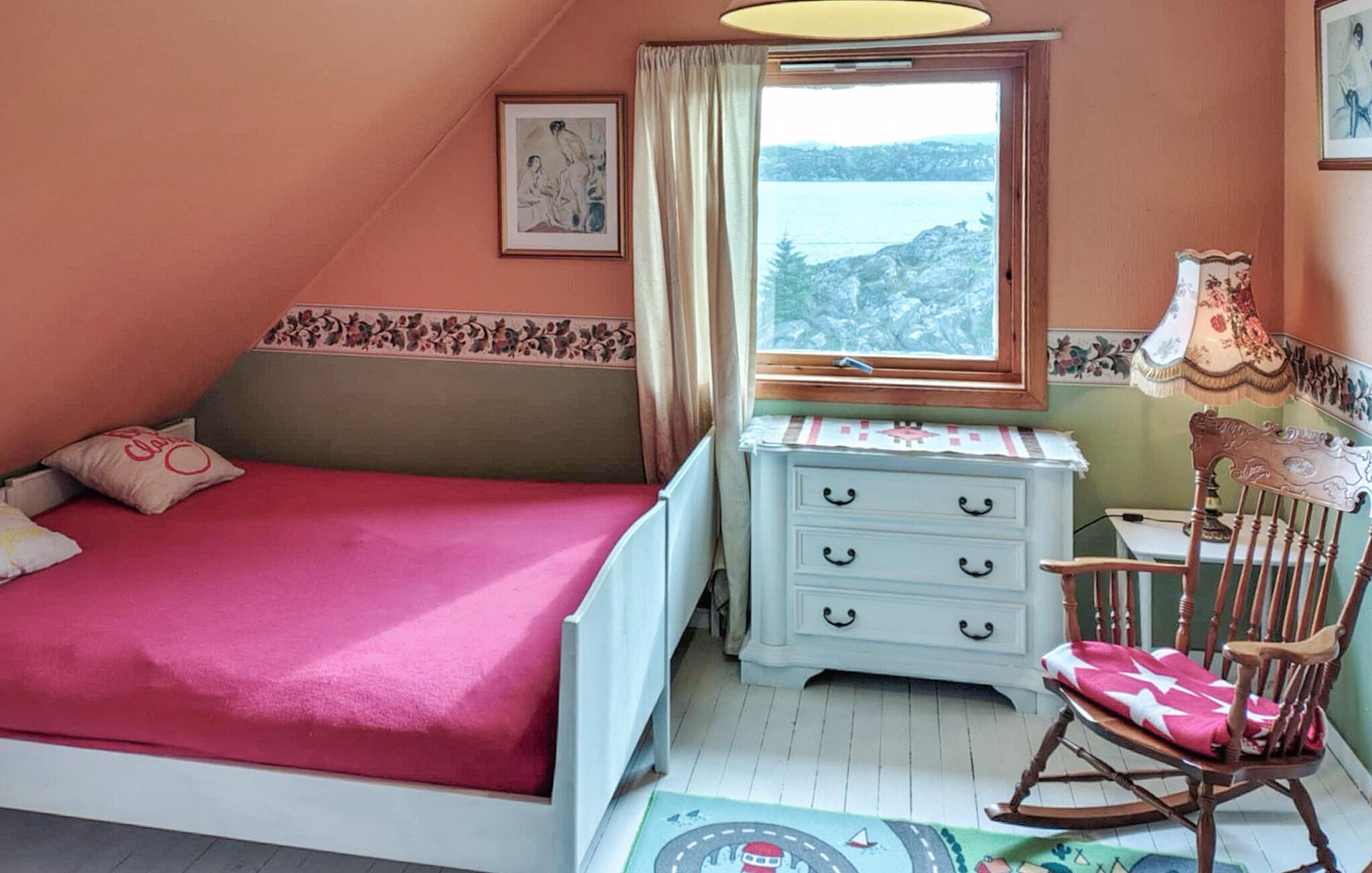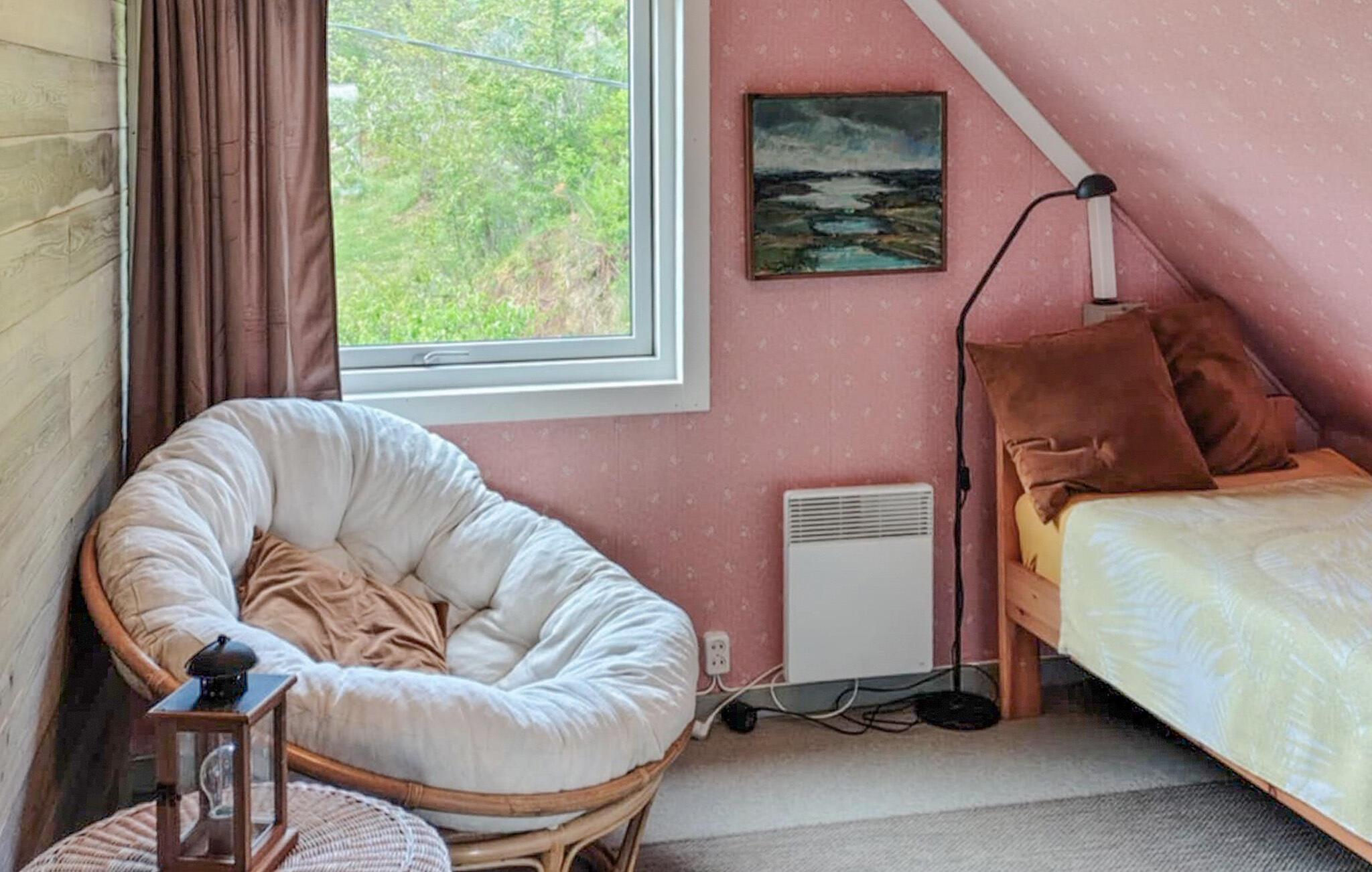 Huset har en fremragende beliggenhed ved fjorden. Glæd jer til smagfulde og farverige værelser, nyd den vidunderlige udsigt, så snart I vågner, spis sammen ved det lange spisebord og sæt jer godt til rette i sofaen om aftenen efter en begivenhedsrig dag. Ild i brændeovnen skaber en ekstra hyggelig atmosfære.