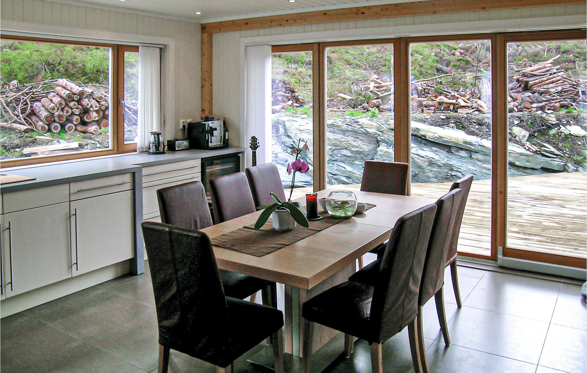 Feriebolig i et funkishus i Mosterhamn kun 50 m fra fjorden hvor der er fremragende fiskemuligheder. Til huset hører en stor gasgrill, tube og vandski, området er ideelt til dykning og fiskeri. Der er gode chancer for sol på terrassen og to golfbaner i nærheden. Der er mange vandrestier i den omgivende natur, bl.a. Siggjo der ligger 474 m.o.h. Det er det højeste punkt i økommunen Bømlo. Der er mange udflugtsmuligheder, bl.a. Mosterhamn med Moster gamle kirke og Moster amfiteater. Det tager 20 min.i bil til Leirvik med Sunnhordaland museum, gågader og restauranter. 45 min til Haugesund by. Tag på dagsture til Bergen og Hardangerfjorden. Gratis trådløst internet via fibernet.