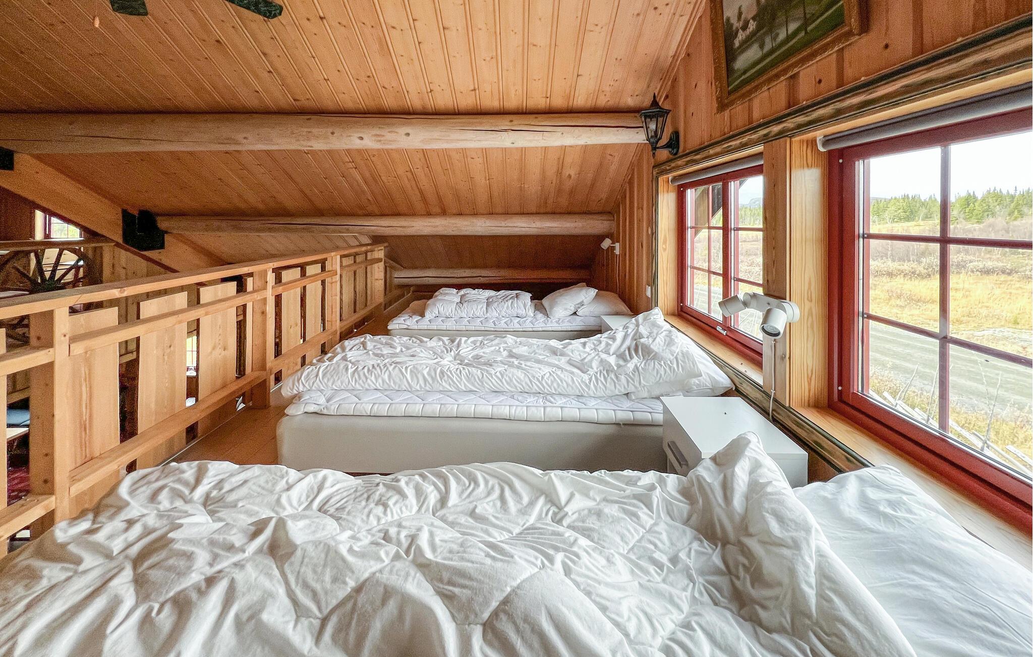 Jeres charmerende og rummelige træhus er beliggende midt i Norges maleriske natur og tilbyder det perfekte sted til afslappende dage med familien. Start dagen med en kop kaffe i den hyggelige stue, hvor træinteriøret skaber en varm og indbydende atmosfære. Saml hele familien i den komfortable sofa, og nyd jeres fælles måltider ved spisebordet. Det veludstyrede køkken har alt, hvad I behøver for at tilberede lækre familiemåltider. Udenfor kan I nyde den fantastiske udsigt over det omkringliggende landskab. Den friske luft og de beroligende grønne omgivelser skaber en oase af ro og afslapning. Brug grillhytten til hyggelige aftener med en lækker barbecue.