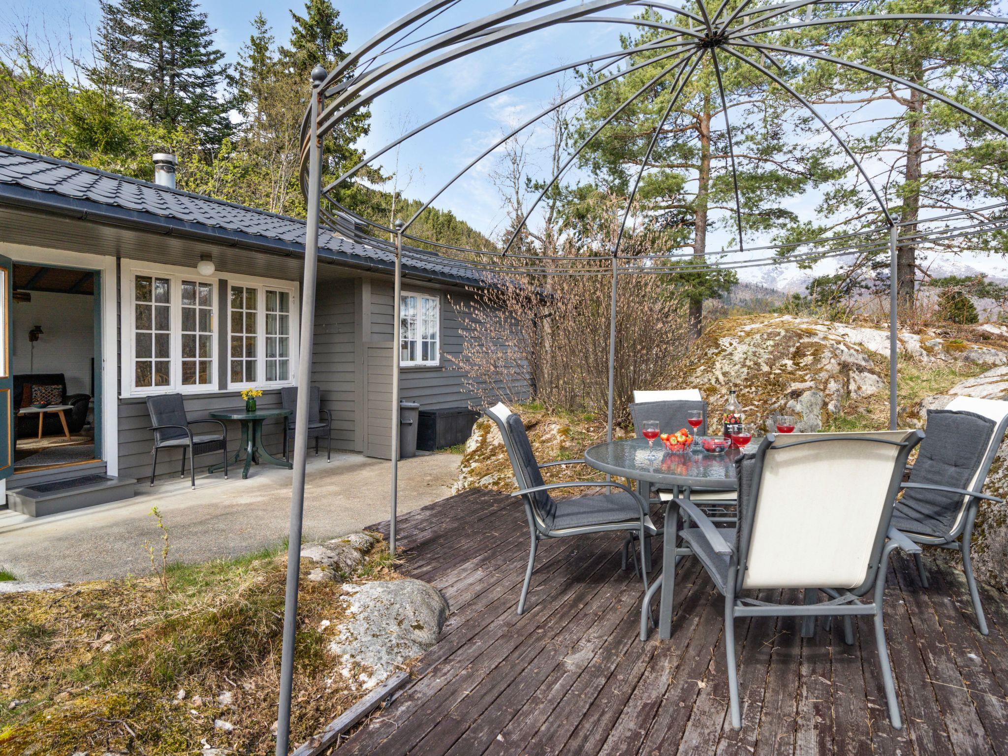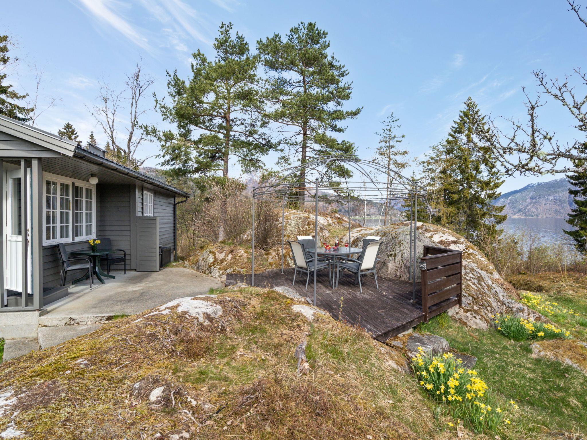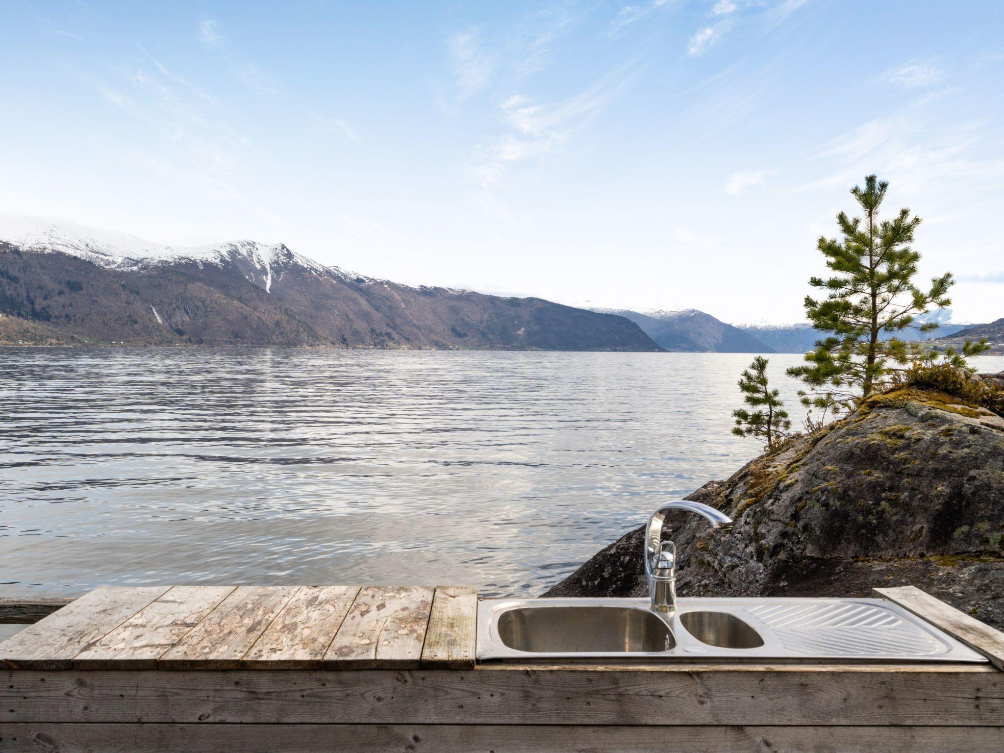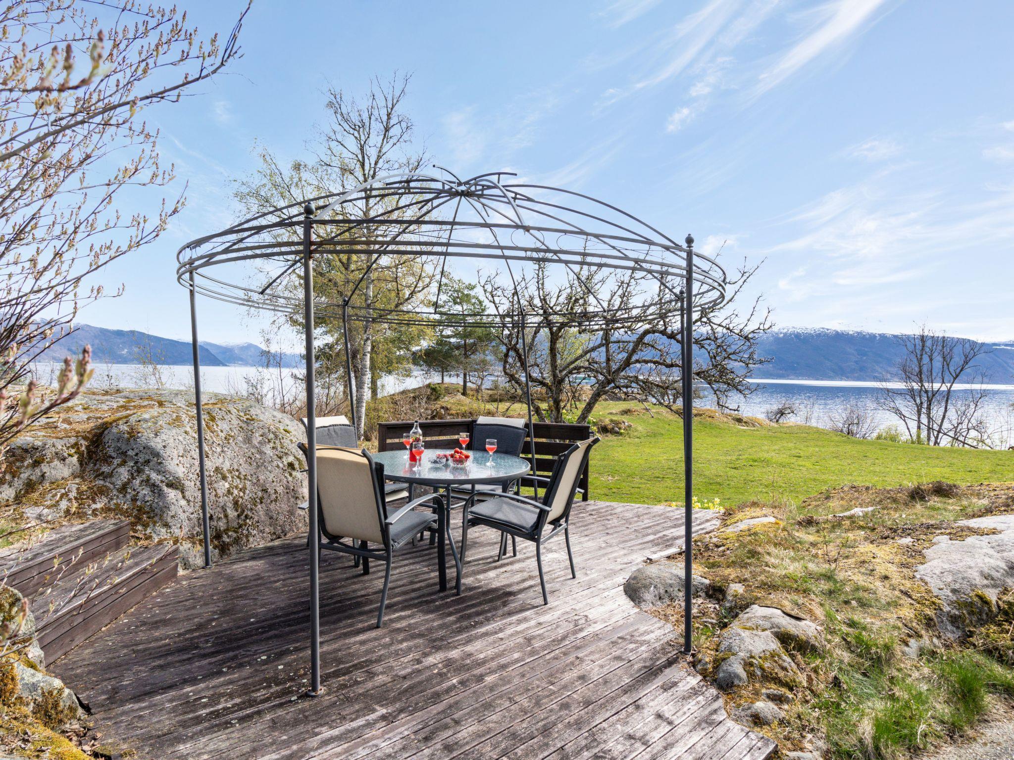 Beautiful cottage "Sandviki", 15 m a.s.l., surrounded by trees. In a hamlet 4 km from the centre of Balestrand, 42 km from the centre of Høyanger, 49 km from the centre of Sogndal, 50 m from the sea, in a cul-de-sac. Private: natural state property with meadow. Available: boat (extra). 100 m long motor access (via unmade road). Parking on the premises. Supermarket 4 km, bus stop "Thue" 450 m, railway station "Bergen" 196 km, ferry "Bergen" 196 km, sandy beach "Balestrand" 4 km. Please note: private mooring.