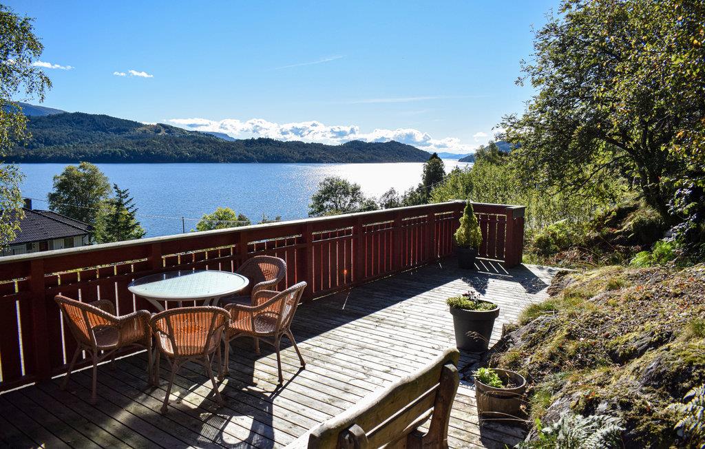 Dette skønne feriehus ligger sydøst for Bergen nær Björnafjorden. Det lyse, komfortable interiør er præget af de mange træelementer, der skaber en indbydende og varm atmosfære. Tilbring afslappende timer i den hyggelige stue og varm jer om aftenen foran brændeovnen efter en dag i den friske luft. Træterrassen indbyder til stemningsfulde aftener med spektakulære solnedgange. Der er også et grillhus ved vandet til milde sommeraftener.