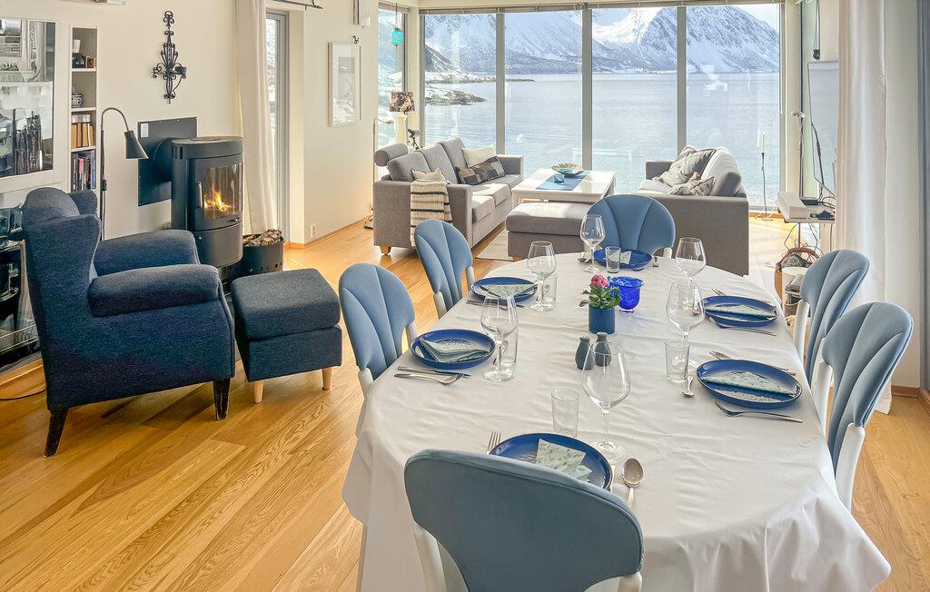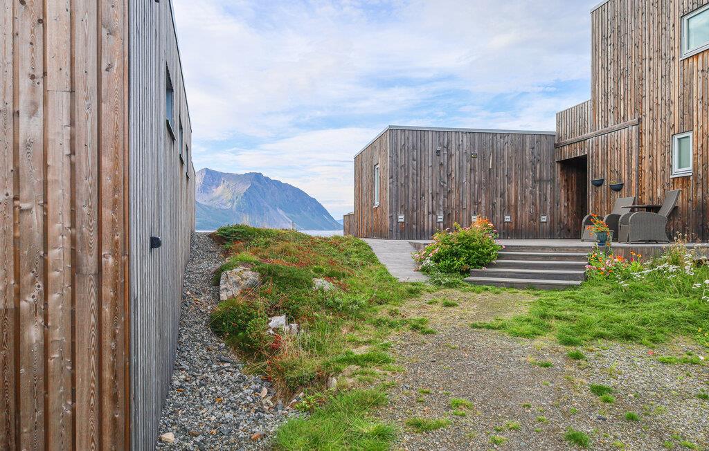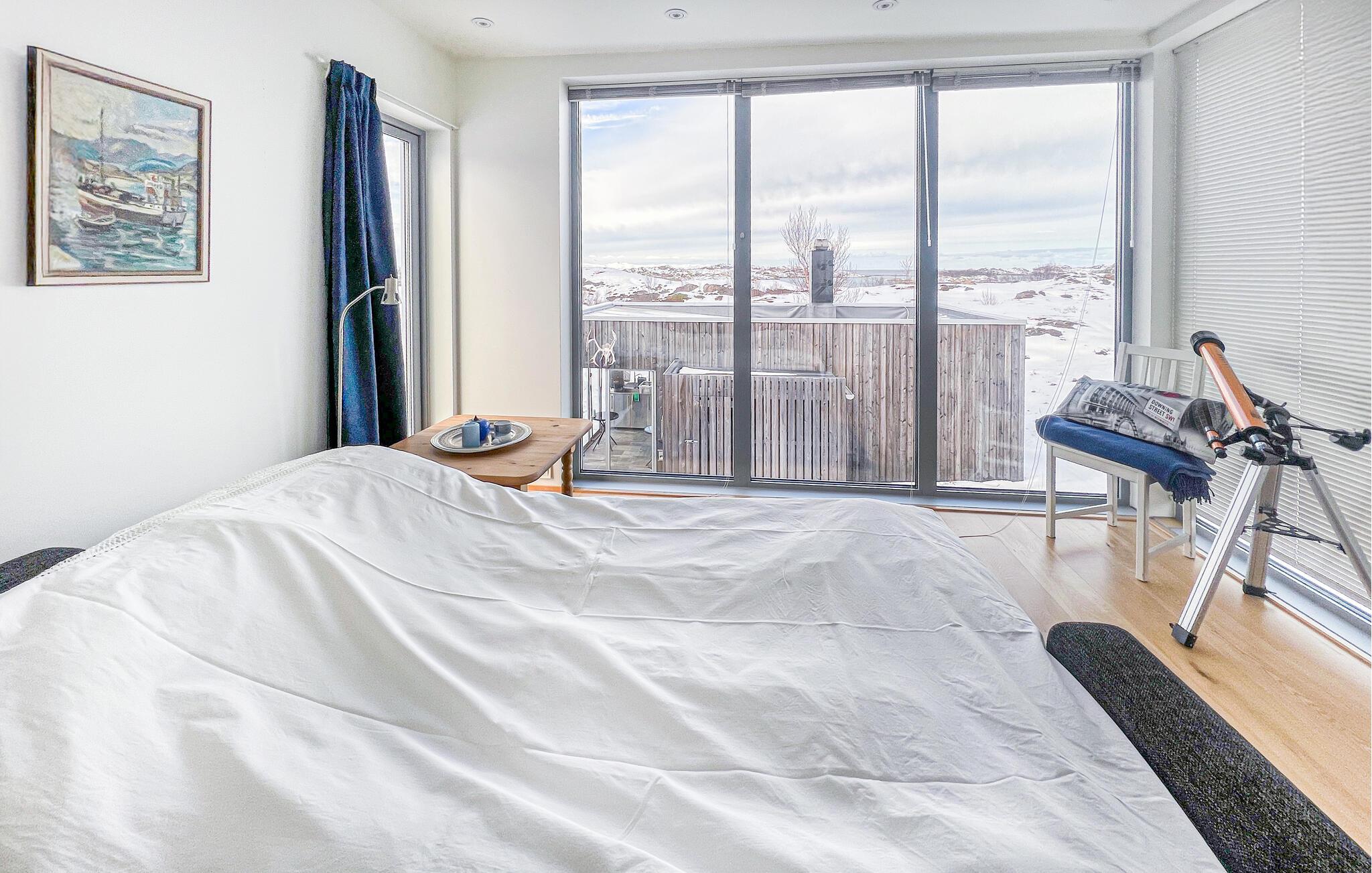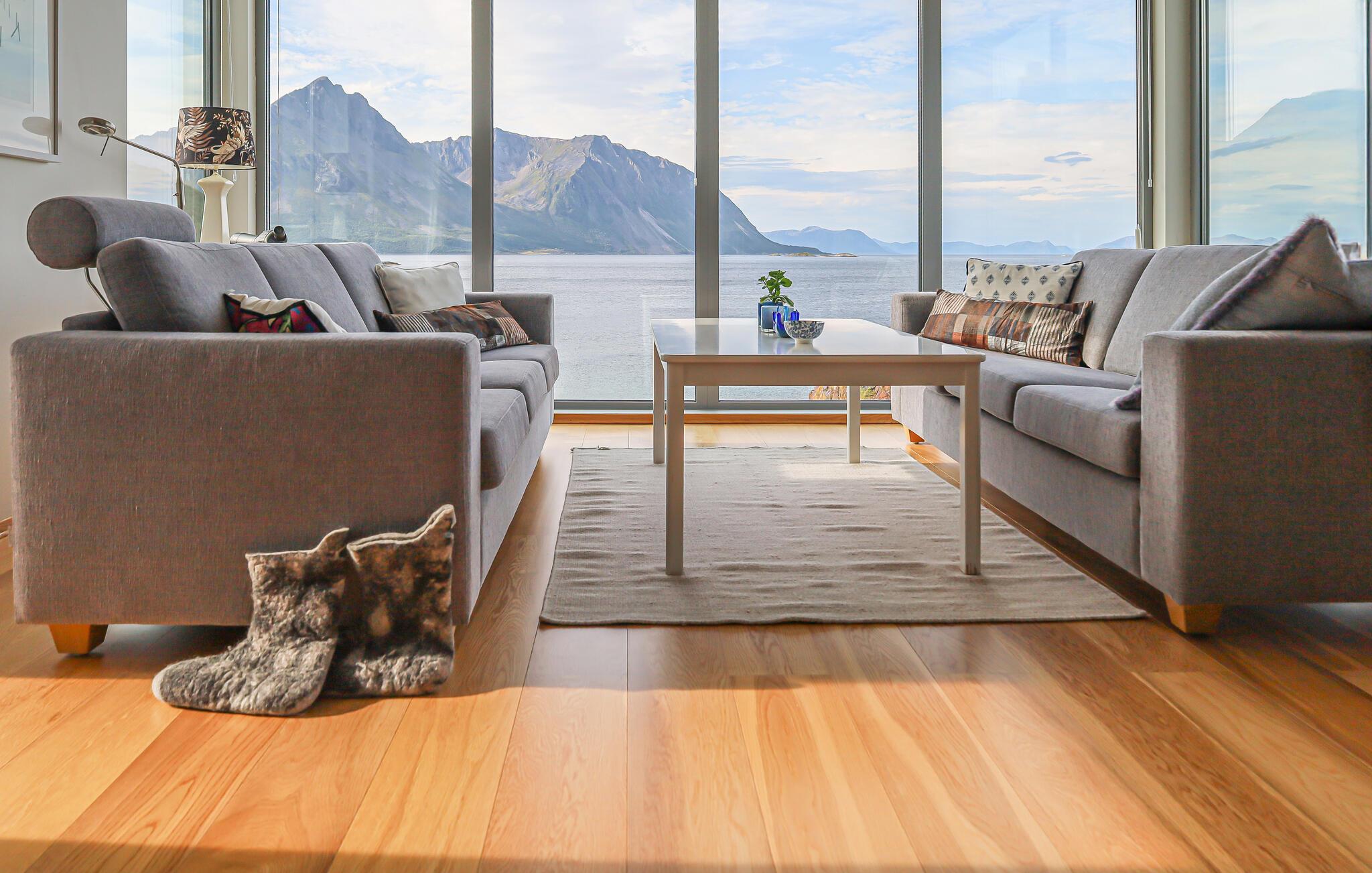Træd udenfor og oplev den unikke beliggenhed direkte ved Andfjorden. Brug udendørsområdet til at slappe af i spabadet eller nyd udsigten over Andøy og det åbne hav. Læn jer tilbage på terrasserne og lad omgivelsernes ro sænke sig. Om sommeren kan I opleve midnatssolen herfra, mens nordlyset om vinteren, med lidt held, vil oplyse himlen. Det naturlige landskab smelter hyggelig sammen med landskabet og skaber en følelse af afsondrethed og frihed.