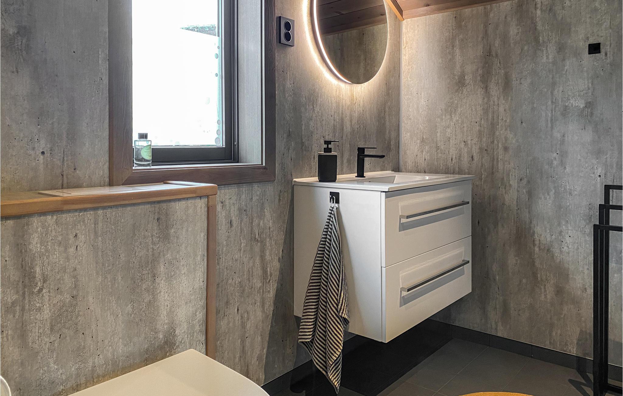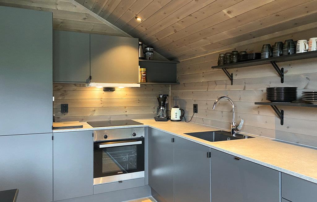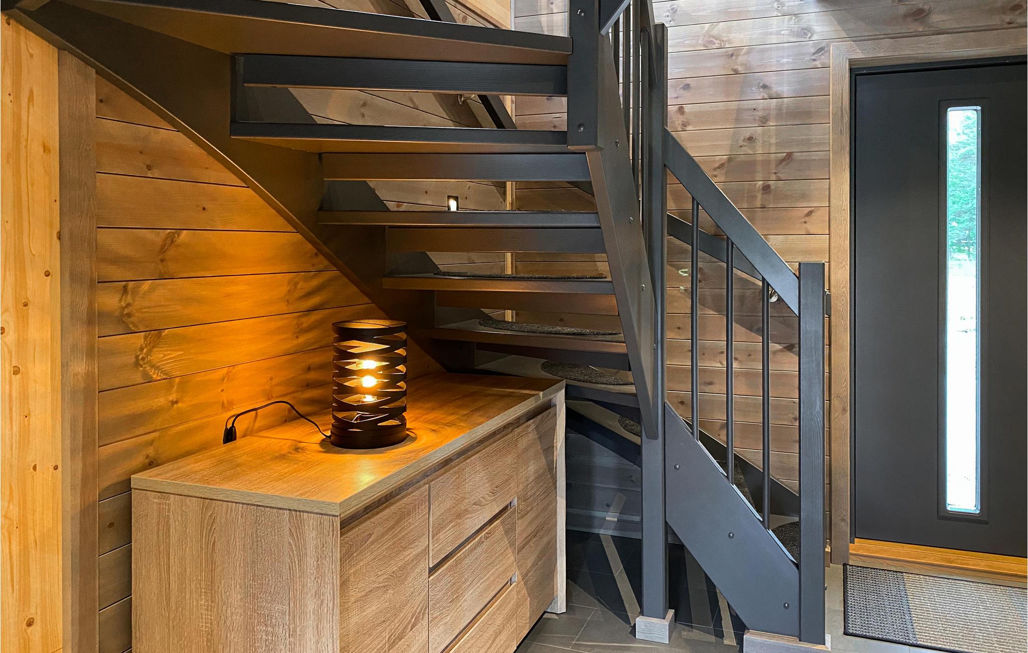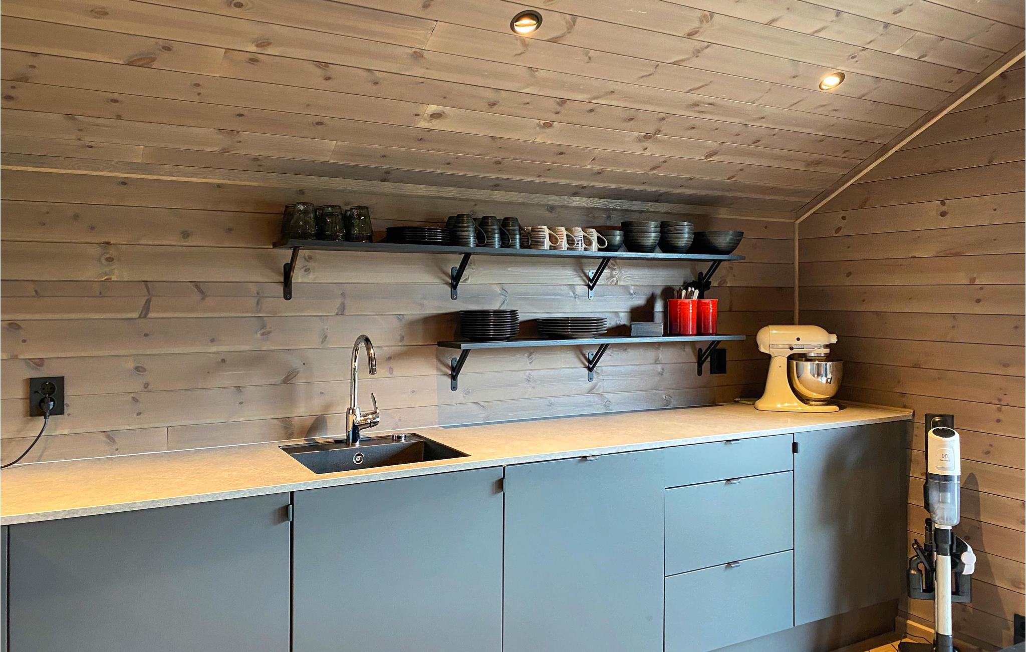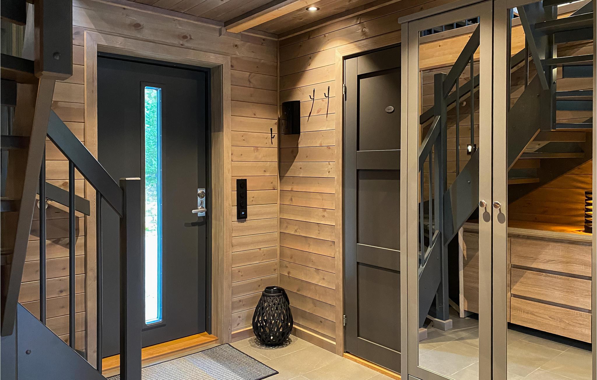 Velkommen til dette smagfulde og indbydende feriehus, som er fordelt over to etager. Mens soveværelserne ligegr i stueetagen, kan I tilbringe tid sammen med familien på 1. sal. Find jer godt til rette i lænestolene eller sofaen, sæt jer med en god bog eller hyg jer med et spil kort med familien. Husets moderne indretning skaber rolige rammer omkring jer, og der er gode faciliteter til alt fra madlavning til afslappende stunder.