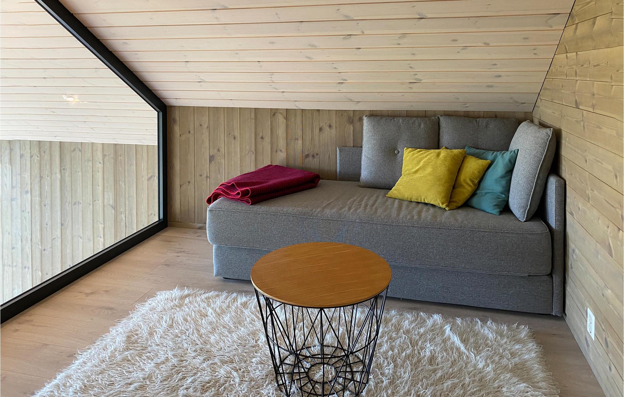 Der er en helt fortryllende udsigt fra dette skønne feriehus. Her er det næsten uundgåeligt at bruge mange timer i stuen, tænde op i brændeovnen og nyde udsigten gennem panoramavinduerne fra sofaen, eller mens man spiller brætspil rundt om spisebordet. I kan tilbringe solskinstimerne på den store træterrasse og lægge planer for den næste feriedag over en kop te eller kaffe ved havebordet.