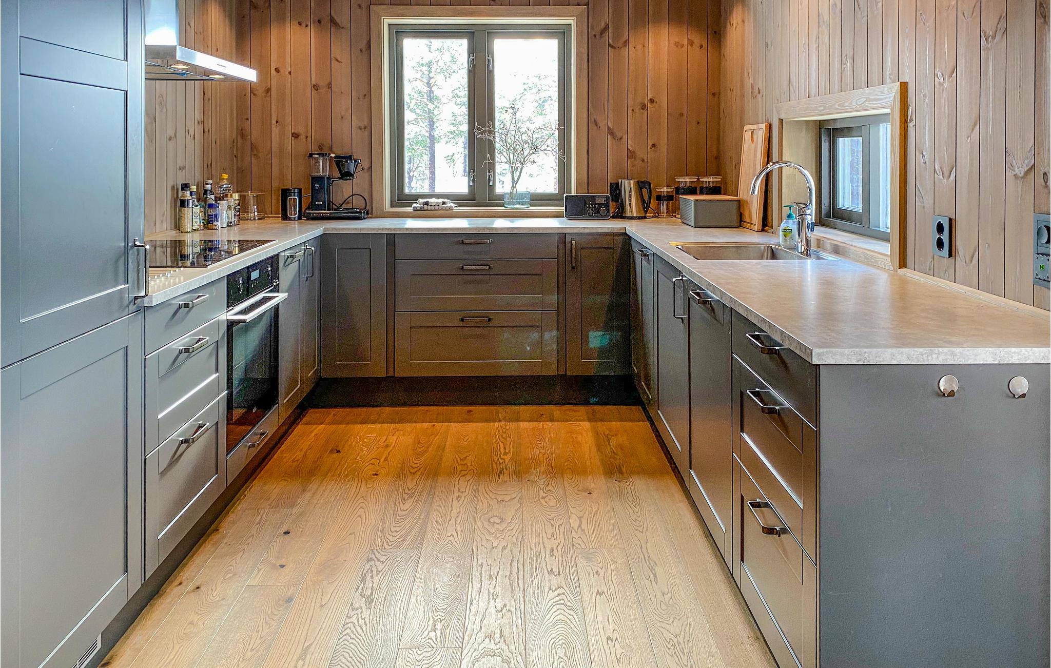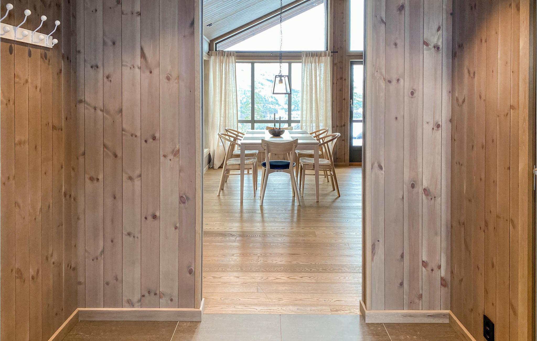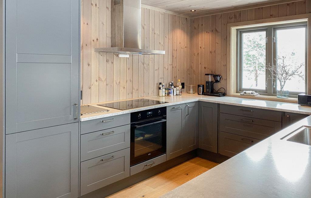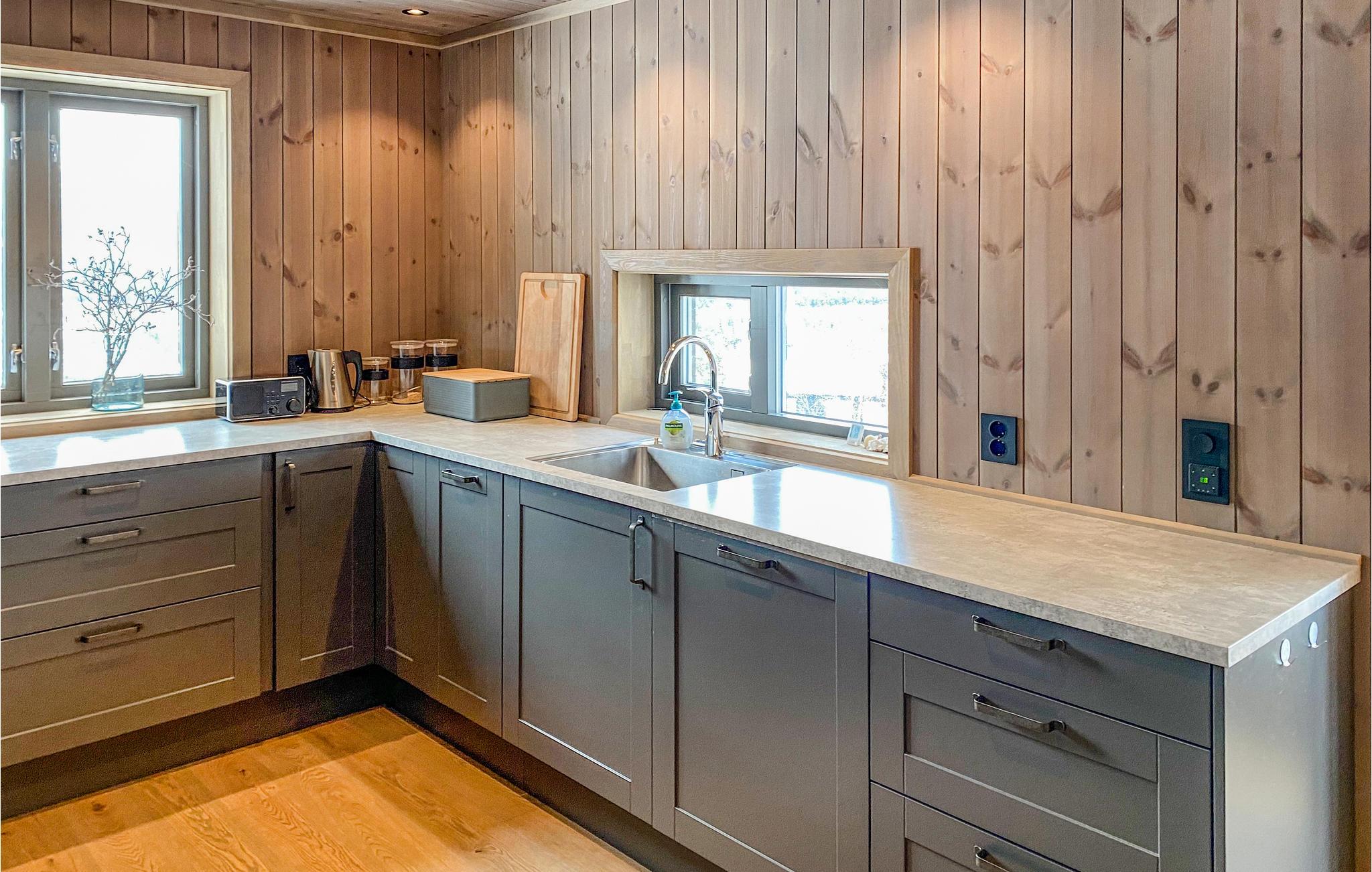 Velkommen til dette skønne feriehus med markante panoramavinduer, der lukker lyset ind i stuen på smukkeste vis. Her kan I se frem til høj komfort og minimalistiske boligløsninger, der gør jeres ophold ekstra behageligt. Fyld dagene med brætspil, hyggelige stunder i køkkenet og rundt om spisebordet. Senere kan I læne jer tilbage i de bløde møbler og snakke om alle dagens bedste oplevelser. På de solrige dage kan I rykke ud på den delvist overdækkede terrasse, hvor I har frit udsyn til de enestående omgivelser.