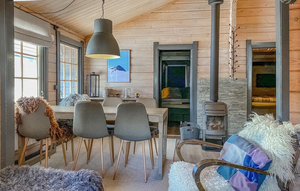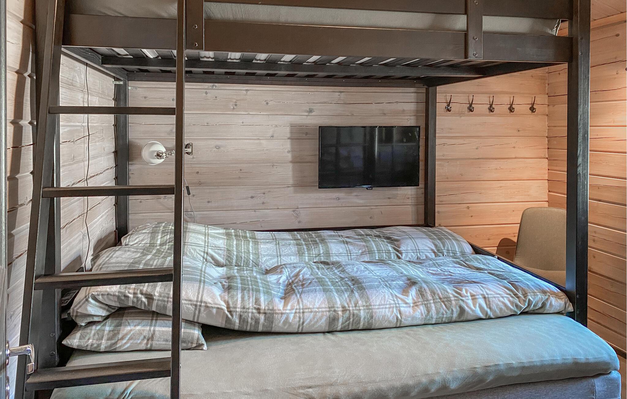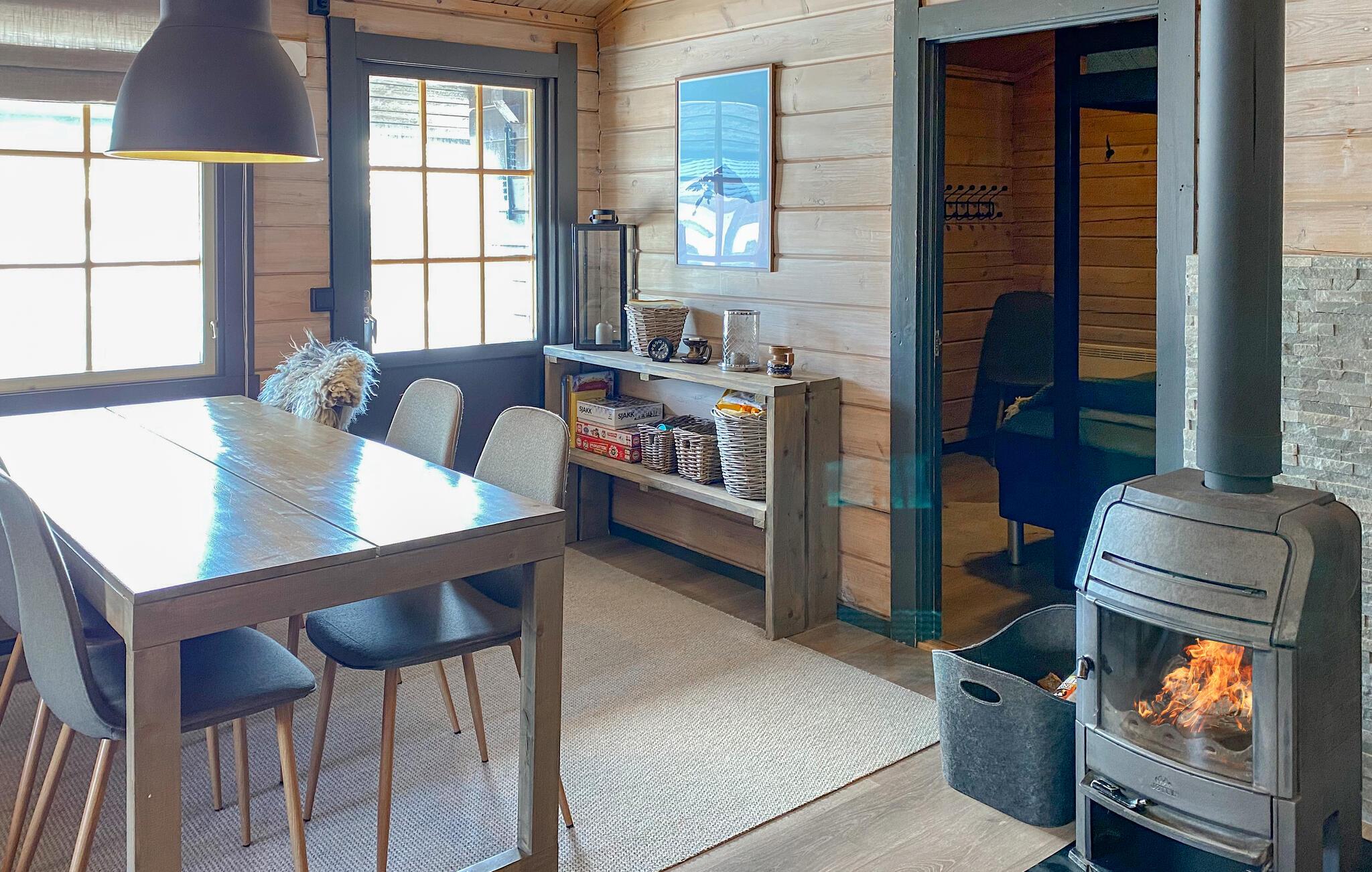 Velkommen til dette feriehus, der byder på en række aktivitetsmuligheder. Nyd jeres fælles måltider ved det indbydende spisebord, og lad jer fortrylle af den flotte udsigt over de omkringliggende landskaber. Huset er et ægte træhus, både udvendigt og indvendigt. Det skaber en varm atmosfære og gør jeres hus til et ideelt sted for en dejlig naturferie. Det store sofahjørne med den bløde sofa er et godt sted at slappe af sammen. Fordyb jer i en spændende bog, eller spil hyggelige kortspil sammen ved den hyggelige pejs.