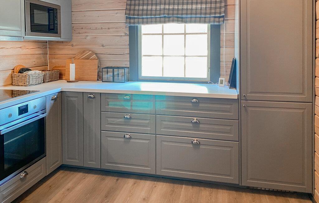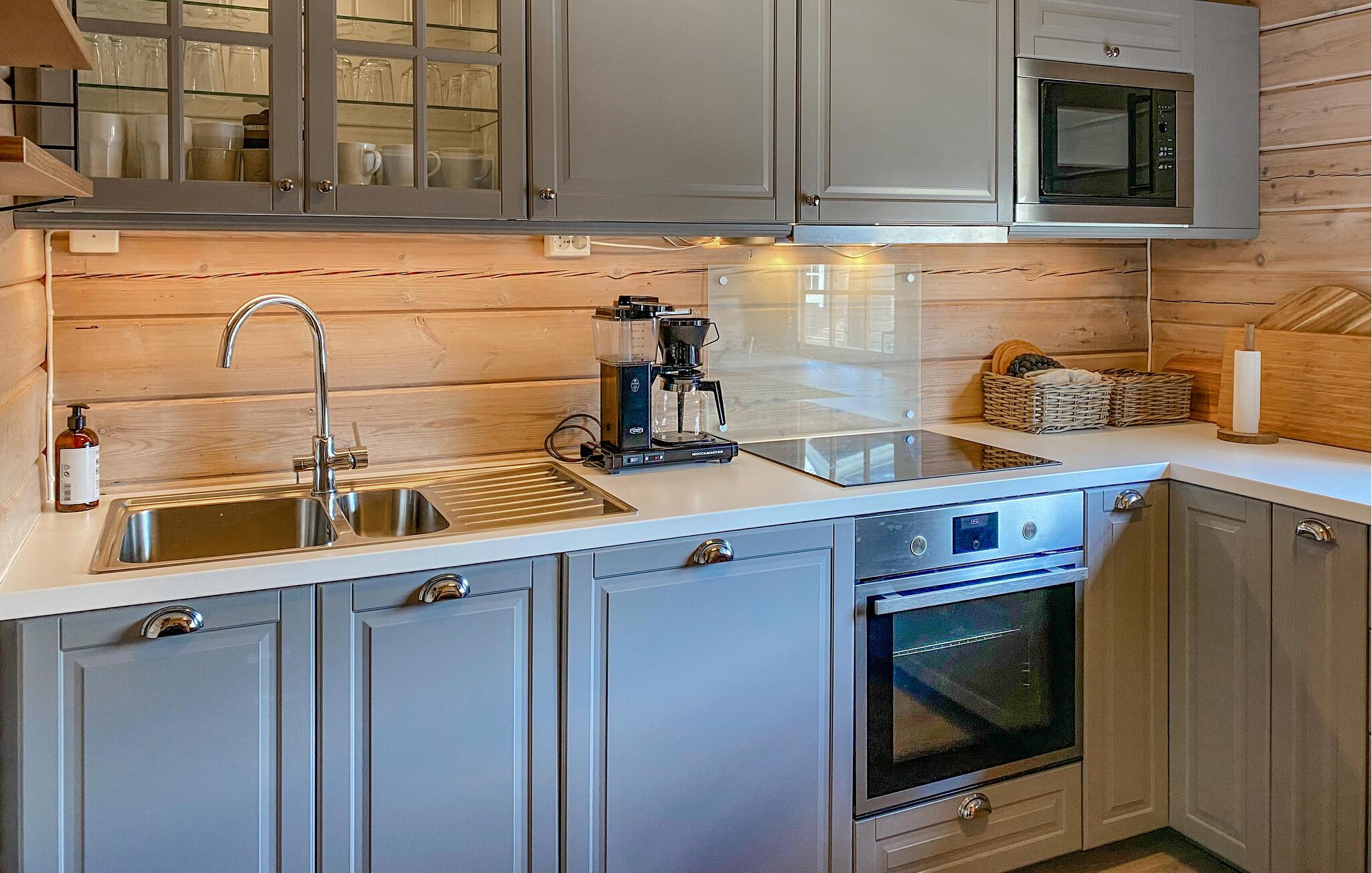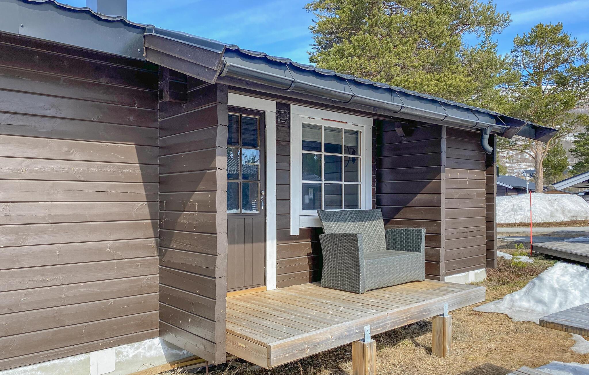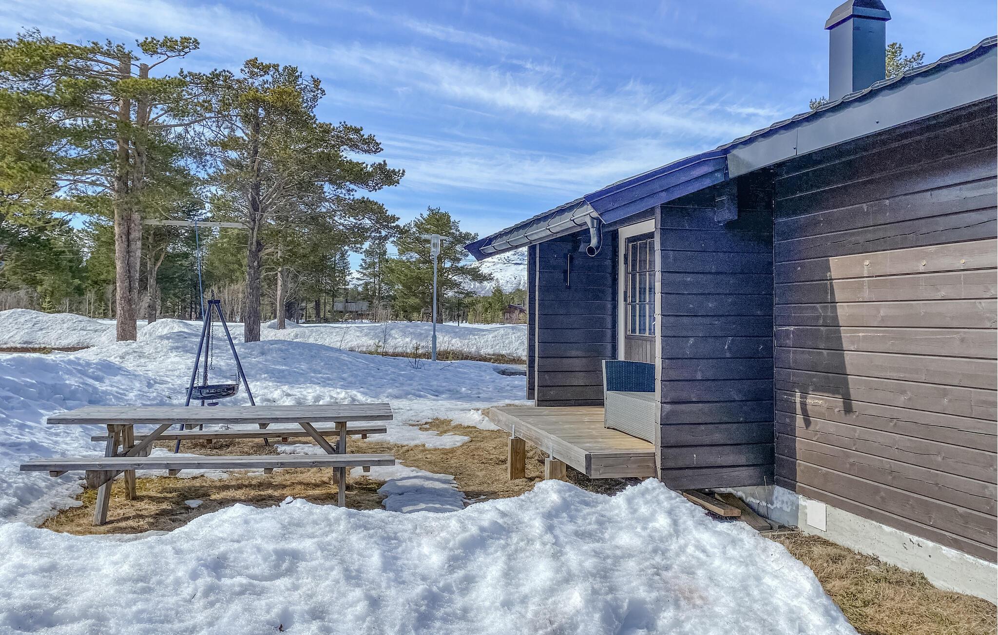 Velkommen til dette feriehus, der byder på en række aktivitetsmuligheder. Nyd jeres fælles måltider ved det indbydende spisebord, og lad jer fortrylle af den flotte udsigt over de omkringliggende landskaber. Huset er et ægte træhus, både udvendigt og indvendigt. Det skaber en varm atmosfære og gør jeres hus til et ideelt sted for en dejlig naturferie. Det store sofahjørne med den bløde sofa er et godt sted at slappe af sammen. Fordyb jer i en spændende bog, eller spil hyggelige kortspil sammen ved den hyggelige pejs.