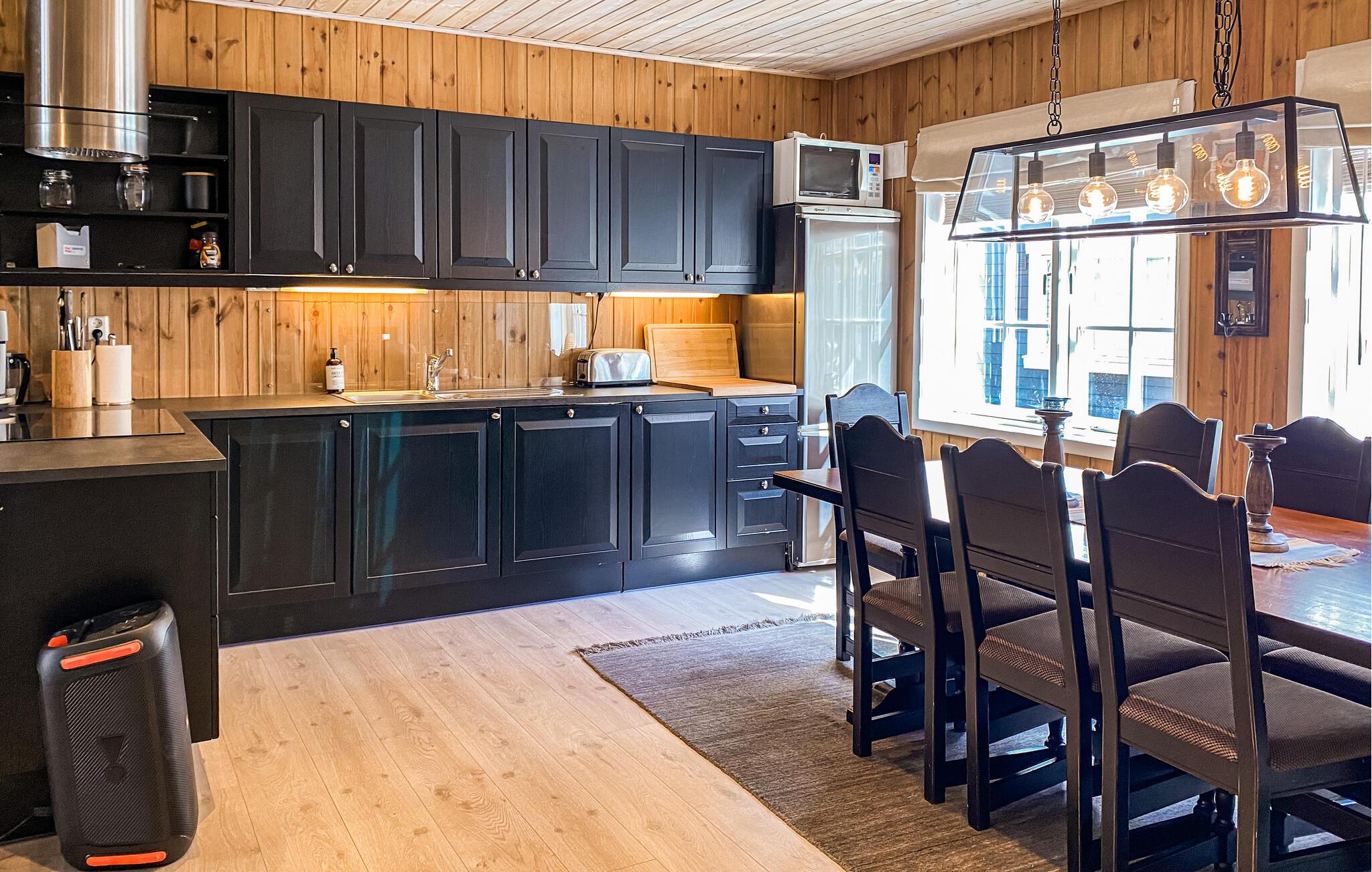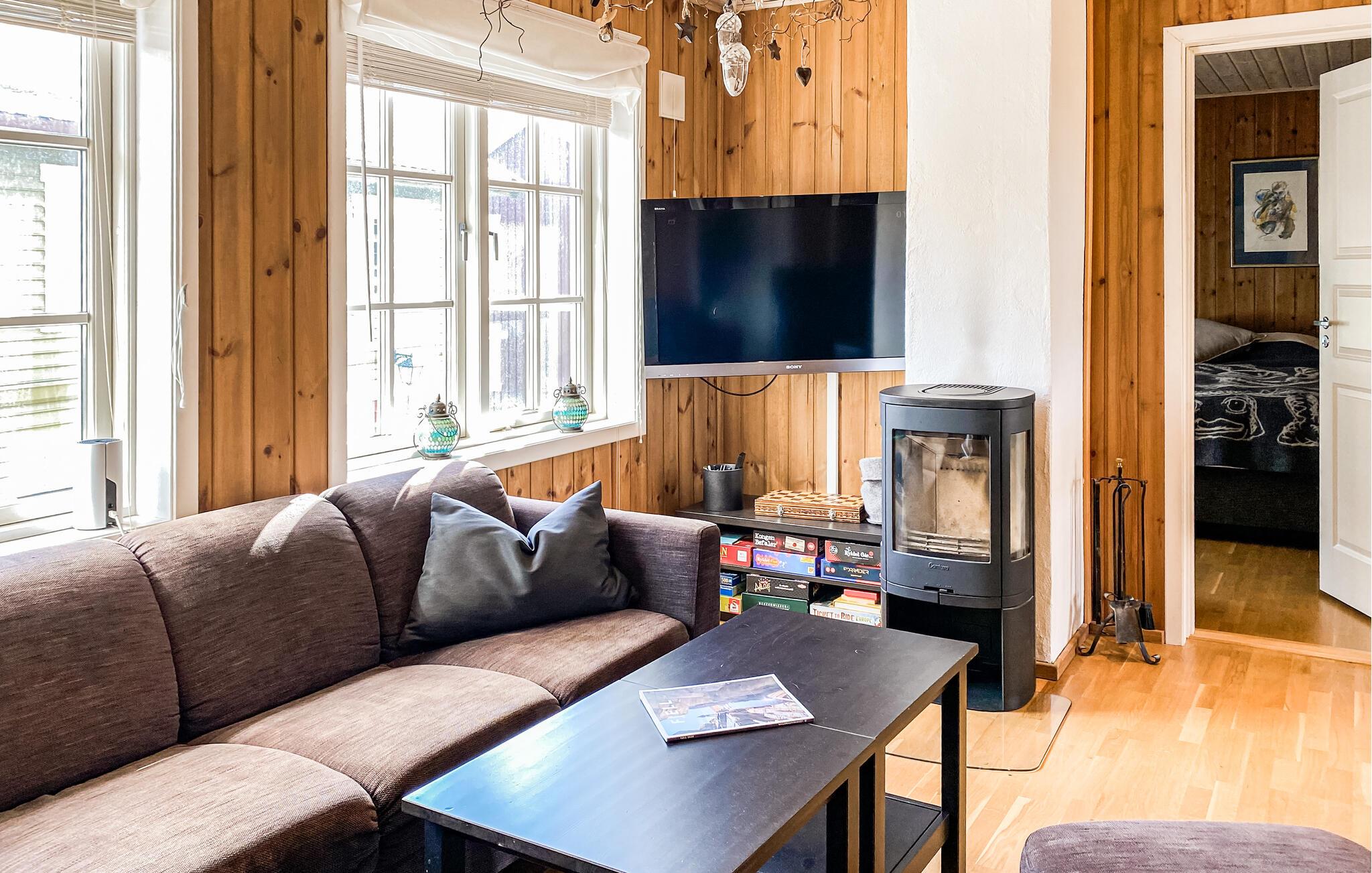 Dette komfortable og børnevenlige rækkehus tilbyder masser af plads til en oplevelsesrig familieferie i større skala. Lad den norske pejs knitre sagte, mens I nyder fælles måltider og hyggelige spilleaftener i det hyggelige interiør med træpaneler efter lange ture i den friske luft. Stream en film eller træk jer tilbage til jeres yndlingshjørne med en god bog.