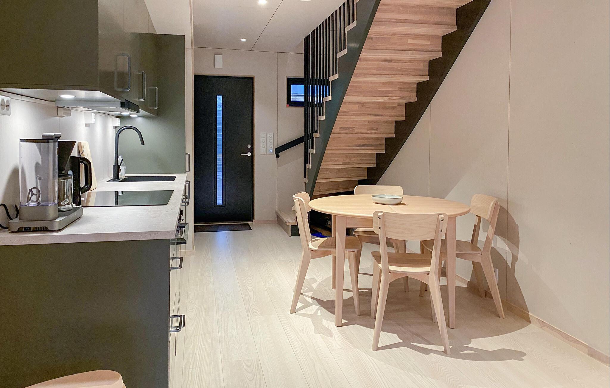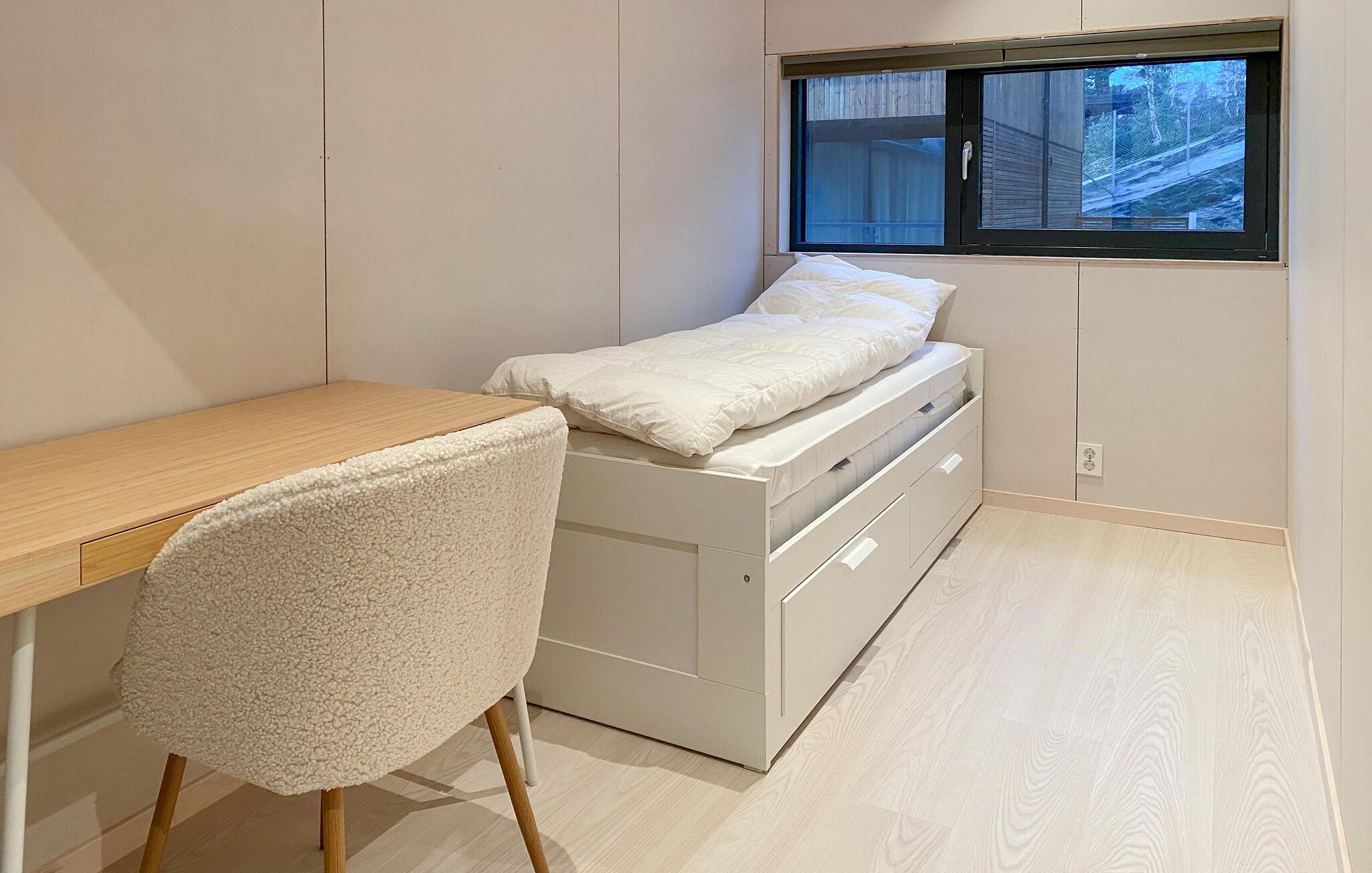 I kan tilbringe afslappende dage i jeres stilfulde og komfortabelt møblerede feriehus i den maleriske landsby Bjorli. Nyd morgenen med en friskbrygget kop kaffe eller te. Gør jer komfortable i sofaen i opholdsstuen og nyd den friske luft på jeres balkon. Husets lyse atmosfære skaber en atmosfære af fred og ro. Læg hverdagen bag jer og fordyb jer i den afslappende atmosfære med en god bog eller blot at slappe af.