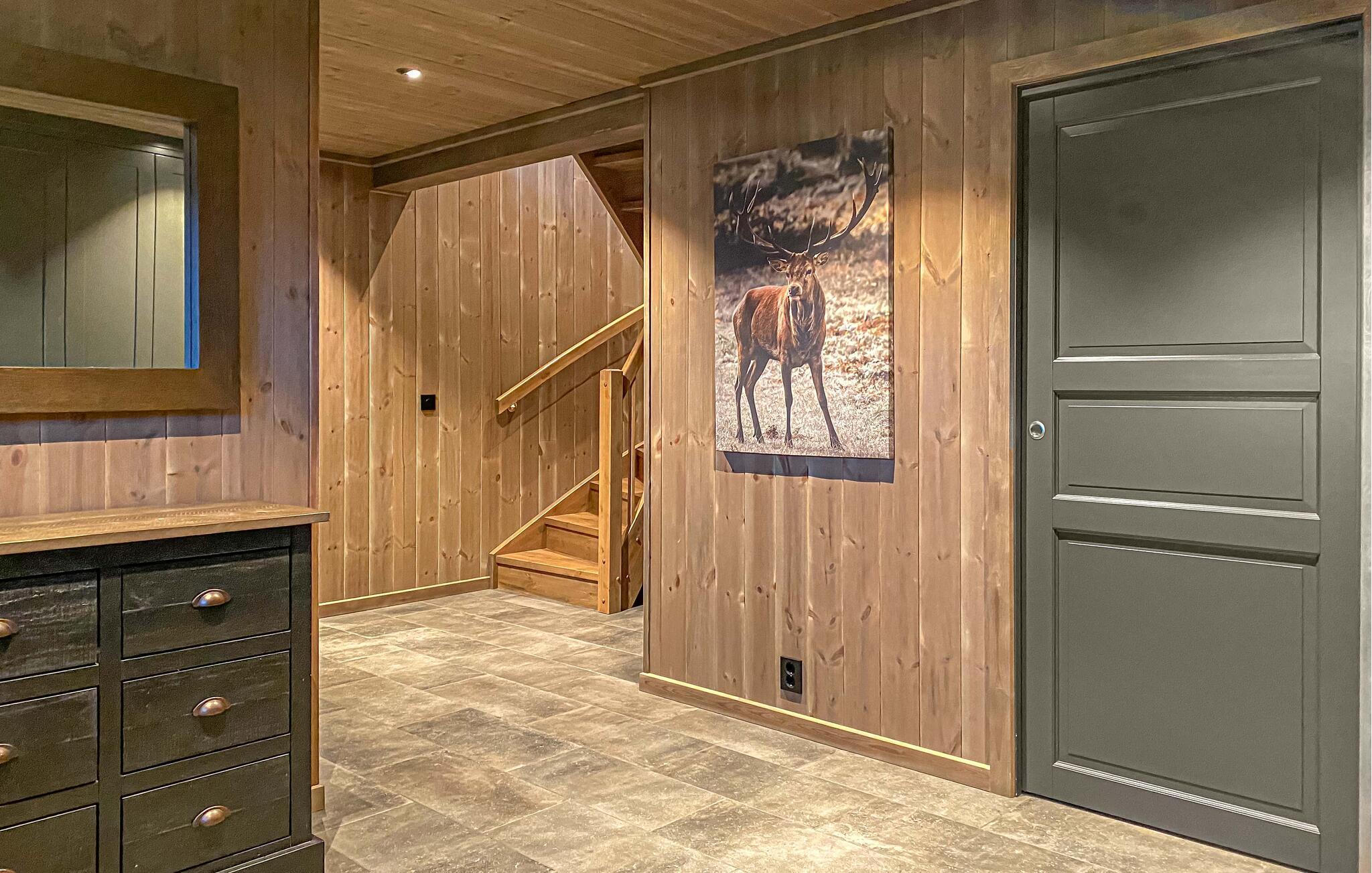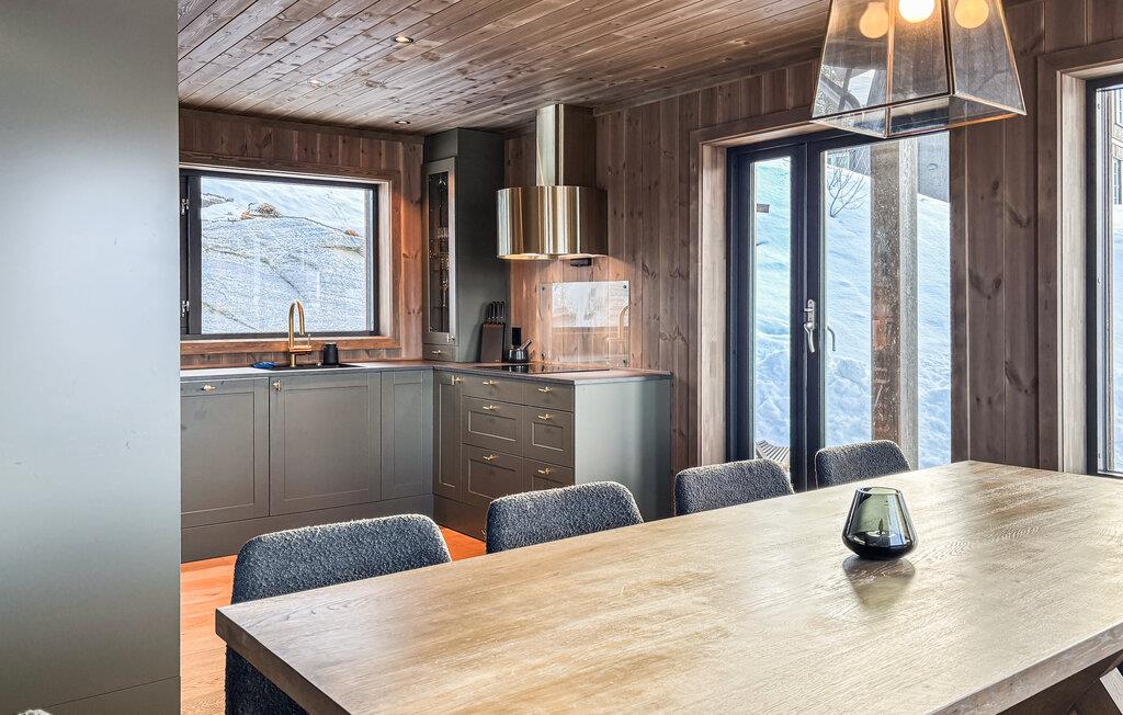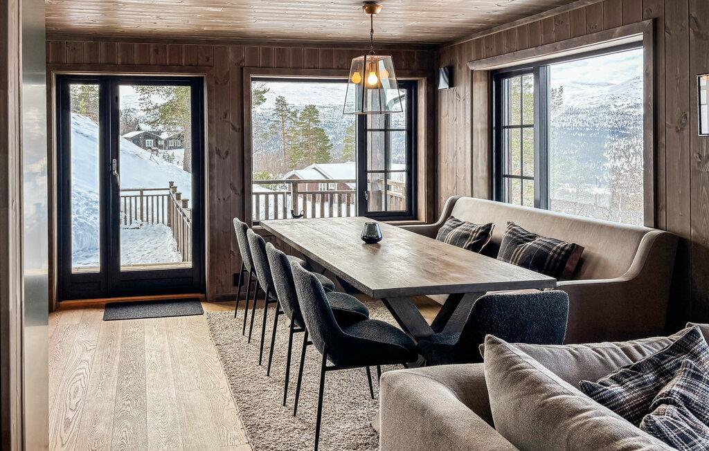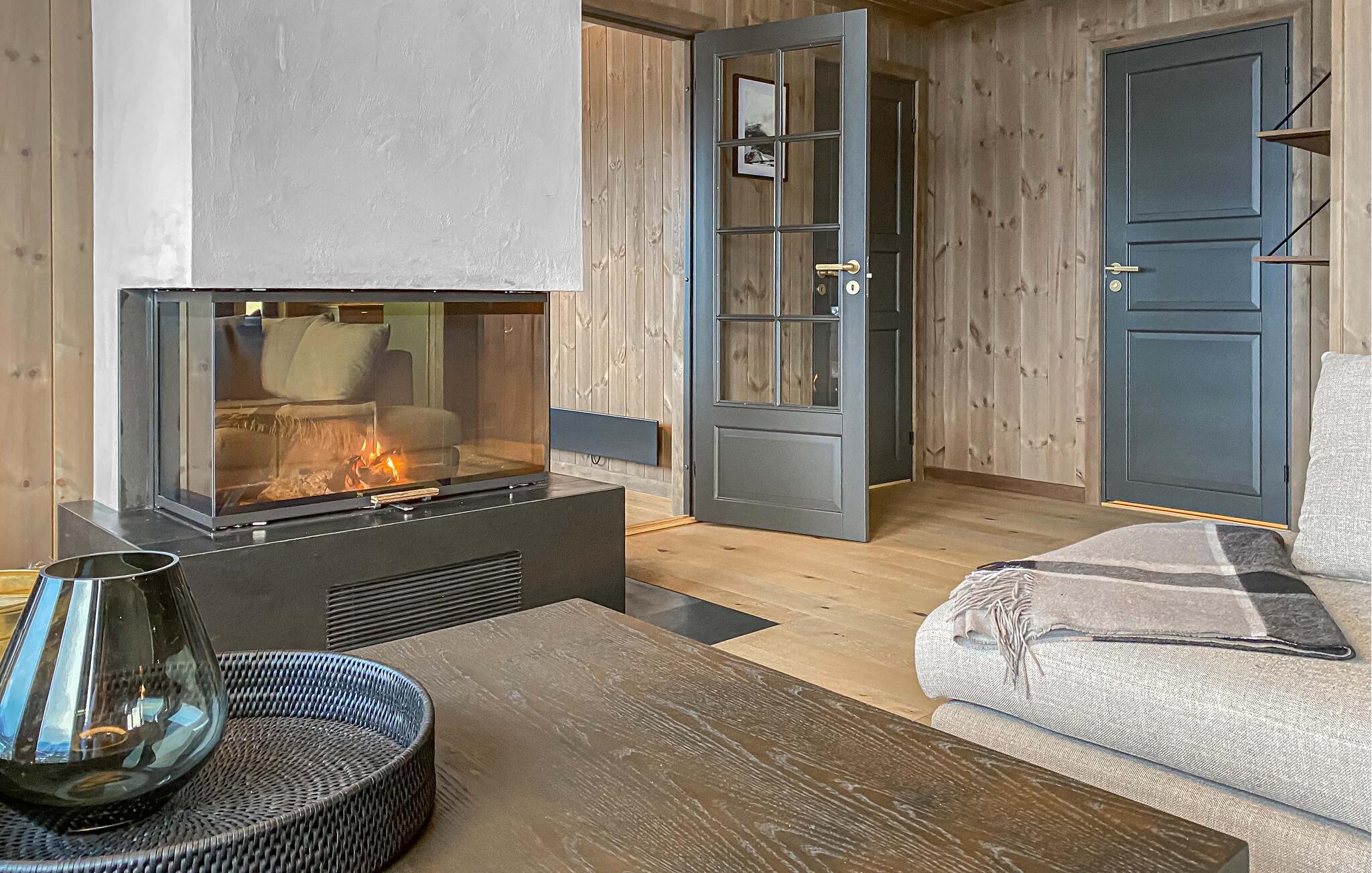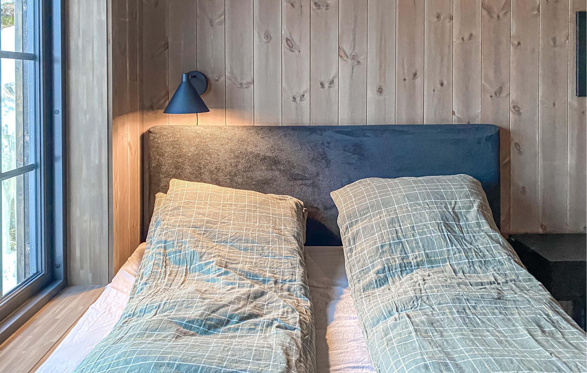 Dette maleriske hus har en varm og rolig atmosfære med lyst træ, store vinduer og moderne møbler. Slap af med en velduftende kop kaffe på sofaen og nyd udsigten over det smukke landskab. Efter en lang dag i naturen kan I slappe af i saunaen og afslutte aftenen med et glas vin ved pejsen.
