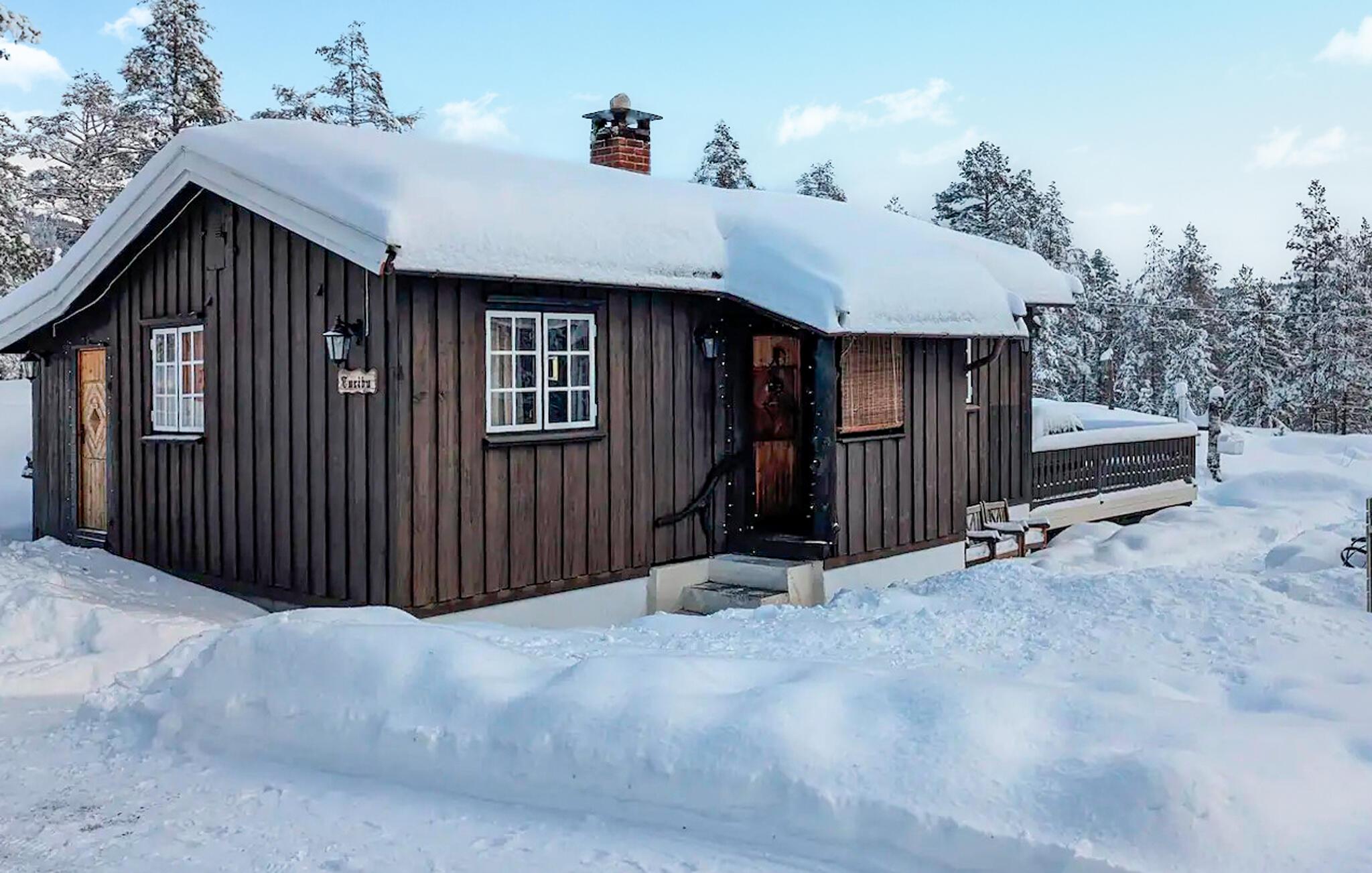 Velkommen til dette hyggelige sommerhus i Blefjell, som er noget særligt med sin varme atmosfære og sin beliggenhed i hjertet af naturen. Den rummelige opholdsstue med pejs lægger op til at slappe af efter en aktiv dag. Nyd hyggelige timer, mens I laver mad i det veludstyrede køkken eller spiser sammen i spiseområdet. De rustikke detaljer i indretningen skaber en hjemlig atmosfære, og terrassen byder på en vidunderlig udsigt over det omkringliggende landskab.