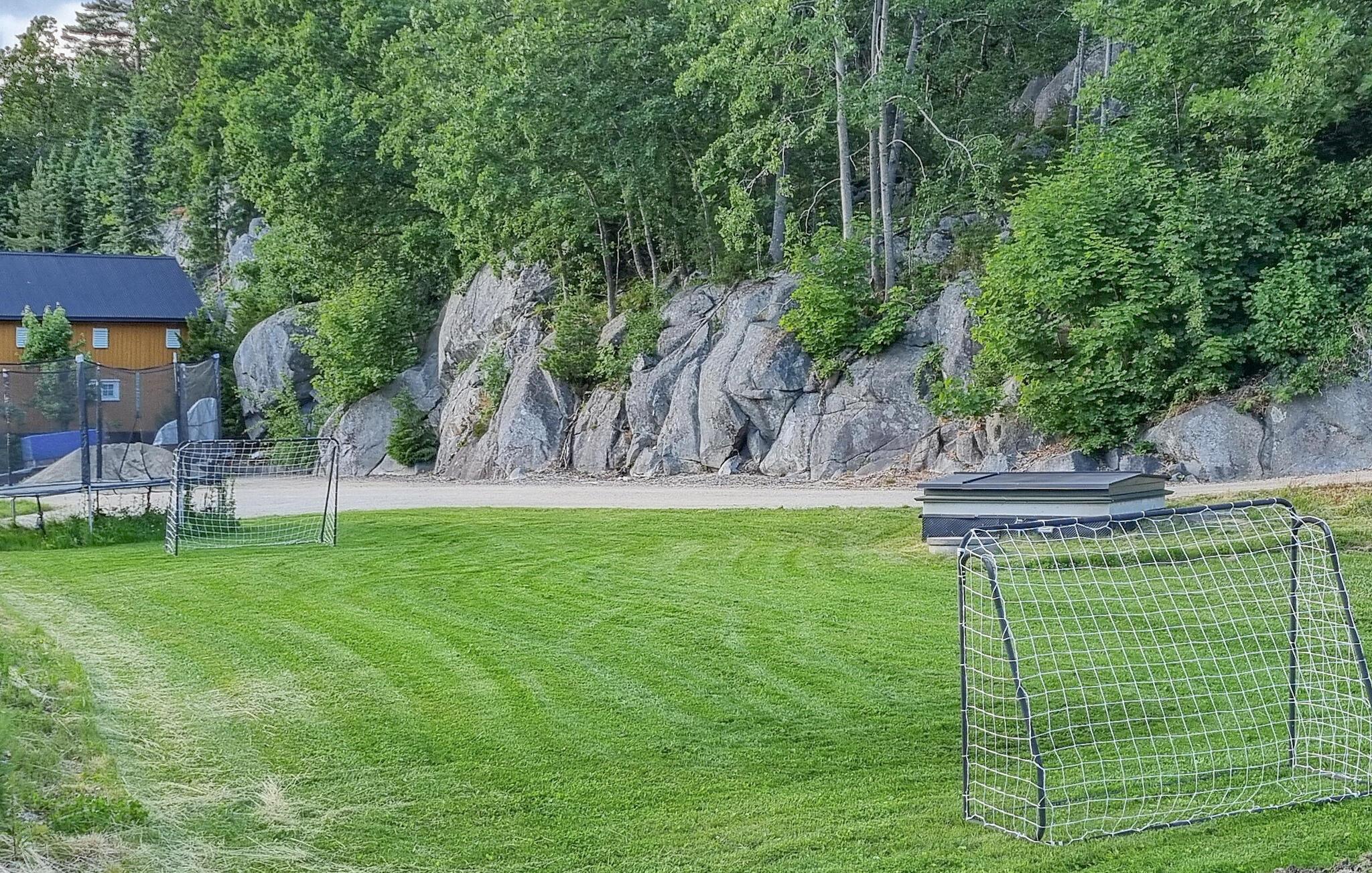 De store græsarealer giver masser af plads til, at børnene kan lege. Der er også en lille fodboldbane og en trampolin til masser af sjov.