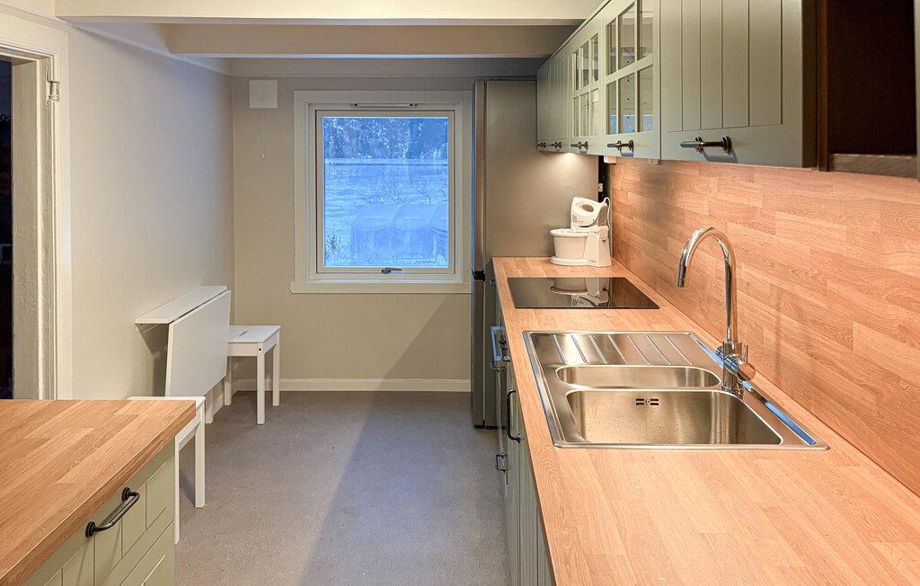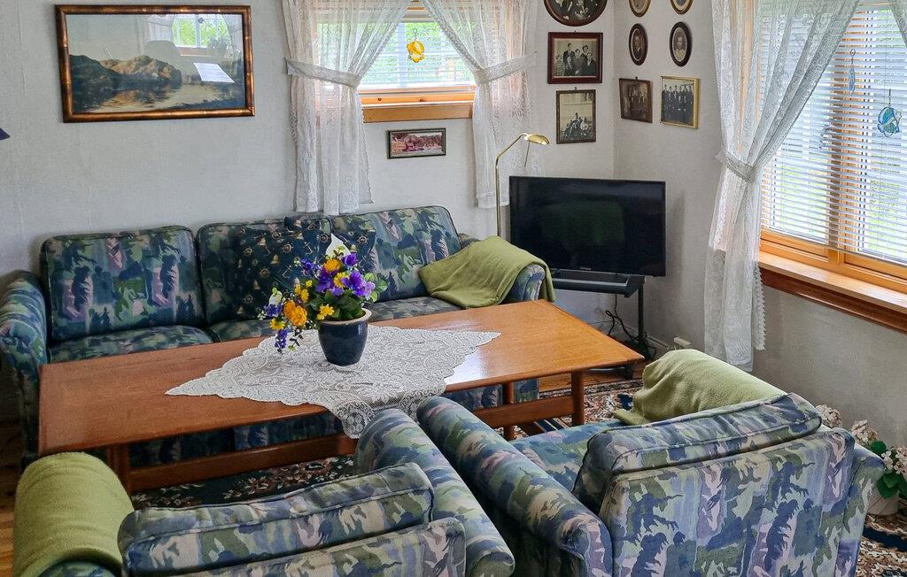 Glæd jer til en pause i denne smukke bolig, der kun ligger få meter fra vandet. Den private badebro og robåden indbyder til afslappende timer på havet. Nyd den friske havluft og lad blikket glide over de blide bølger, mens I slapper af på den store træterrasse lige ved vandet. Feriehuset udmærker sig ved sin hyggelige og rustikke atmosfære. I stuen med komfortable sofaer kan I slappe af efter en begivenhedsrig dag. Den rummelige siddeplads giver hele familien plads til at tilbringe hyggelige aftener sammen. I spisestuen finder I et charmerende træbord, ideelt til fælles måltider, som I kan tilberede i det smukke køkken.