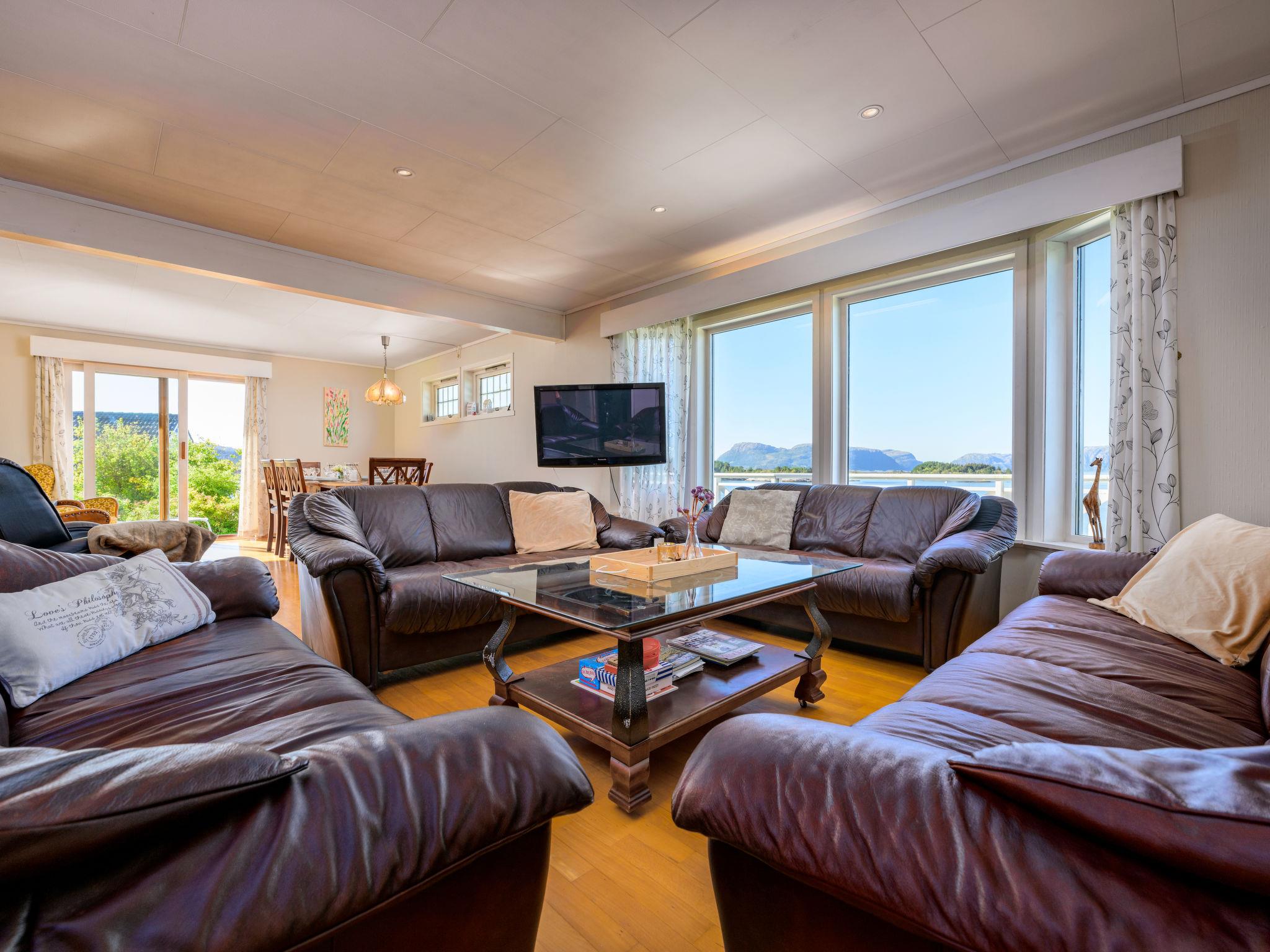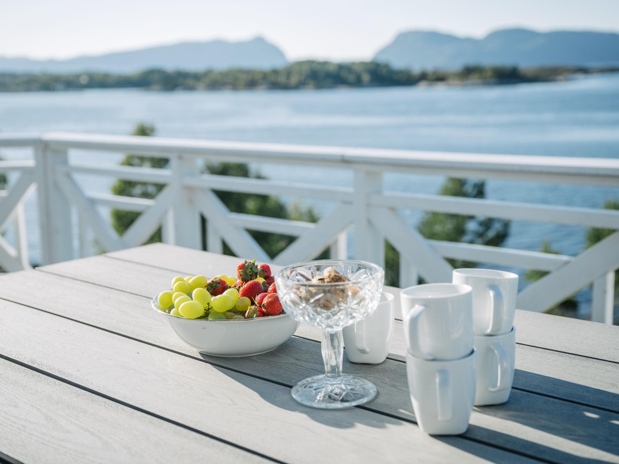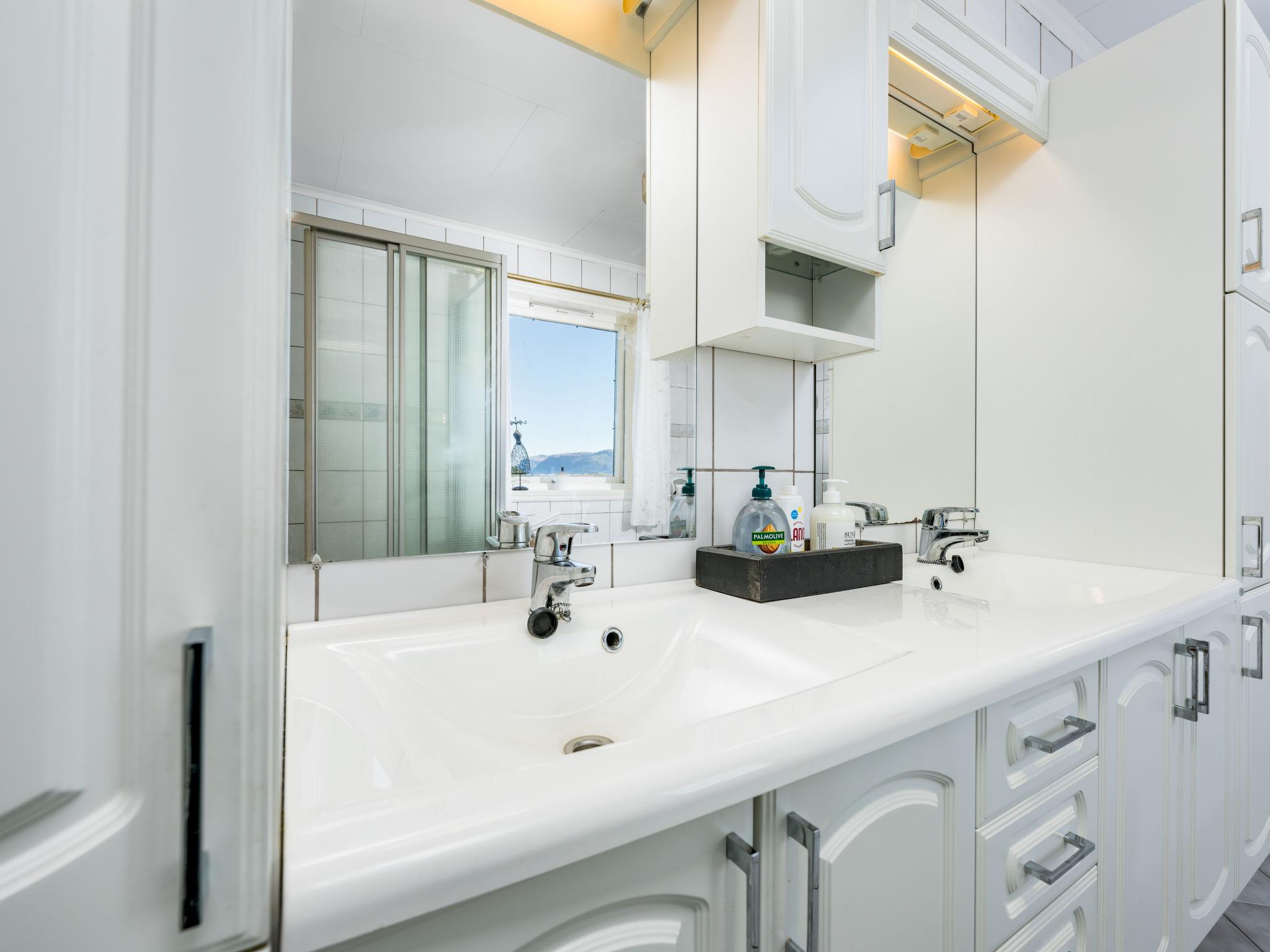 "Seievika", 8-room house 226 m2. Comfortable and beautiful furnishings: open living/dining room with Scandinavian wood stove, dining table and digital TV. Exit to the terrace. 1 room with 1 double bed (160 cm, length 200 cm). 1 room with 1 bed (80 cm, length 200 cm). Kitchen (oven, dishwasher, 4 ceramic glass hob hotplates, microwave, freezer, electric coffee machine) with dining table. Shower/WC. Forced-air heating. On the lower ground floor: 2 rooms, each room with 1 double bed (160 cm, length 200 cm). Shower/WC. 2nd upper floor: 1 room with 2 beds (80 cm, length 200 cm). 1 room with 1 bed (80 cm, length 200 cm). 1 room with 1 double bed (160 cm, length 200 cm). Parquet floors. Terrace 20 m2, terrace 10 m2. Terrace furniture, barbecue (portable), sitting area. Beautiful view of the sea, the mountains and fjord. Facilities: washing machine, iron. Internet (WiFi, free). Please note: non-smoking house. Freezer approx. 100 l. 924531169