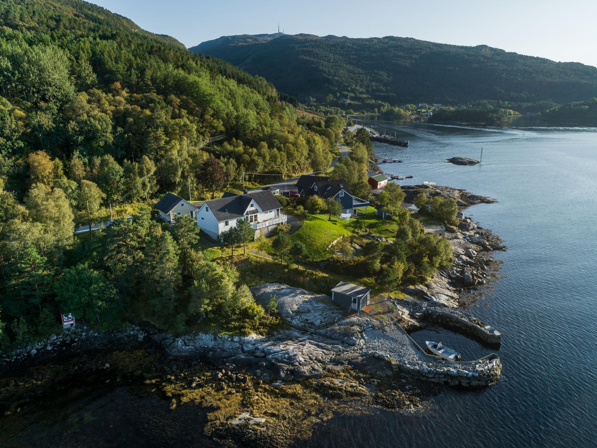 Beautiful timber house "Seievika", 10 m a.s.l., 3 storeys, built in 1986. 20 km from the centre of Eivindvik, 98 km from the centre of Knarvik, 125 km from the centre of Bergen, 40 m from the sea, 40 m from the fijord. Private: property 1'000 m2, lawn, natural garden. Bathing jetty, bathing place, parking (for 3 cars) on the premises. Grocery 20 km, supermarket 98 km, bus stop "Rutledal Aust" 120 m, ferry "Rutledal" 500 m. Walking paths from the house 100 m, fishing possibilities 40 m. The tap water has no drinking water quality.