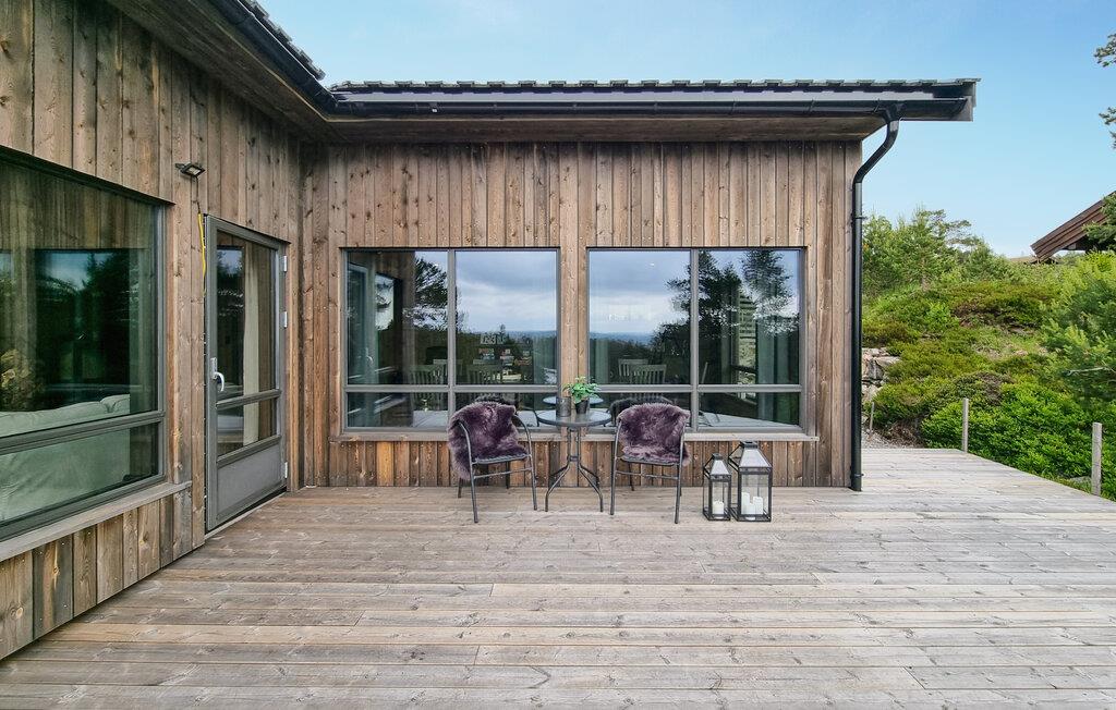 Komfortable siddepladser venter jer på den indbydende træterrasse til dejlige timer udendørs. Tænd op i grillen og nyd den fredfyldte atmosfære.