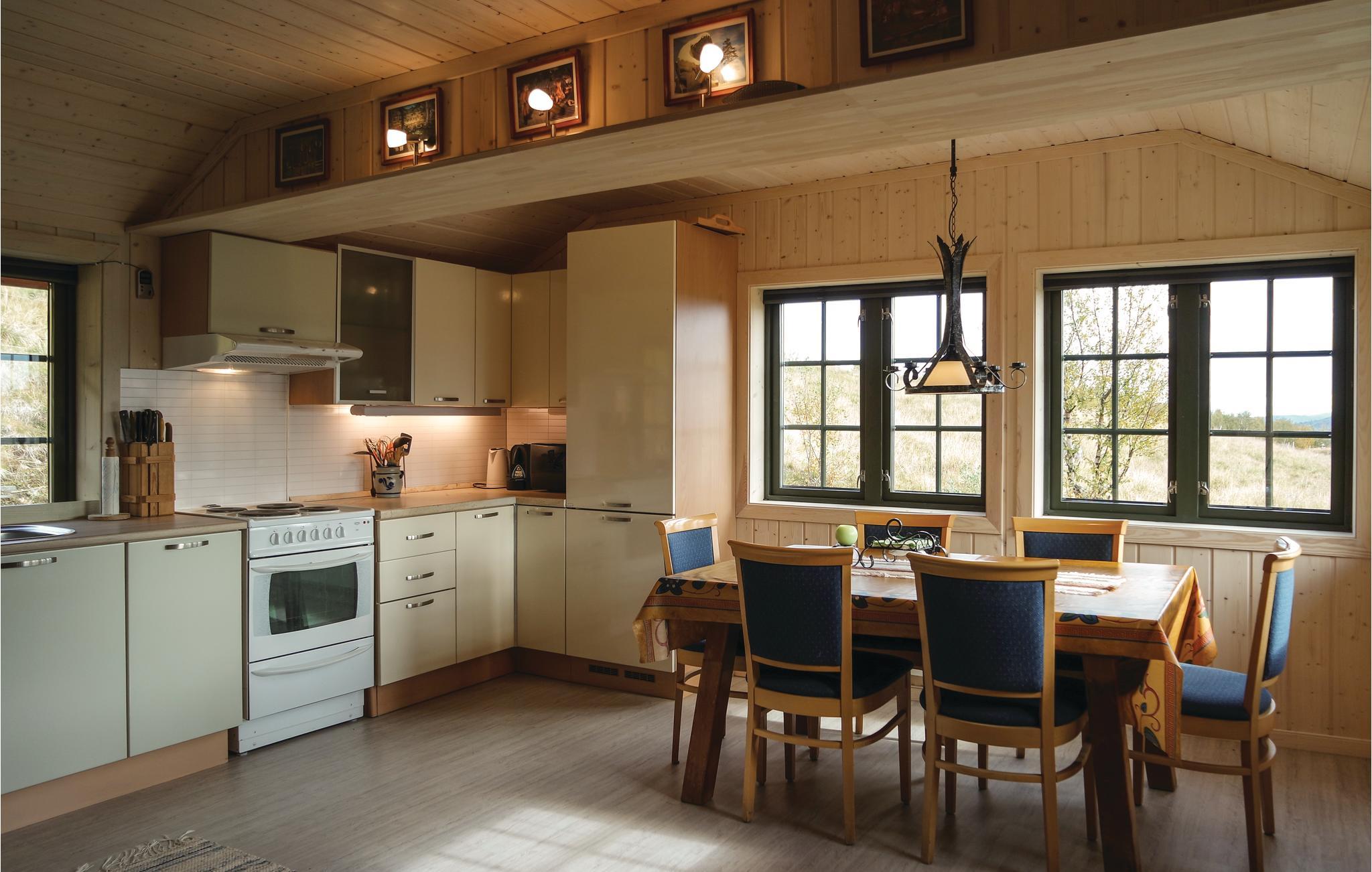 Harmonisk indlejret i naturen venter denne hyggelige bjælkehytte dig, hvor hverdagen hurtigt bliver et fjernt minde. Glæd jer til at lave madaftener sammen i det hyggelige køkken-alrum og samles i stuen til selskabelige brætspil. Tænd pejsen og slap af med familien.