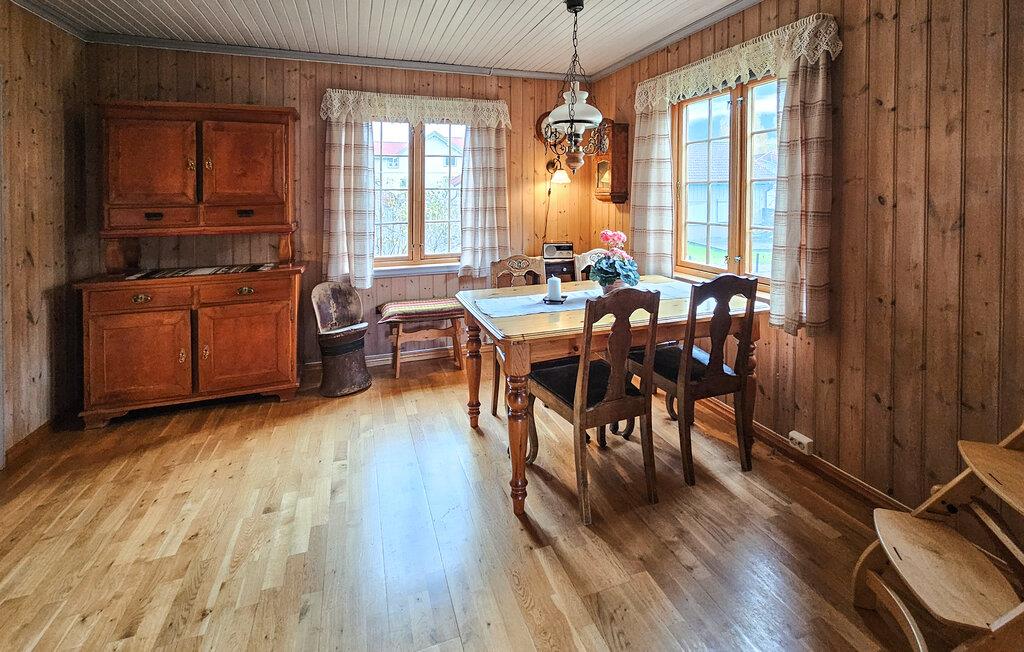 Nyd jeres ferie i dette traditionelle træhus omgivet af bjerge, skov og vand. Jeres hyggelige feriehus kombinerer charmen fra norsk arkitektur med en følelse af komfort og tryghed. Her finder I det ideelle sted at nyde den friske luft, det betagende landskab og den autentiske Telemark-livsstil. Oplev husets rustikke karakter i den komfortable opholdsstue. Slap af i den behagelige sofa, læs en bog, eller nyd udsigten fra de store vinduer. Interiøret har lyse træpaneler, traditionelle møbler og gennemtænkte detaljer, der skaber en varm atmosfære. Spis i den rummelige spisestue med antikke skabe og stilfulde lamper, eller tilbered jeres måltider i det smukke trækøkken – et ideelt sted at tilbringe tid sammen. Gå udenfor og nyd roen i haven. Lad blikket vandre over bjergene og skovene, der indrammer dalen. Nyd jeres morgenkaffe udenfor, eller start en vandretur lige fra hoveddøren. Udforsk Dalen, hjertet af Telemark. Tag en tur til den nærliggende Bandak-sø. Tag en tur med den historiske M/S Henrik Ibsen, bygget i 1907, langs Telemarkskanalen, oplev sluserne tæt på, eller cykl langs vandvejene. Tag en vandretur til de historiske Rui-Plassen-søer, og nyd den spektakulære udsigt over dalen.