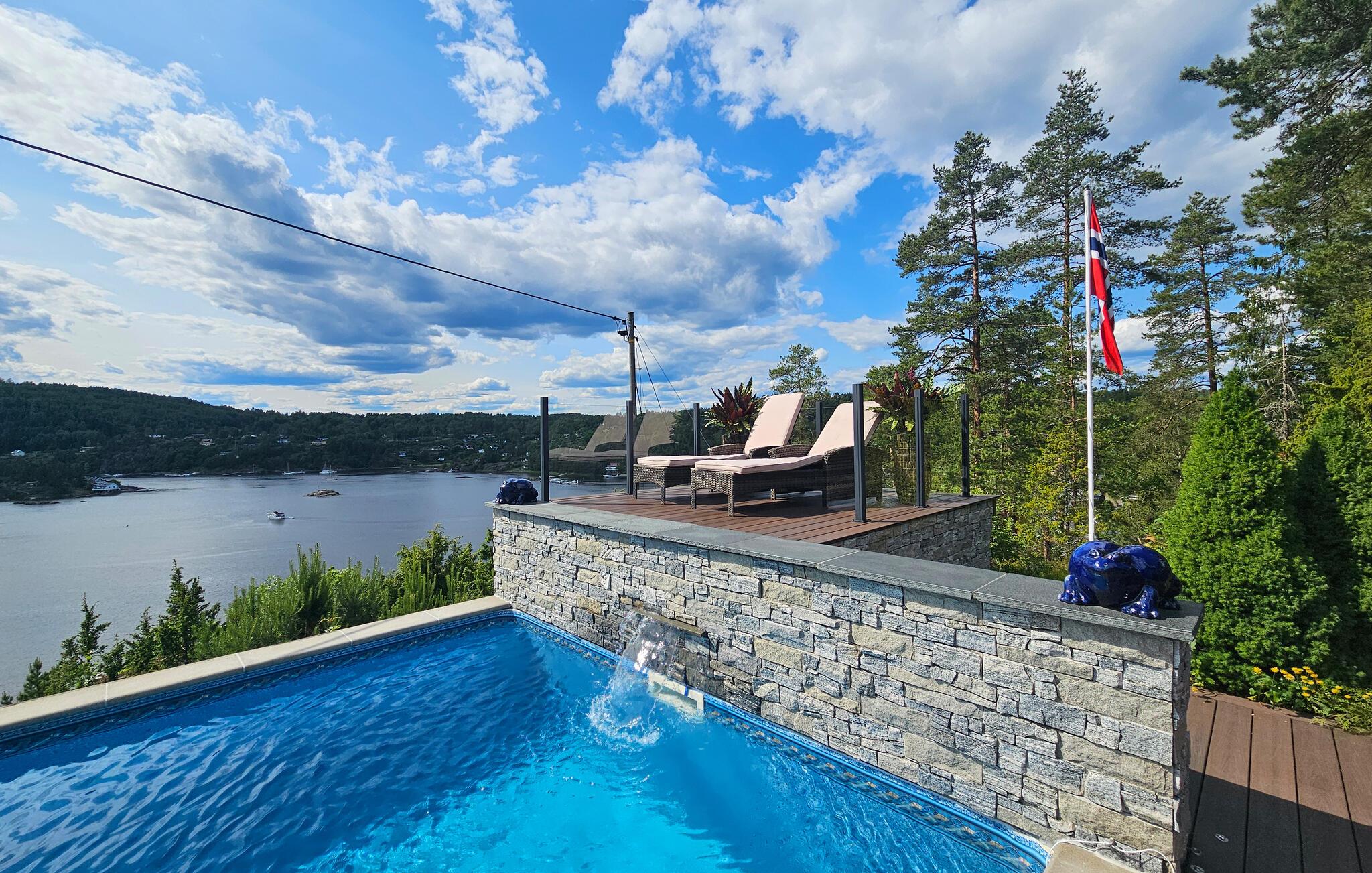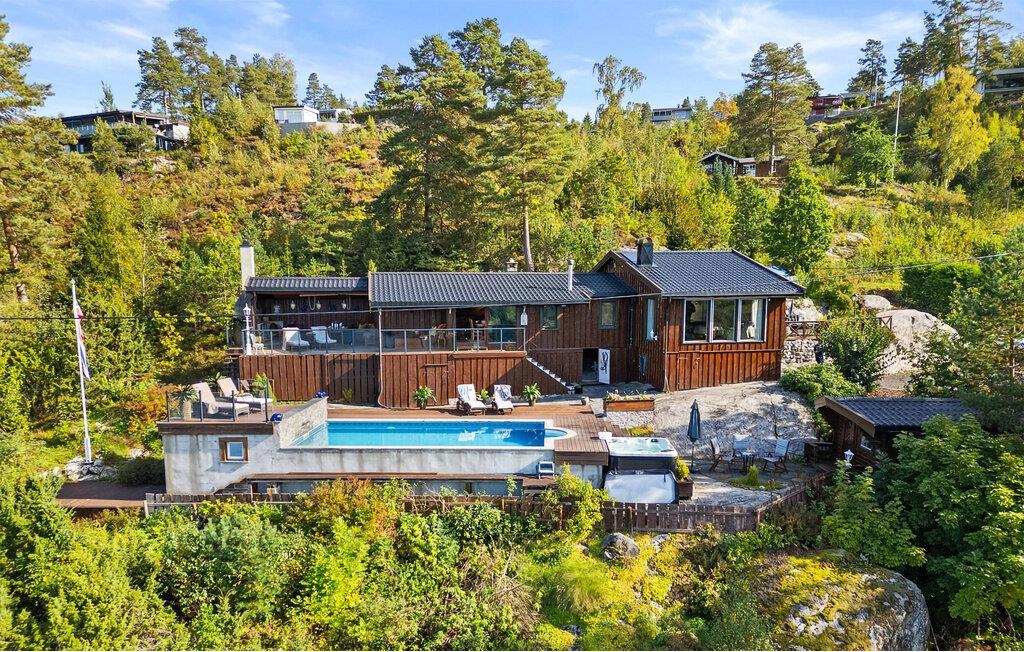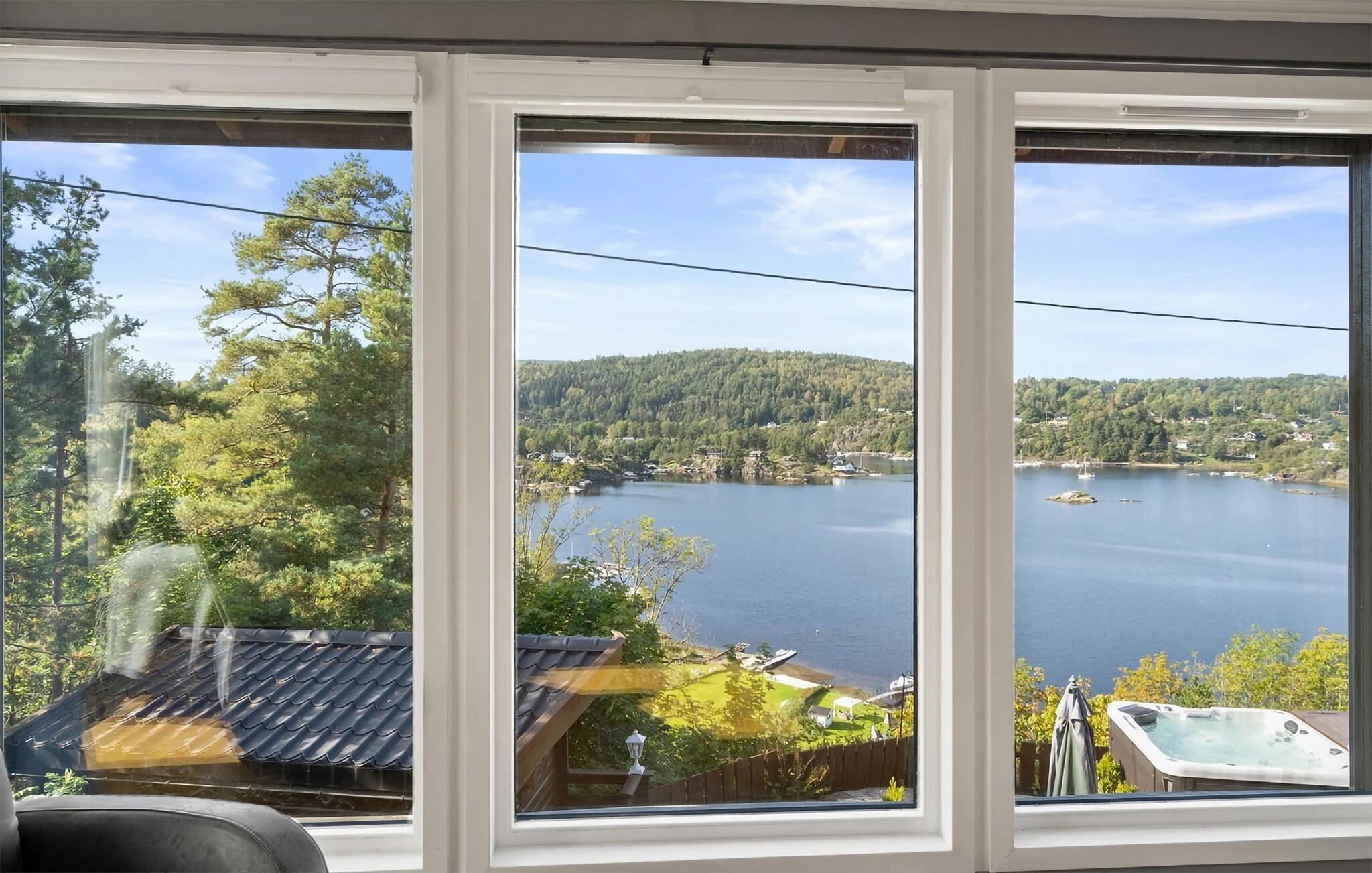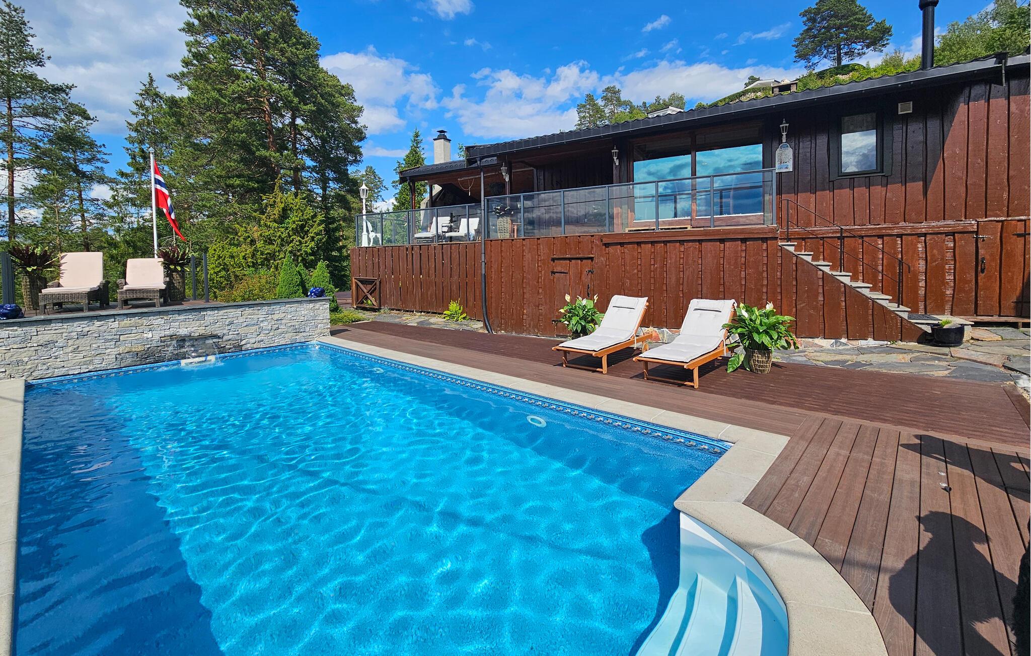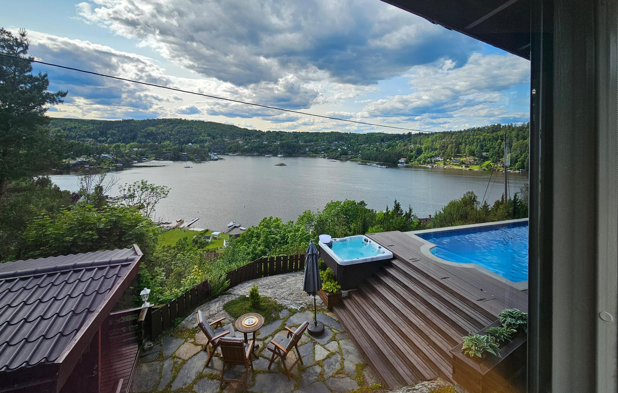 Slap af i dette komfortable feriehus med pool og spabad, og nyd en fantastisk udsigt over fjorden.