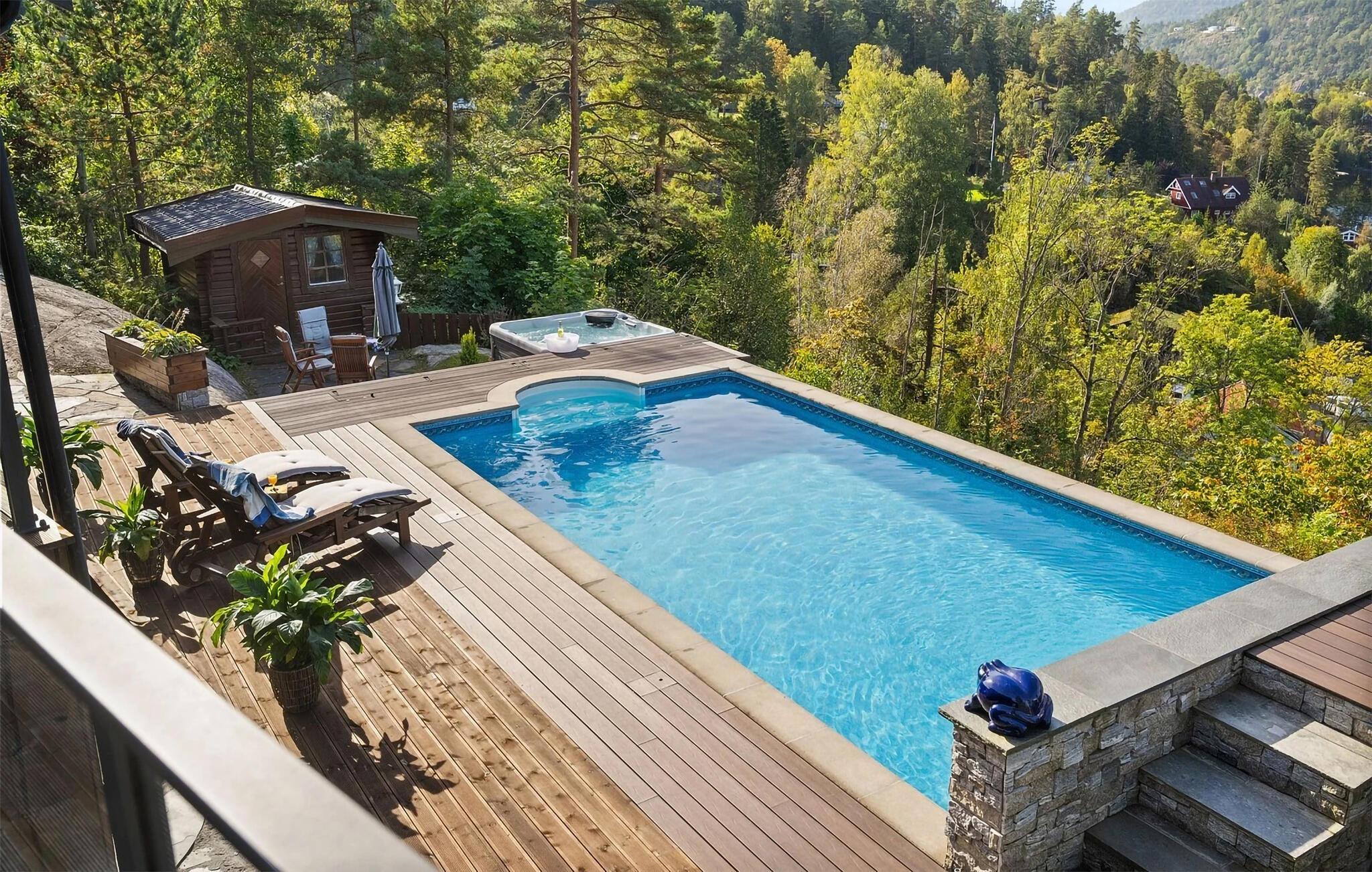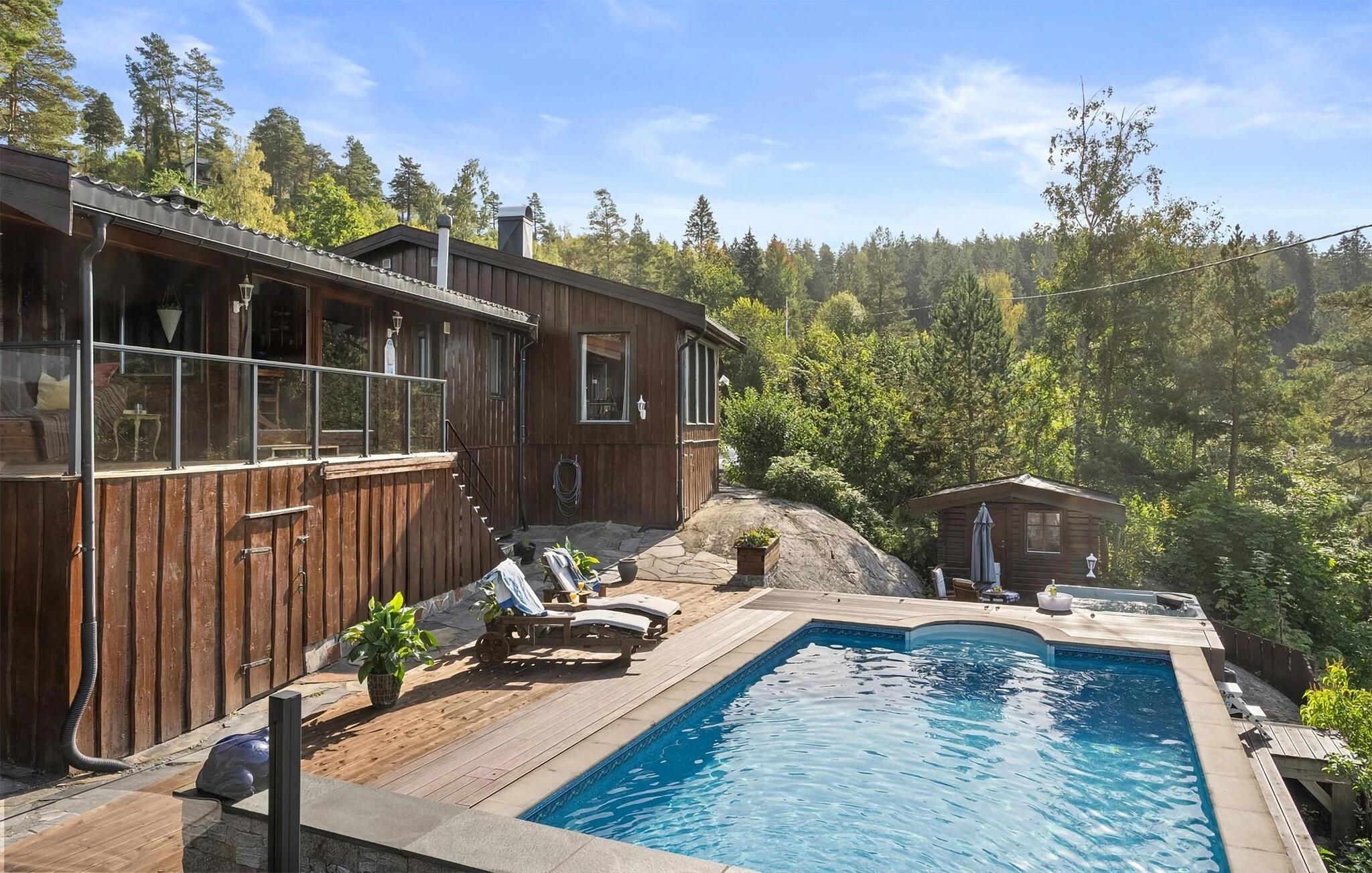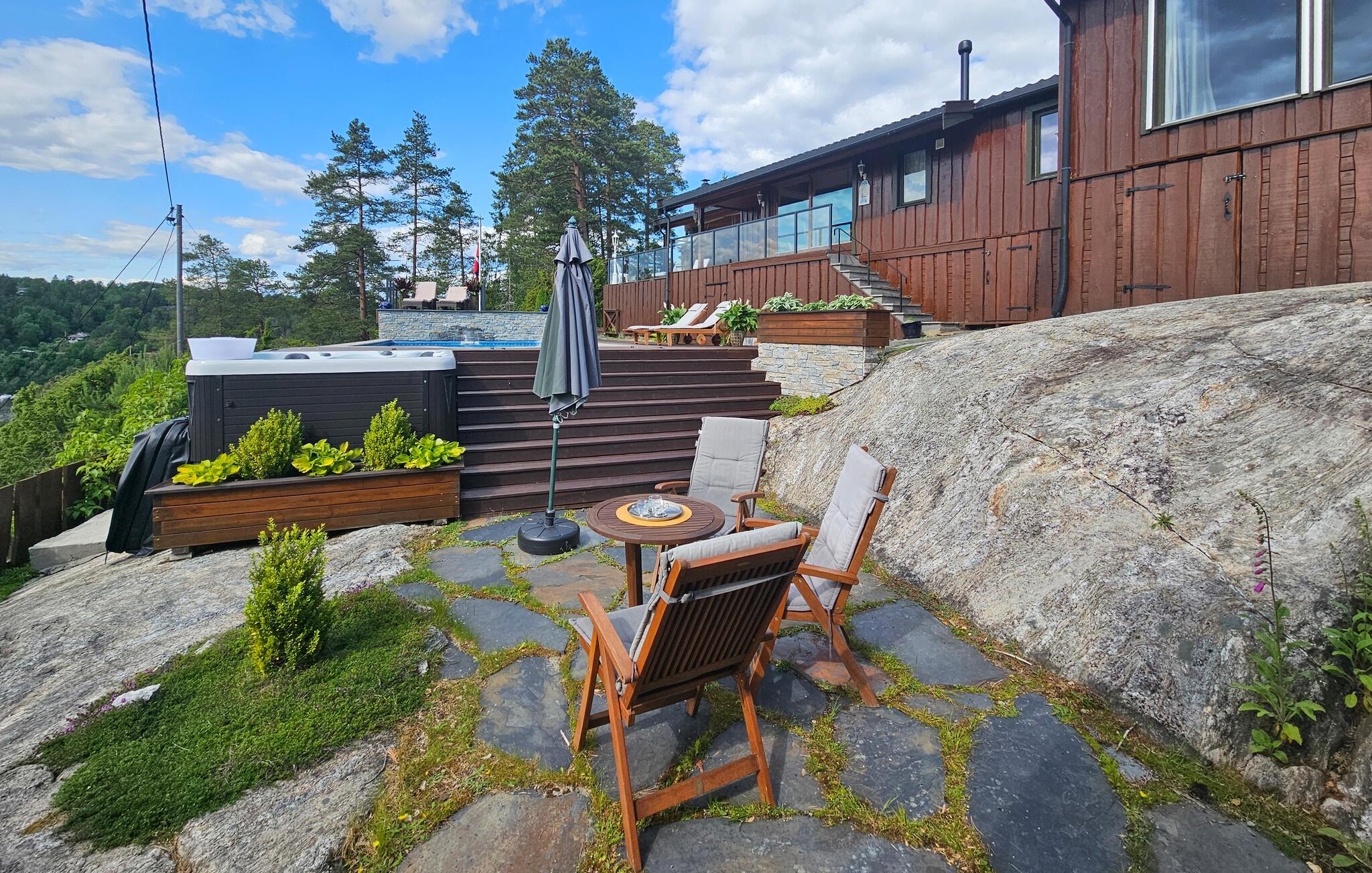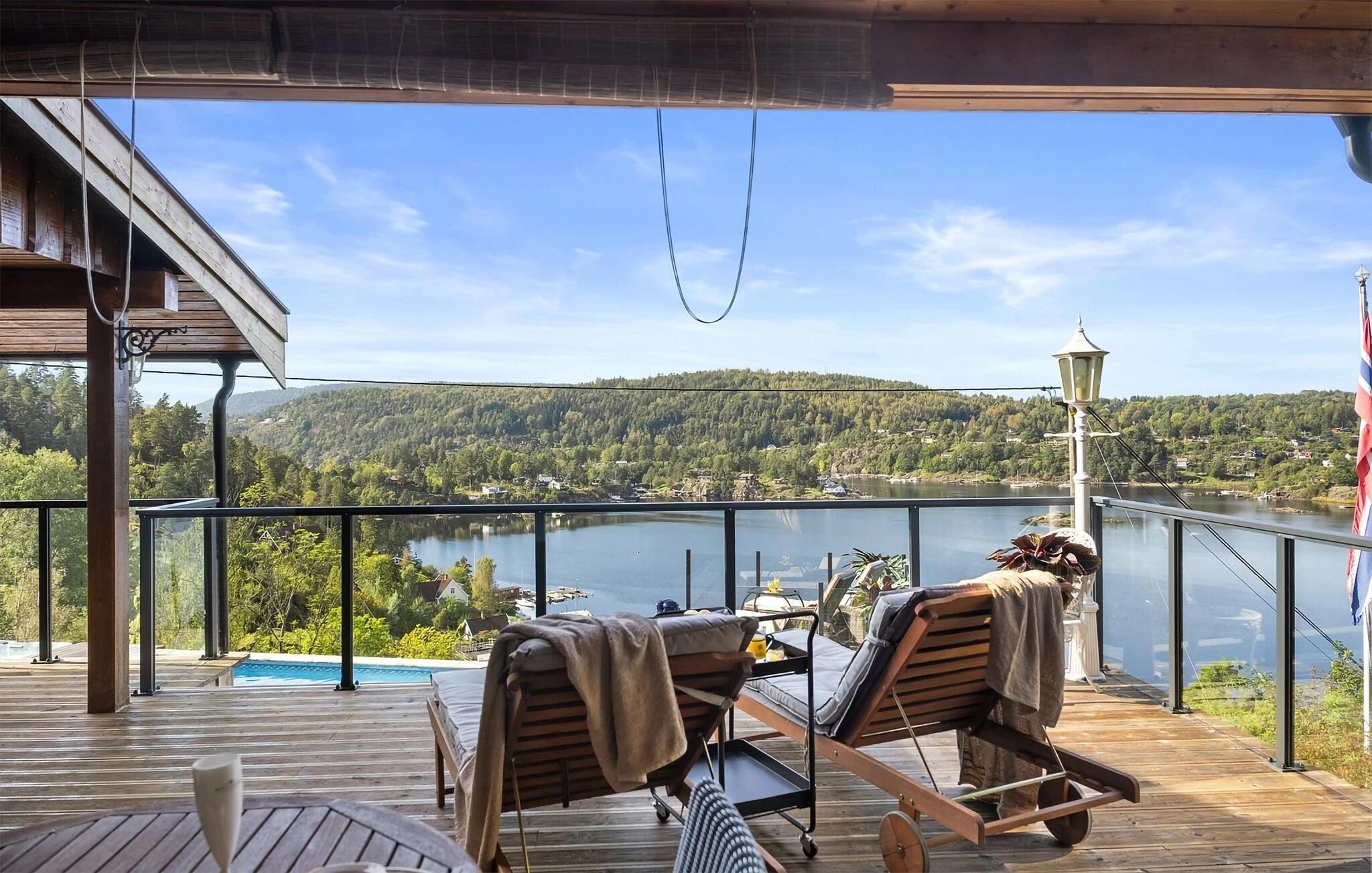 Slap af i dette komfortable feriehus med pool og spabad, og nyd en fantastisk udsigt over fjorden.