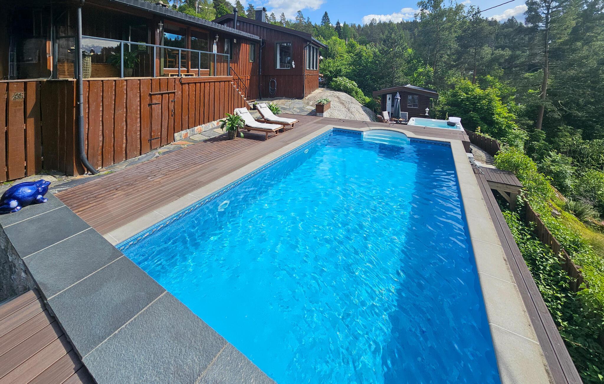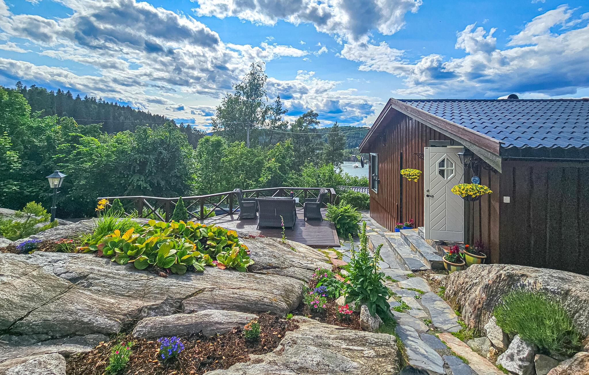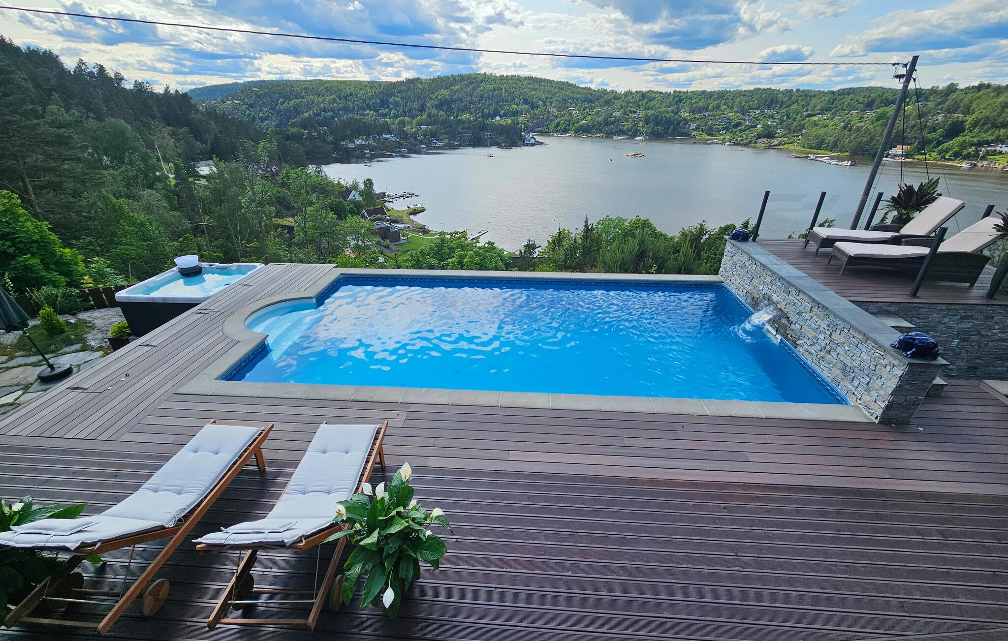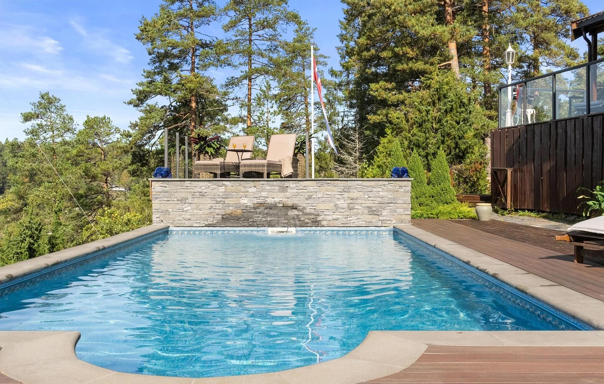 Slap af i dette komfortable feriehus med pool og spabad, og nyd en fantastisk udsigt over fjorden.