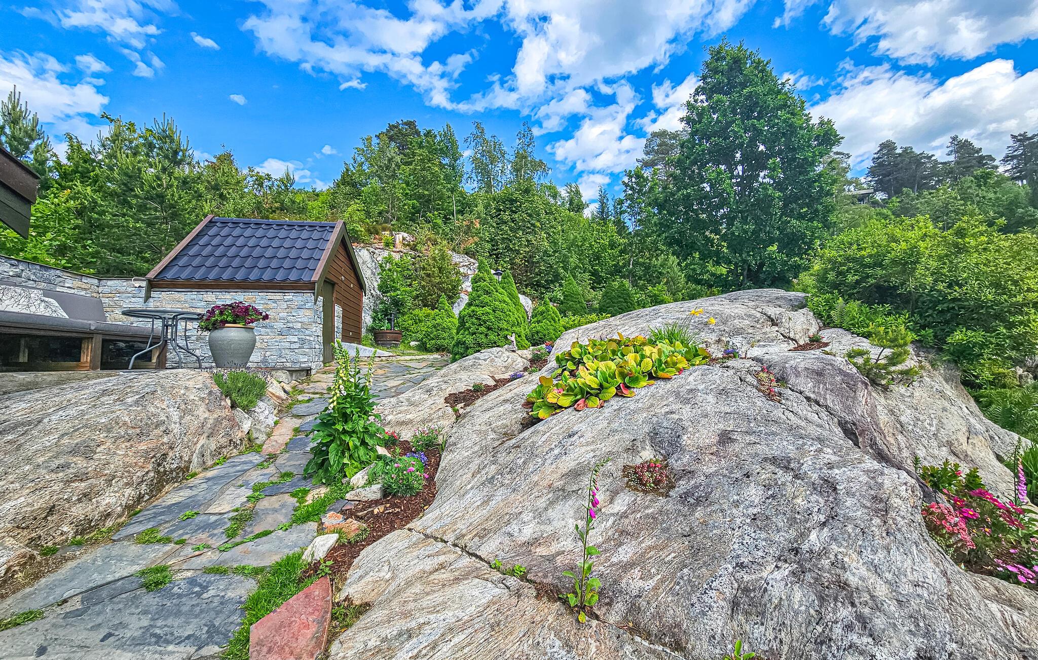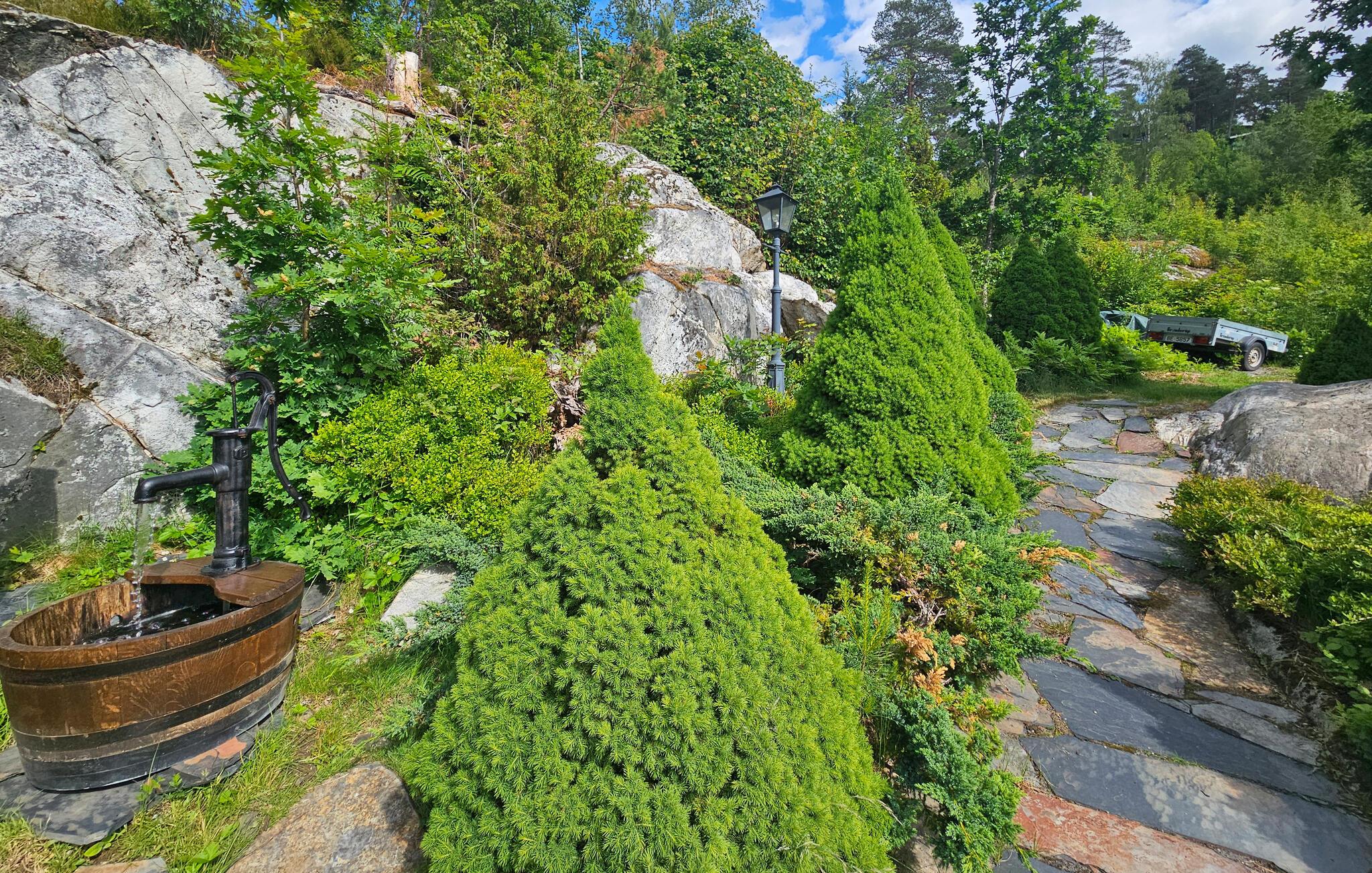 Det alsidige udendørsområde lokker med en stor pool og adskillige idylliske steder til spisning, snak, solbadning og afslapning. Forkæl jer selv med afslappende øjeblikke i spabadet, og fejr jeres tid sammen med lækre retter fra grillen.