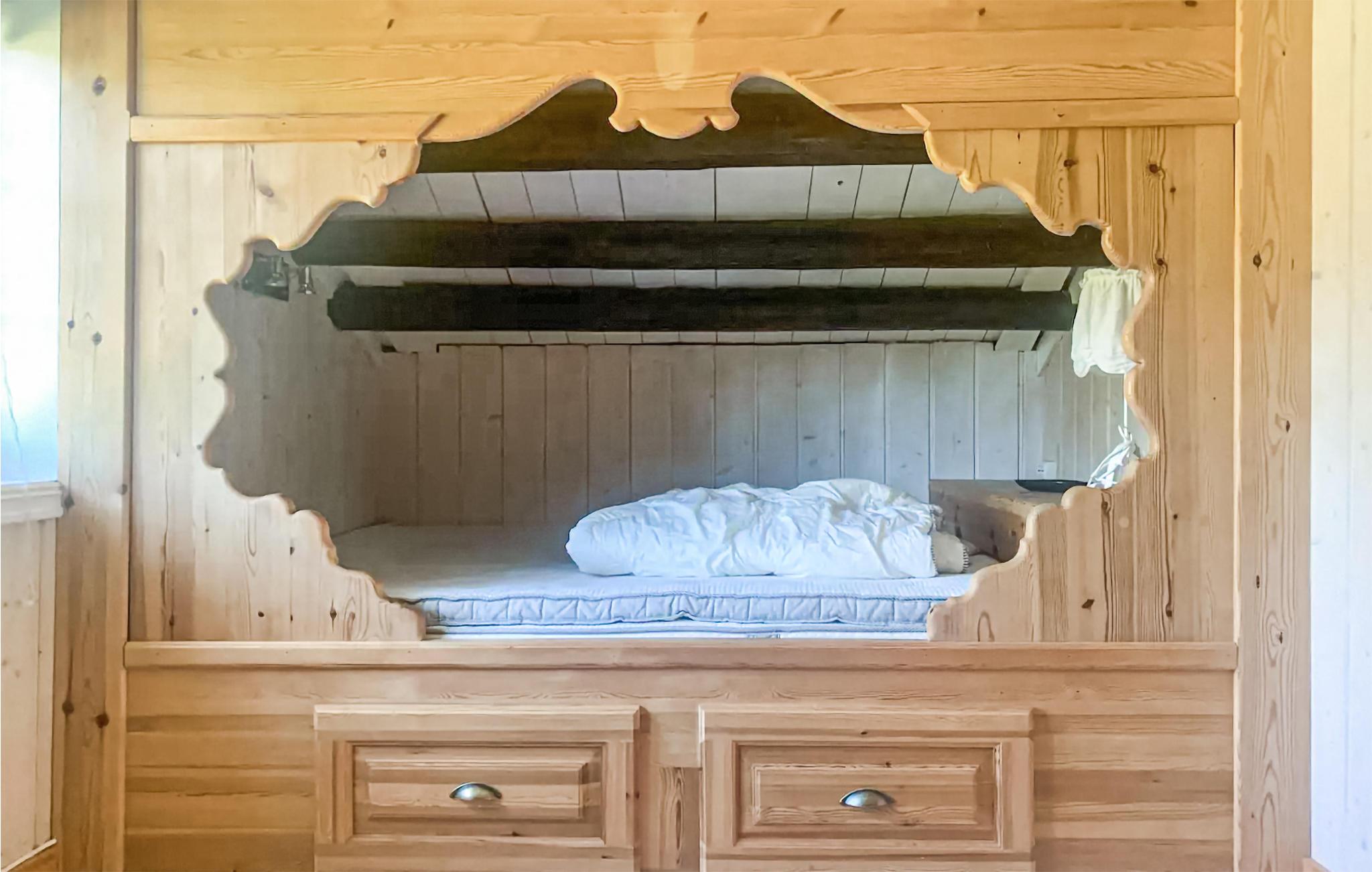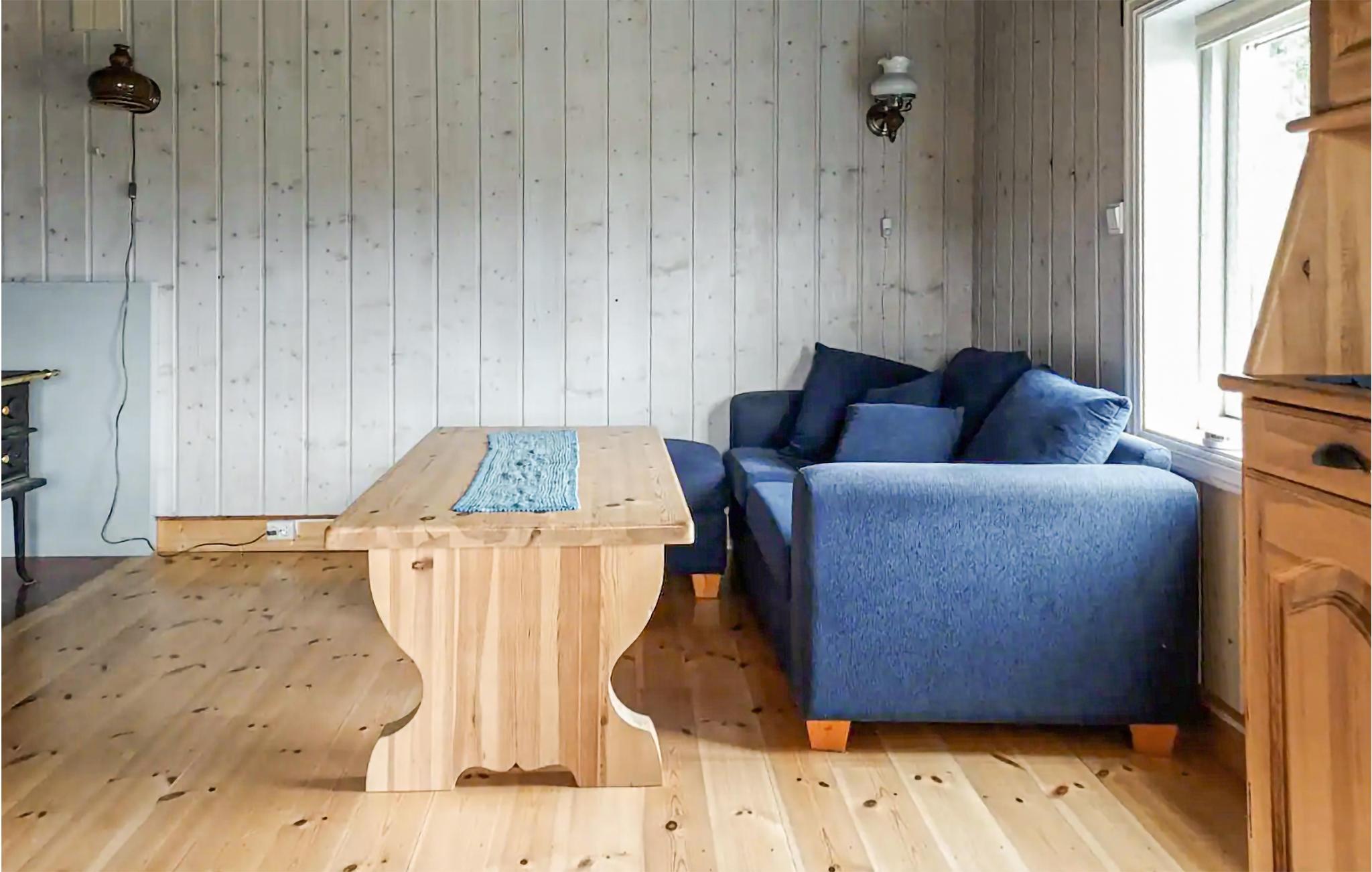 Denne charmerende bjælkehytte har en romantisk beliggenhed mellem skove, vand og dybe dale og tilbyder friluftsmennesker og aktive feriegæster et hyggeligt tilflugtssted i dens træpaneler. Slap af på den komfortable sofa i den lyse stue og nyd en pause med en kop te. Det åbne køkken lægger op til at lave mad sammen, mens det rustikke træbord er ideelt til socialt samvær. Glæd jer til sjove spilleaftener eller hel jer til en god bog, som I ikke har tid til i hverdagen.