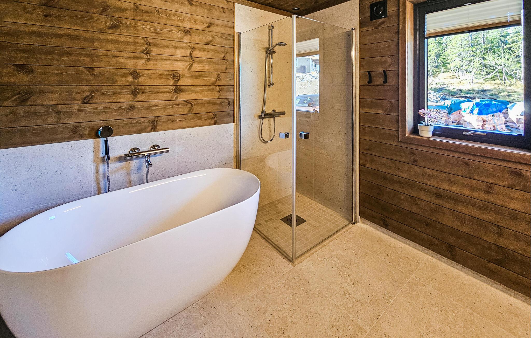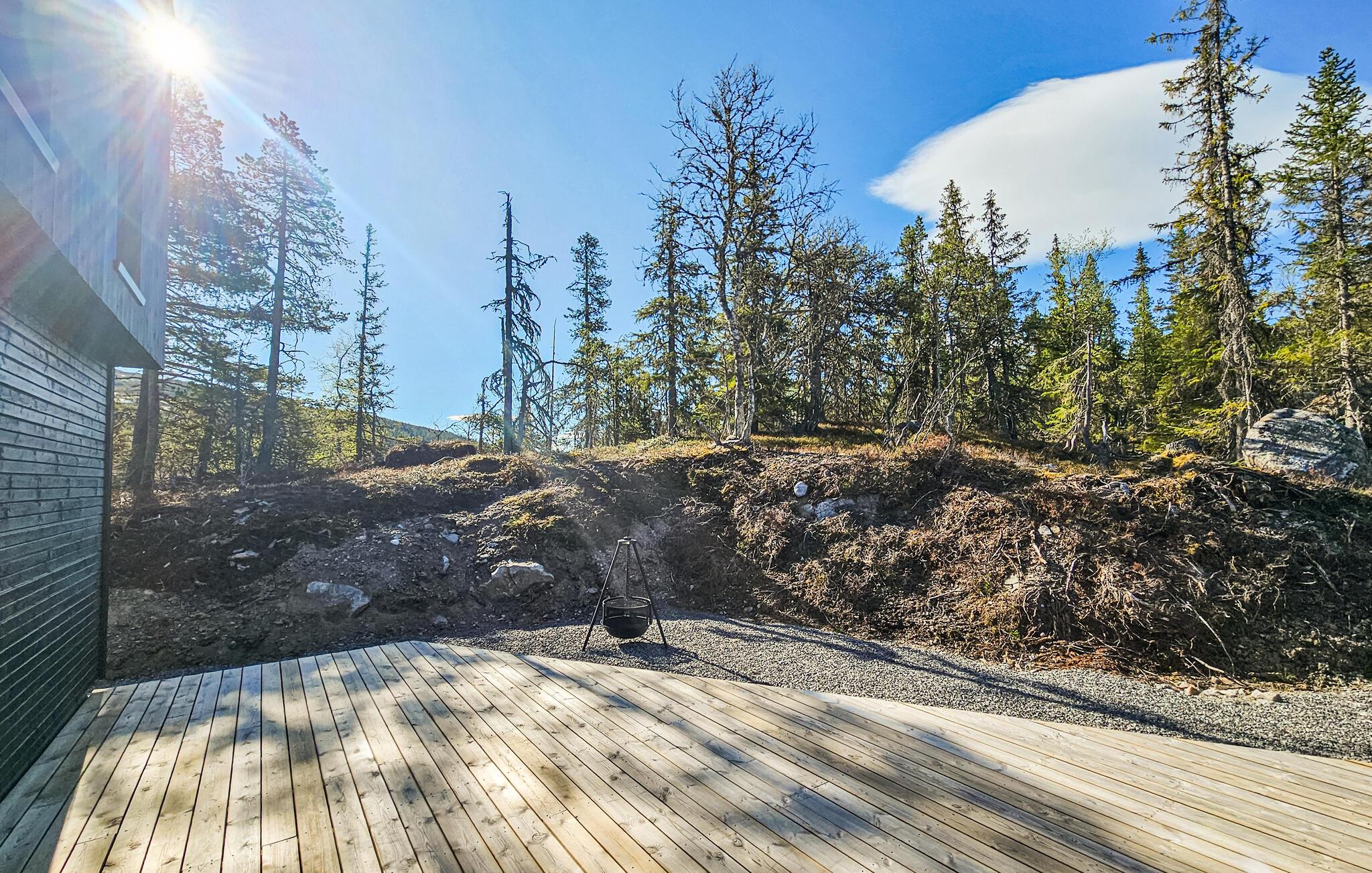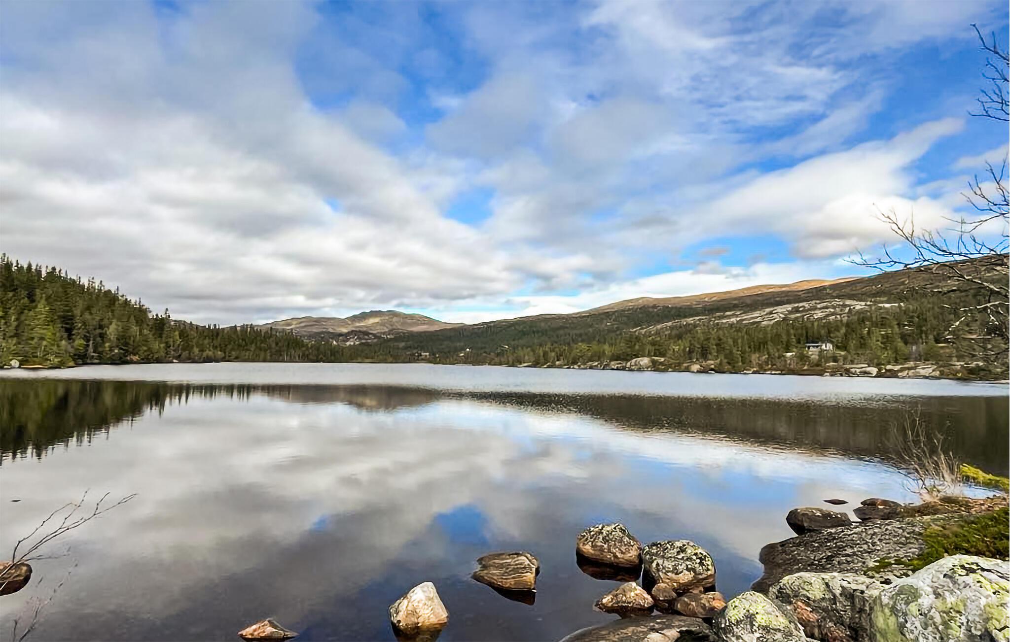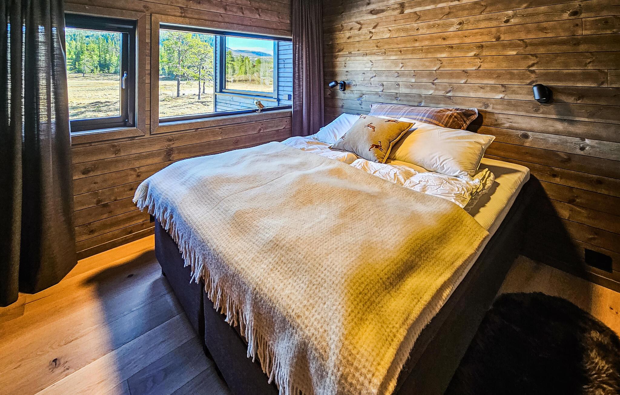 Nyd en dejlig pause i dette stilfulde og kvalitetsindrettede feriehus omgivet af norsk natur. Her finder I det ideelle sted for afslappende ro, spændende aktiviteter og uhindret udsigt over et fantastisk landskab. Træd ind i det moderne interiør med dets åbne planløsning, generøse vinduer og varme træstemning. Find jer til rette i den store sofa foran pejsen og lad blikket vandre gennem panoramavinduerne. Lav mad sammen i køkkenet med køkkenø, moderne apparater og rigelig arbejdsplads. Den tilstødende spiseplads med et stort træbord er perfekt til hyggelige aftener.