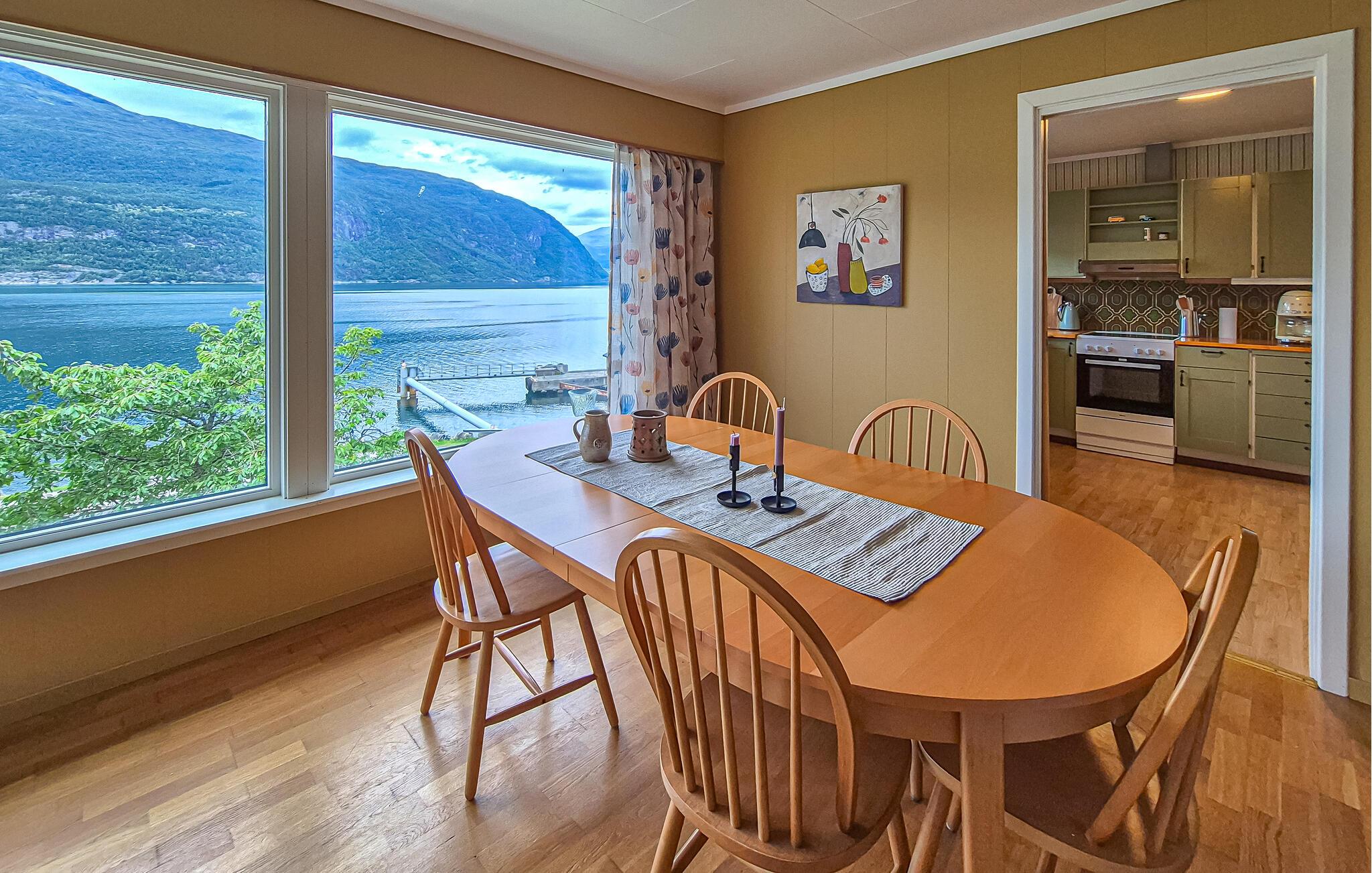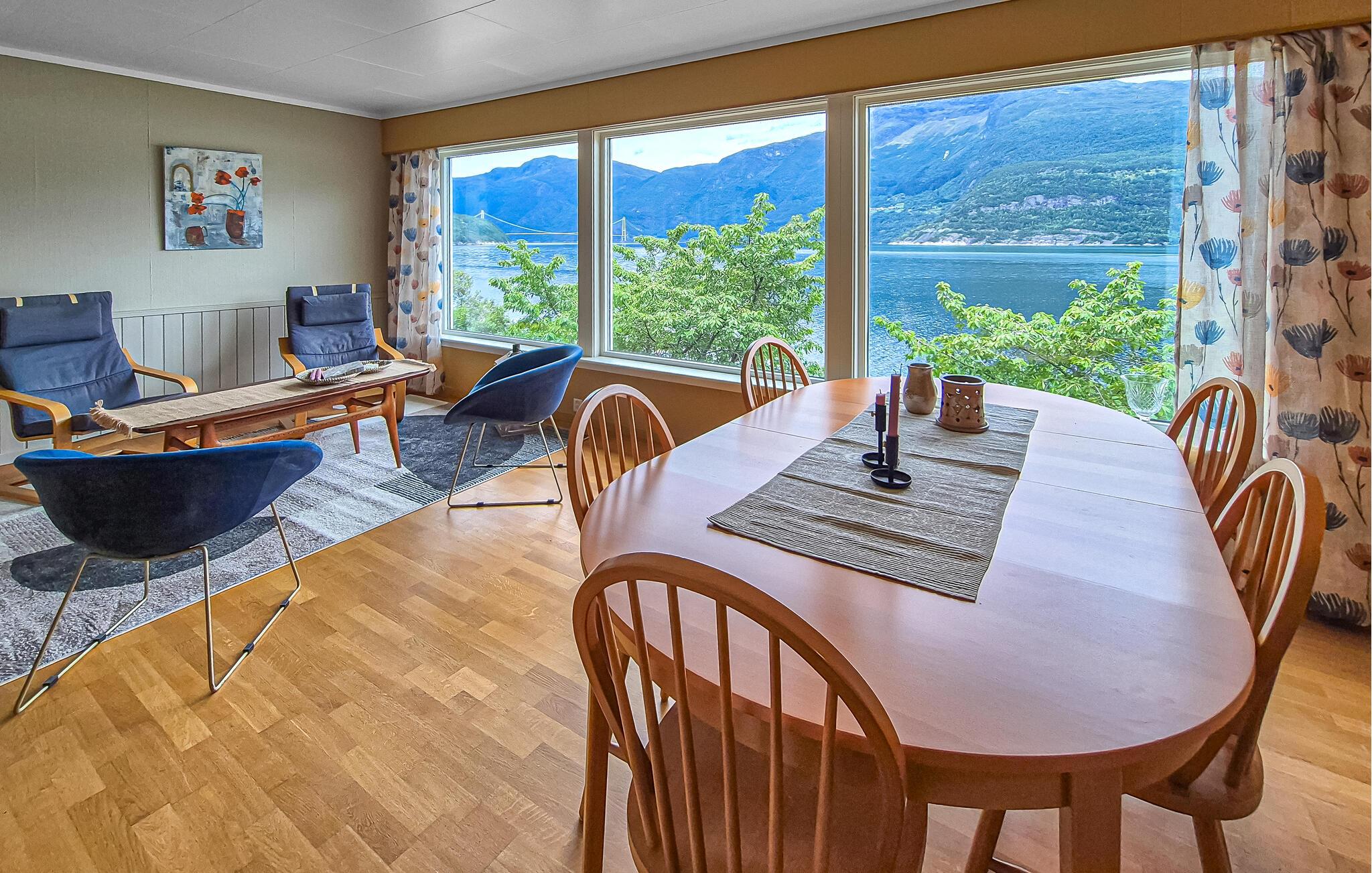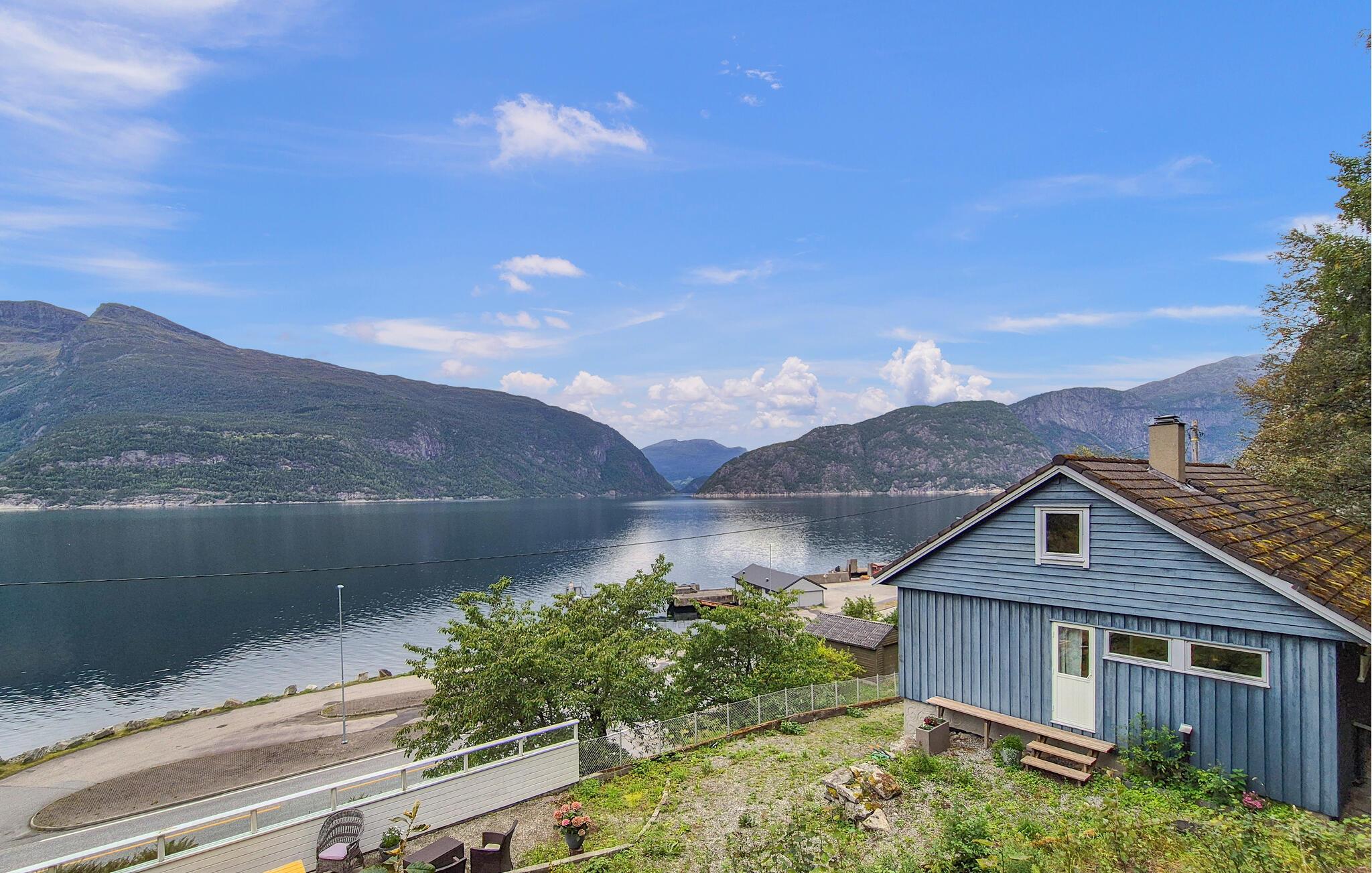 Kun et stenkast væk kan I svømme eller fiske, mens I nyder naturens særlige ro. De omkringliggende bjerge lægger op til smukke vandreture med storslået udsigt. Udforsk Mikkelparken i Kinsarvik med børnene eller udforsk fascinerende naturattraktioner som Vøringsfossen, Hardangervidda eller Trolltunga. Hvis I har lyst til en dagstur, så besøg ekstremsportshovedstaden Voss eller byen Odda.