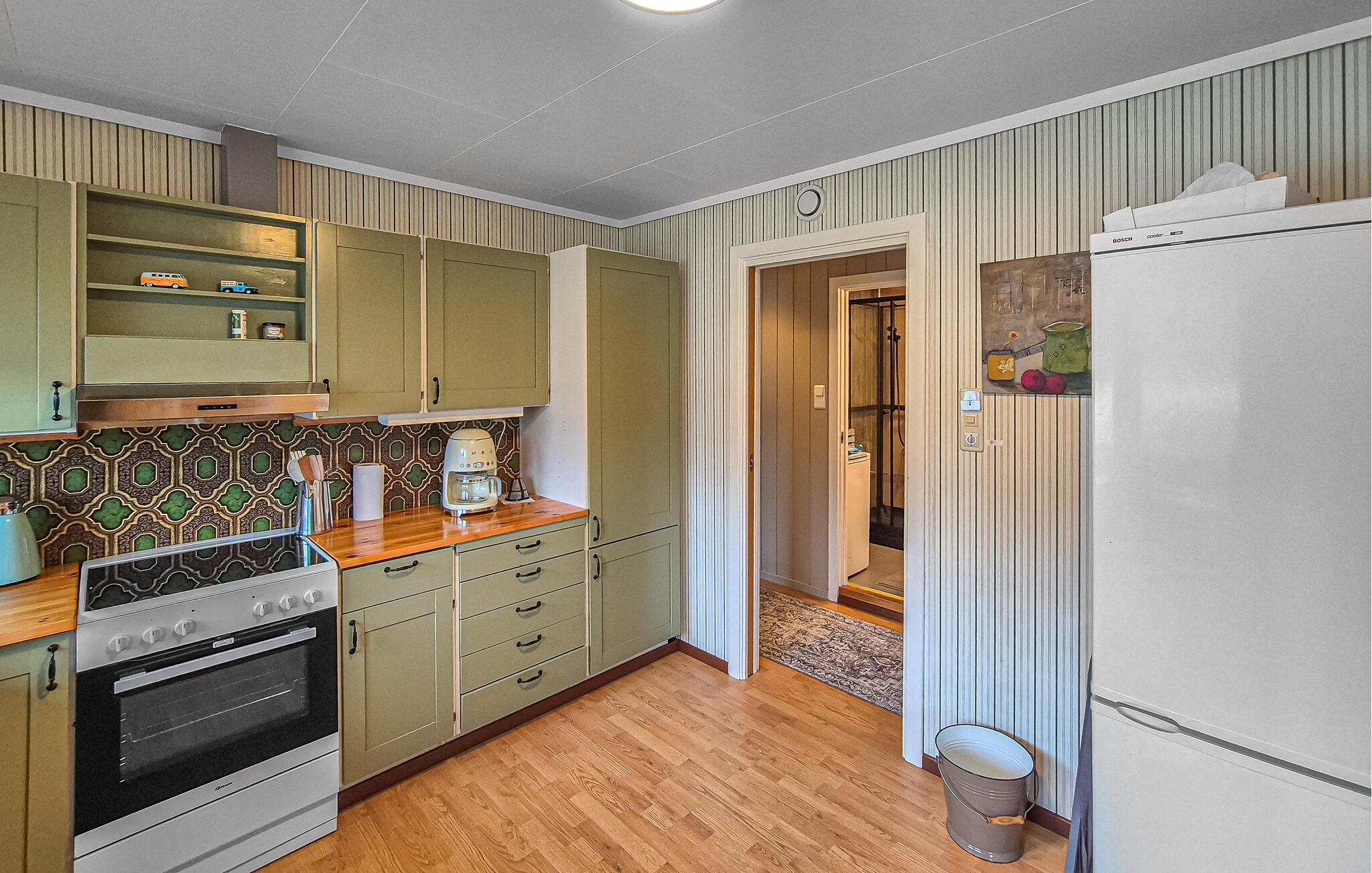 Dette hyggelige hus er det ideelle tilflugtssted for en afslappende pause fra hverdagen. Nyd udsigten gennem de store panoramavinduer, mens I tilbringer tid sammen i den lyse opholdsstue. De hyggelige møbler med komfortable lænestole, sofaer og en brændeovn lægger op til at slappe af og koble fra. Efter en dag udendørs kan I tænde brændeovnen og nyde en afslappende filmaften.