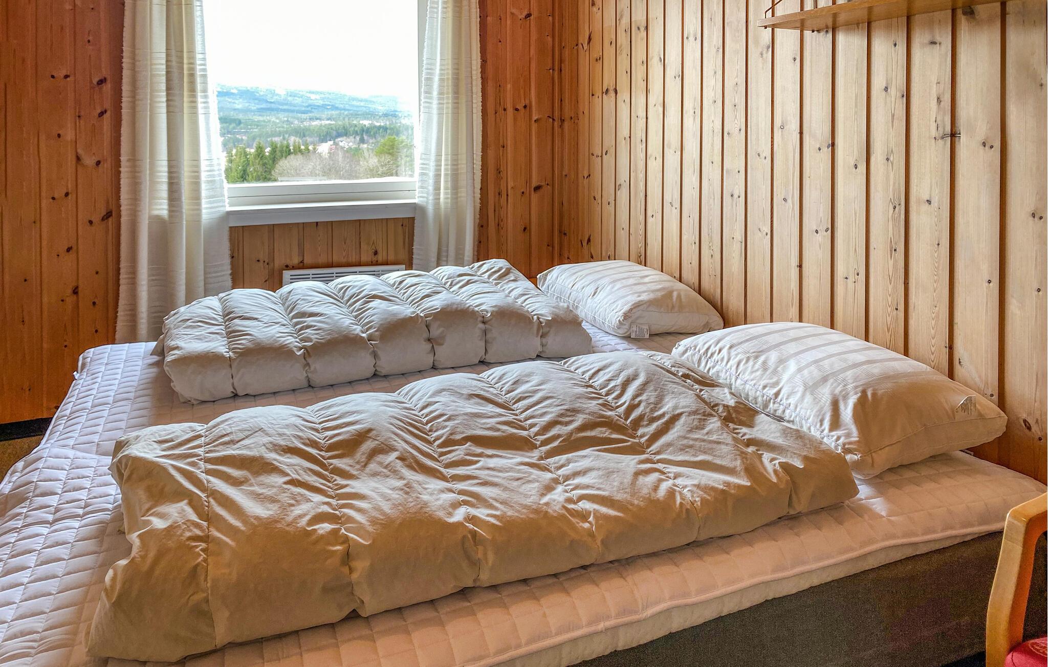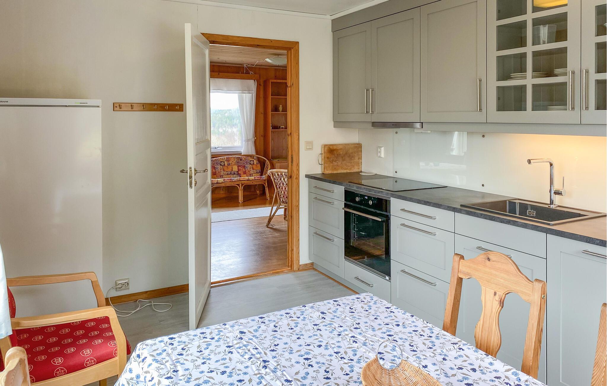 En ferie med fred, ro og masser af smuk natur. Det er, hvad der venter jer i denne indbydende bolig, der ligger tæt på Eidsvåg og har en enormt fin udsigt til bjergene. Indretningen fremtræder både lyst og venligt med let rustikke møbler og gode faciliteter, der gør det nemt at sænke skuldrene og bare nyde det lave ferietempo. Lad amatørkokkene kræse om madlavningen i det funktionelle køkken, mens andre dækker op til den store middag ved spisebordet. Senere kan I tænde op i brændeovnen og rykke over i sofaen med brætspil eller en god film, mens I lægger planer for de kommende dage.
