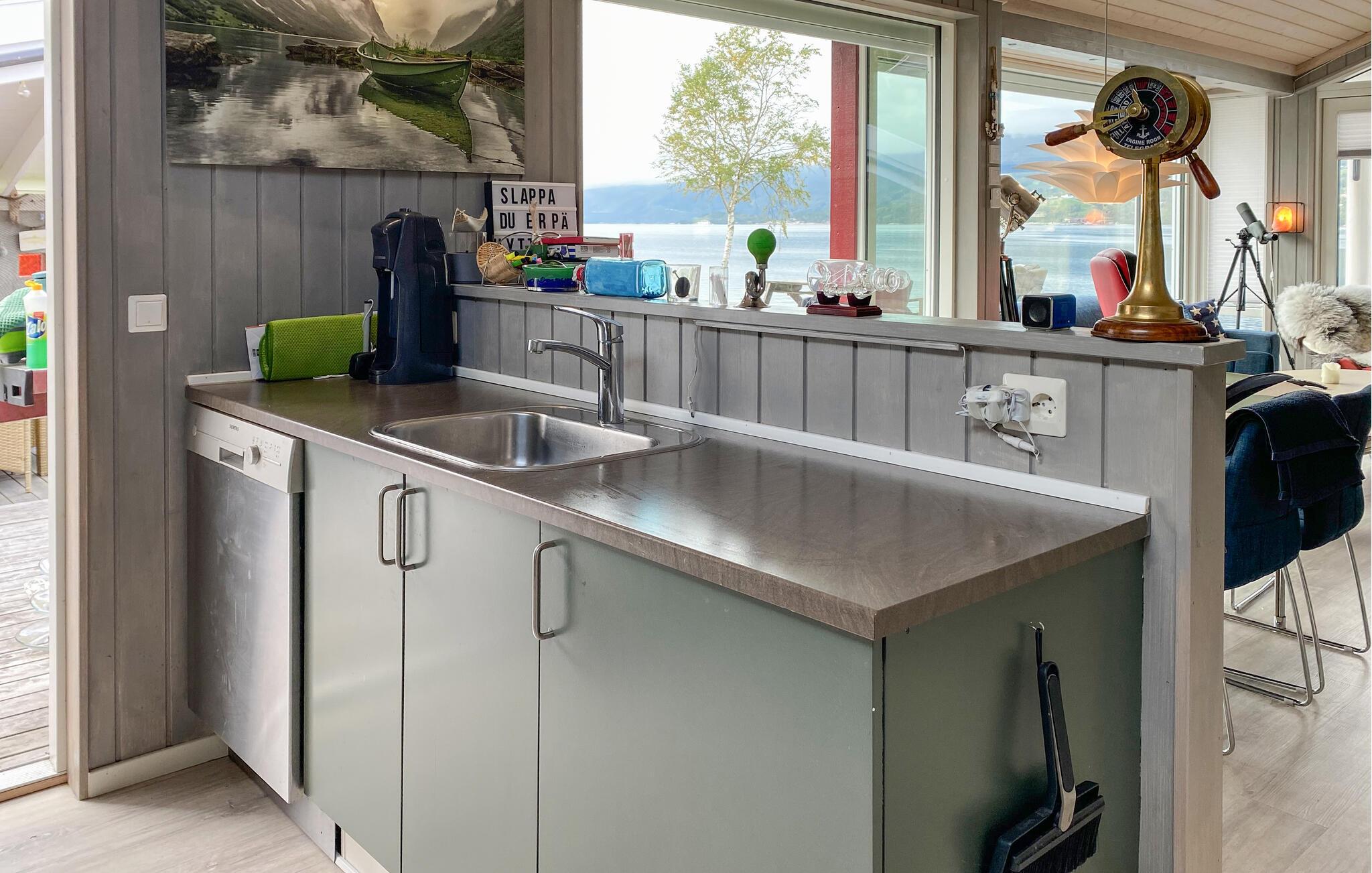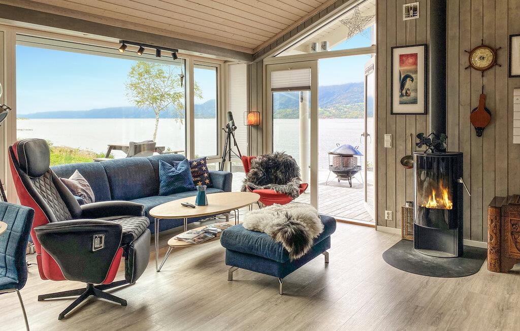 Den idylliske beliggenhed af jeres feriehus i Eidsvåg byder på en smuk udsigt over Langfjorden lige uden for døren og adgang til talrige aktiviteter. Her kan I opleve uforglemmelige dage i naturen. Begynd dagen med en hyggelig morgenmad ved det smukke spisebord ved siden af det veludstyrede køkken, mens I planlægger dagens aktiviteter. Den indbydende sofakrog med brændeovnen indbyder til afslappende timer, hvad enten det er til et spil kort med familien eller en hyggelig filmaften. Eller nyd blot den betagende udsigt over fjorden herfra. Feriehuset er smagfuldt indrettet, og de kærlige detaljer skaber en atmosfære, hvor I straks vil føle jer hjemme.