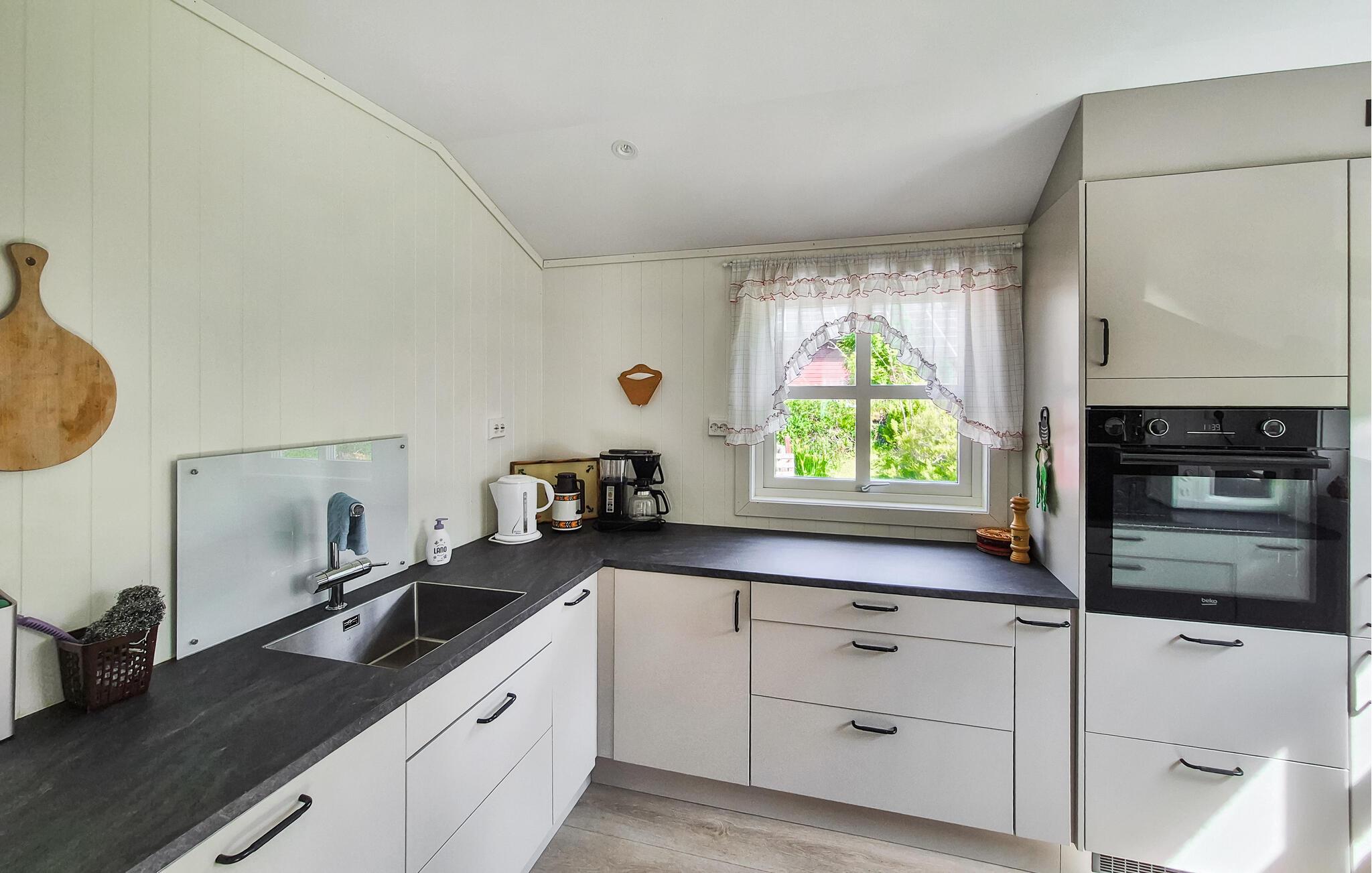 Dette kærligt restaurerede hus fra 1920'erne byder jer velkommen midt i Hålandsdalens fortryllende landskab. Her forsvinder hverdagen hurtigt i baggrunden. Tilbered friskfanget fisk i det moderne køkken og nyd jeres måltid med udsigt over det grønne, mens pejsen knitrer stille. Efter en lang dag udendørs lokker den hyggelige stue – spil et brætspil mellem traditionelle møbler og træpanelvægge, eller nyd den hyggelige atmosfære med en stille bog.