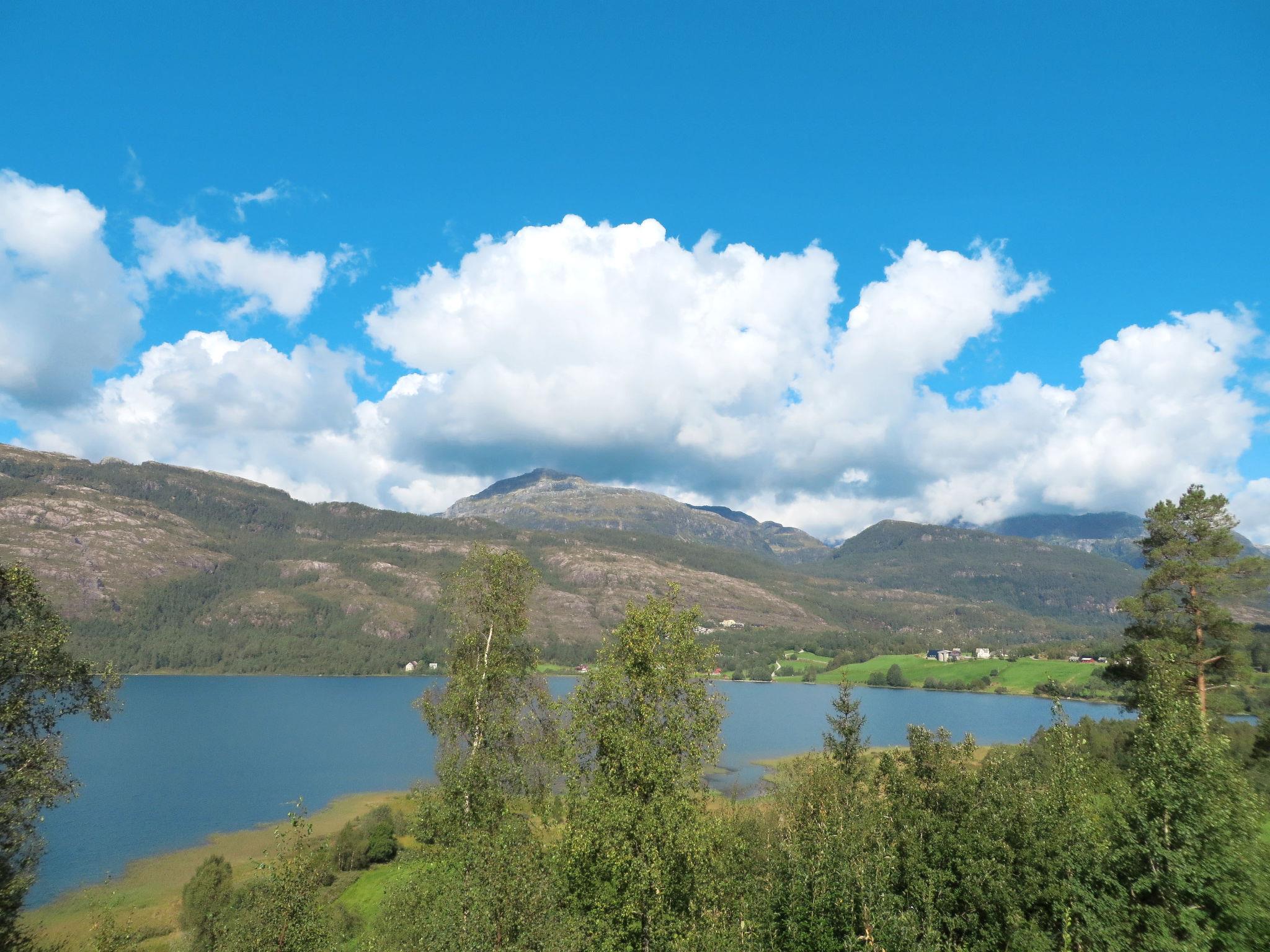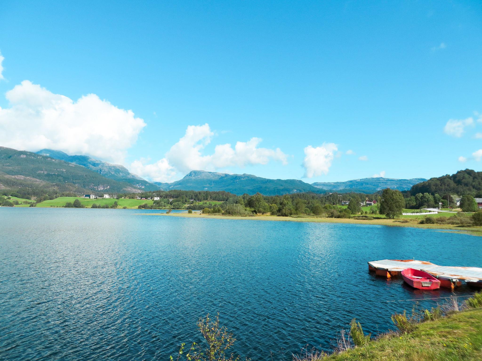 Beautiful timber house "Anna", 90 m a.s.l., built in 1998. 2.5 km from the centre of Eikelandsosen, 55 km from the centre of Norheimsund, 55 km from the centre of Bergen, 175 m from the lake, 3.5 km from the beach, 2.5 km from the fijord, in a cul-de-sac. For shared use: natural state property. Volleyball court. Private: barbecue. Rowing boat (on request Local agreement), parking on the premises. Shop 2.5 km, bus stop "Heimstad" 300 m, railway station "Bergen" 55 km, ferry "Bergen" 55 km, park "Eikelandsfjord" 3.5 km. Cross country ski track 6 km, fishing possibilities 800 m. rowing boar for shared use.