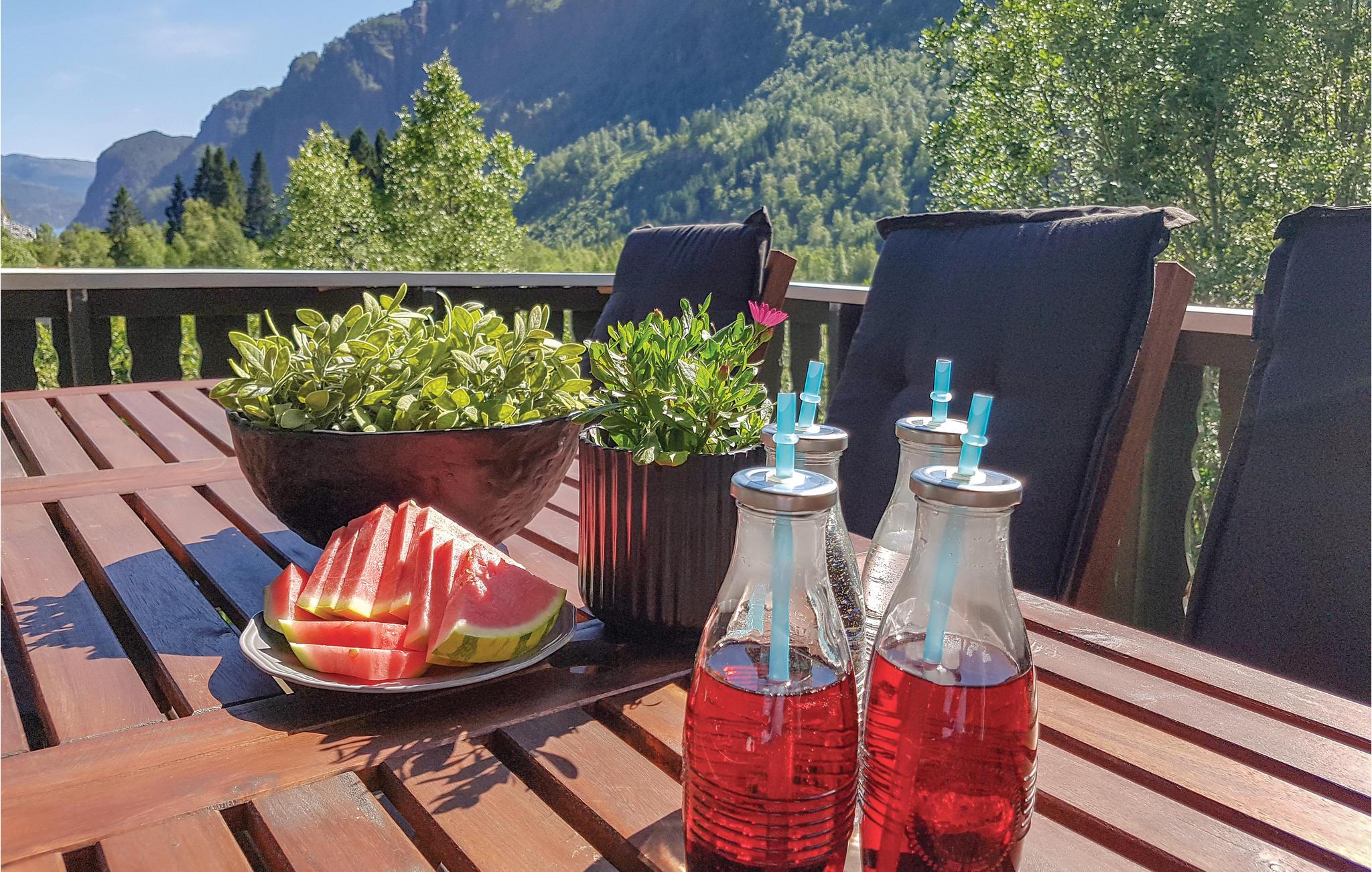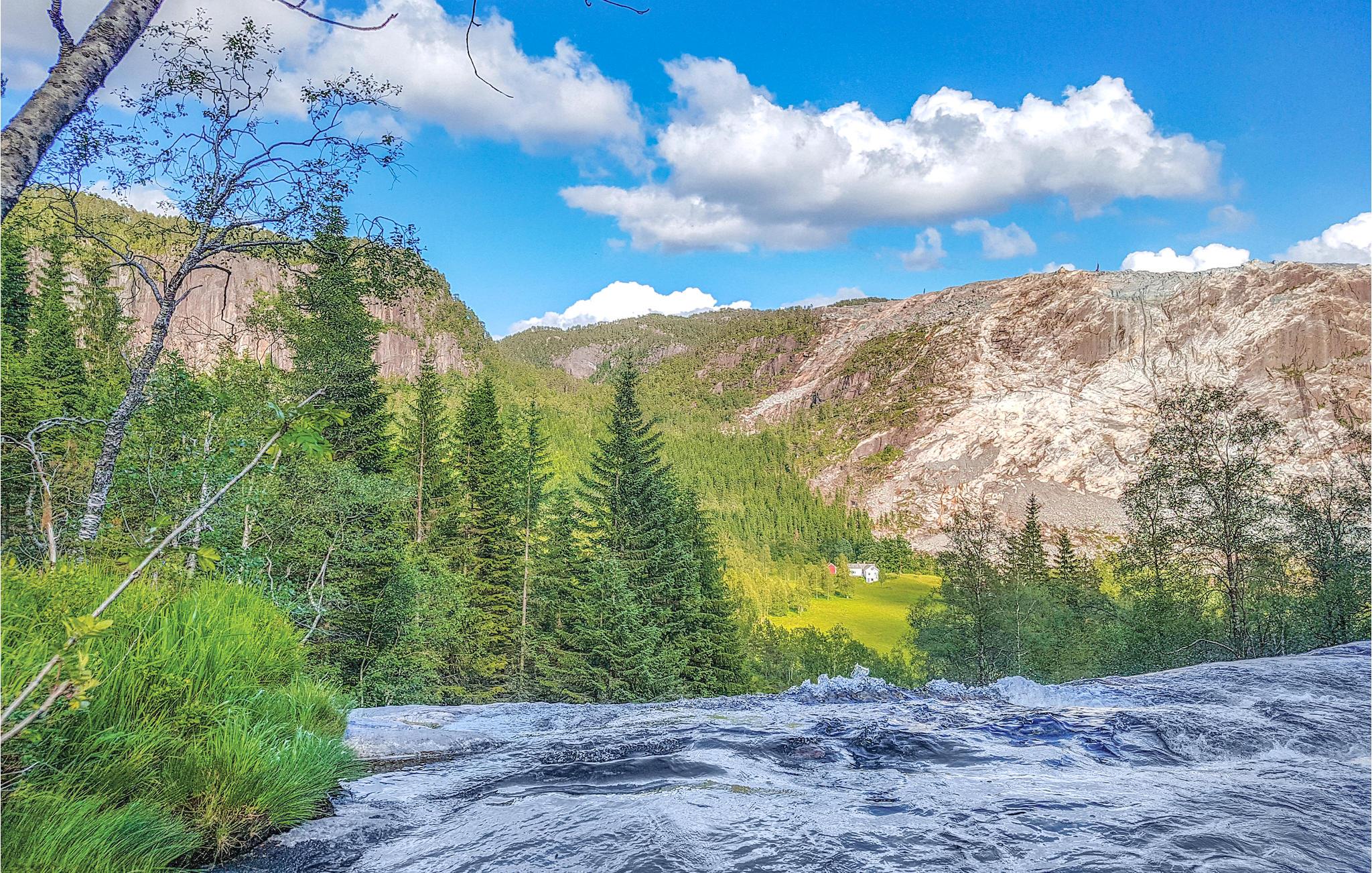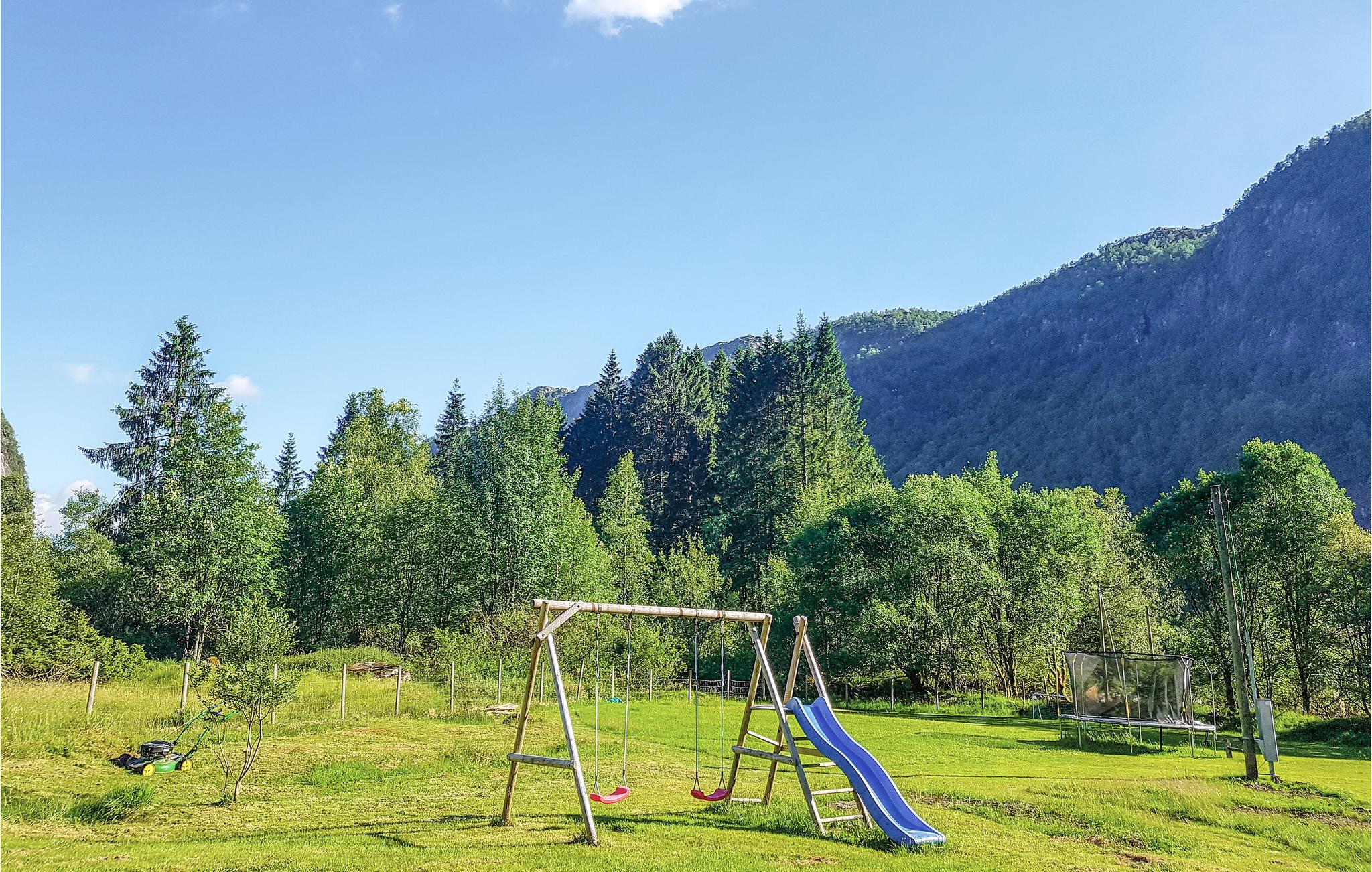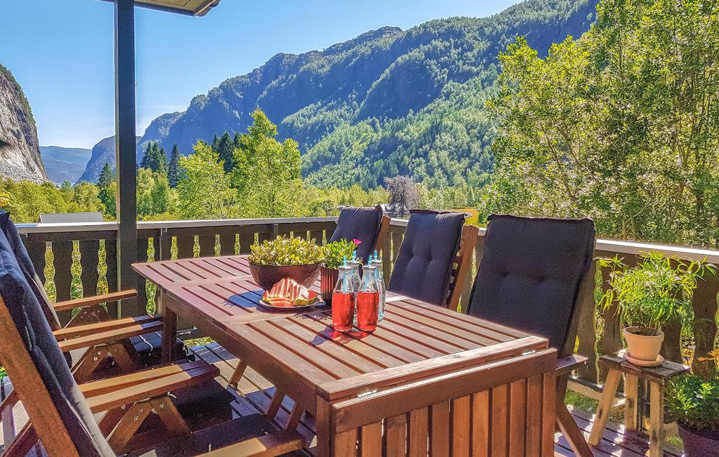 Velkommen til en dejlig ferie oppe på Eikemo, som ligger i den smukke dal med en skøn udsigt mod fjeldene og kig til fjorden. Lejligheden ligger ugeneret, og er meget børnevenligt med mange muligheder for leg både lige uden for lejligheden og på legepladsen tæt ved. Husejeren ejer nogle store fjeldområder med mange små fiskevand, hvor I kan fiske gratis.