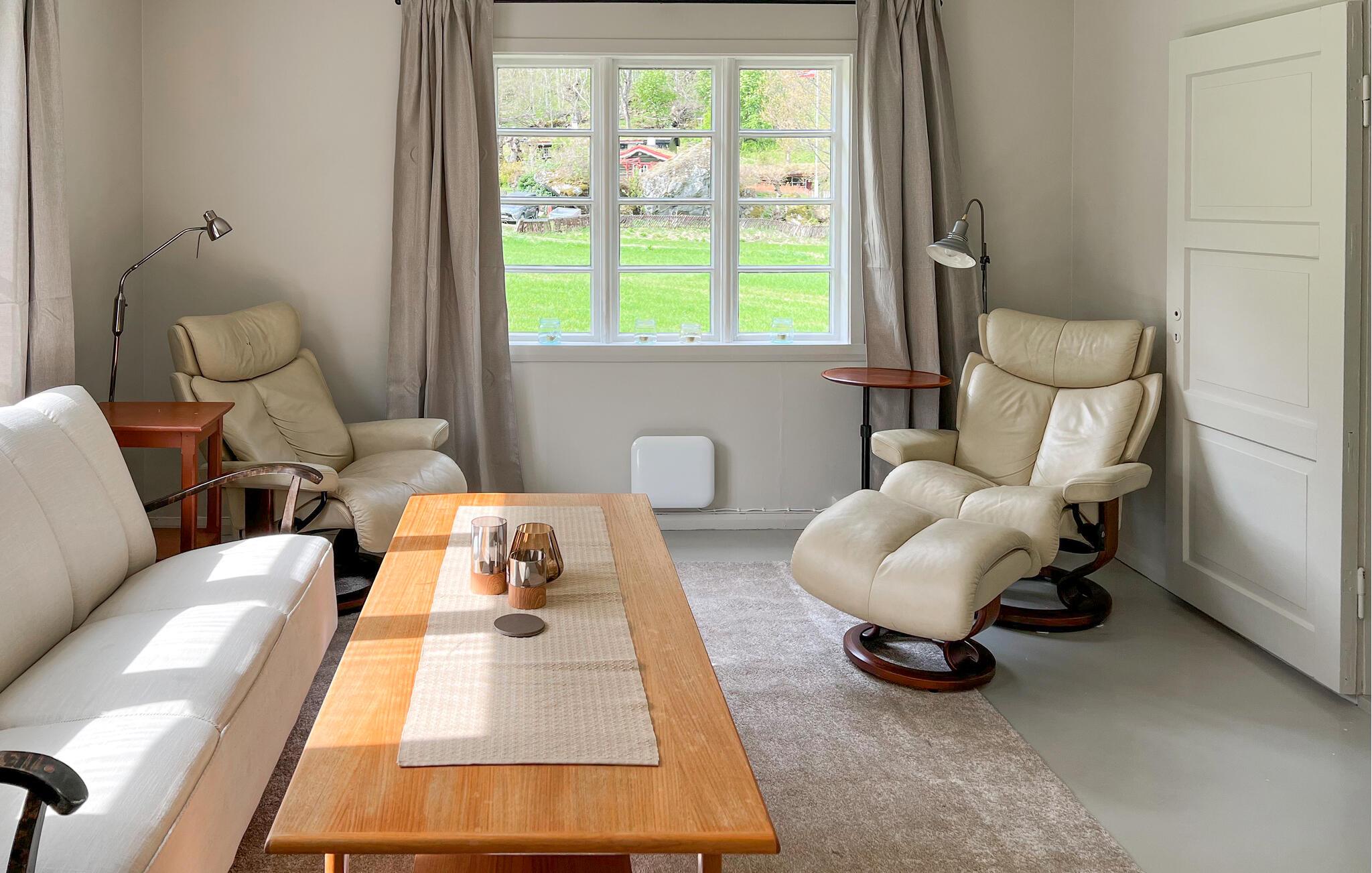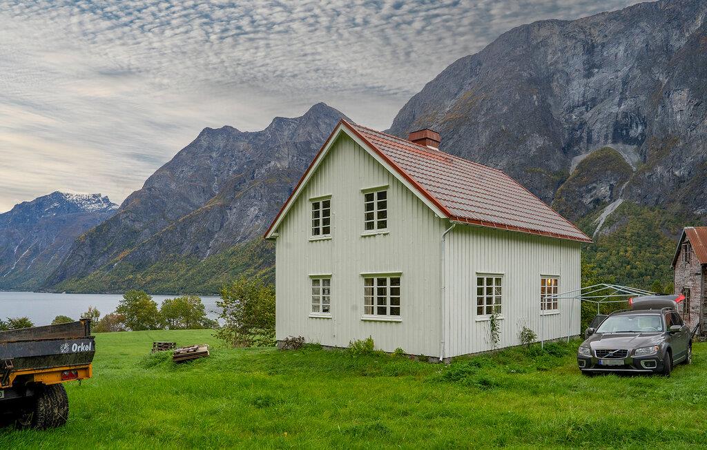 Dette feriehus tilbyder en spektakulær beliggenhed lige ud til søen, omgivet af uberørt natur og imponerende bjergkæder. De varme, skandinaviske møbler med masser af træ skaber en hyggelig atmosfære, mens store vinduer lukker masser af lys ind, og det betagende landskab bliver en del af opholdsrummet. Om aftenen kan I varme jer ved pejsen efter en begivenhedsrig dag i naturen. Beundre udsigten over det glitrende vand, mens I slapper af i haven eller Begynd dagene med morgenmad udendørs.