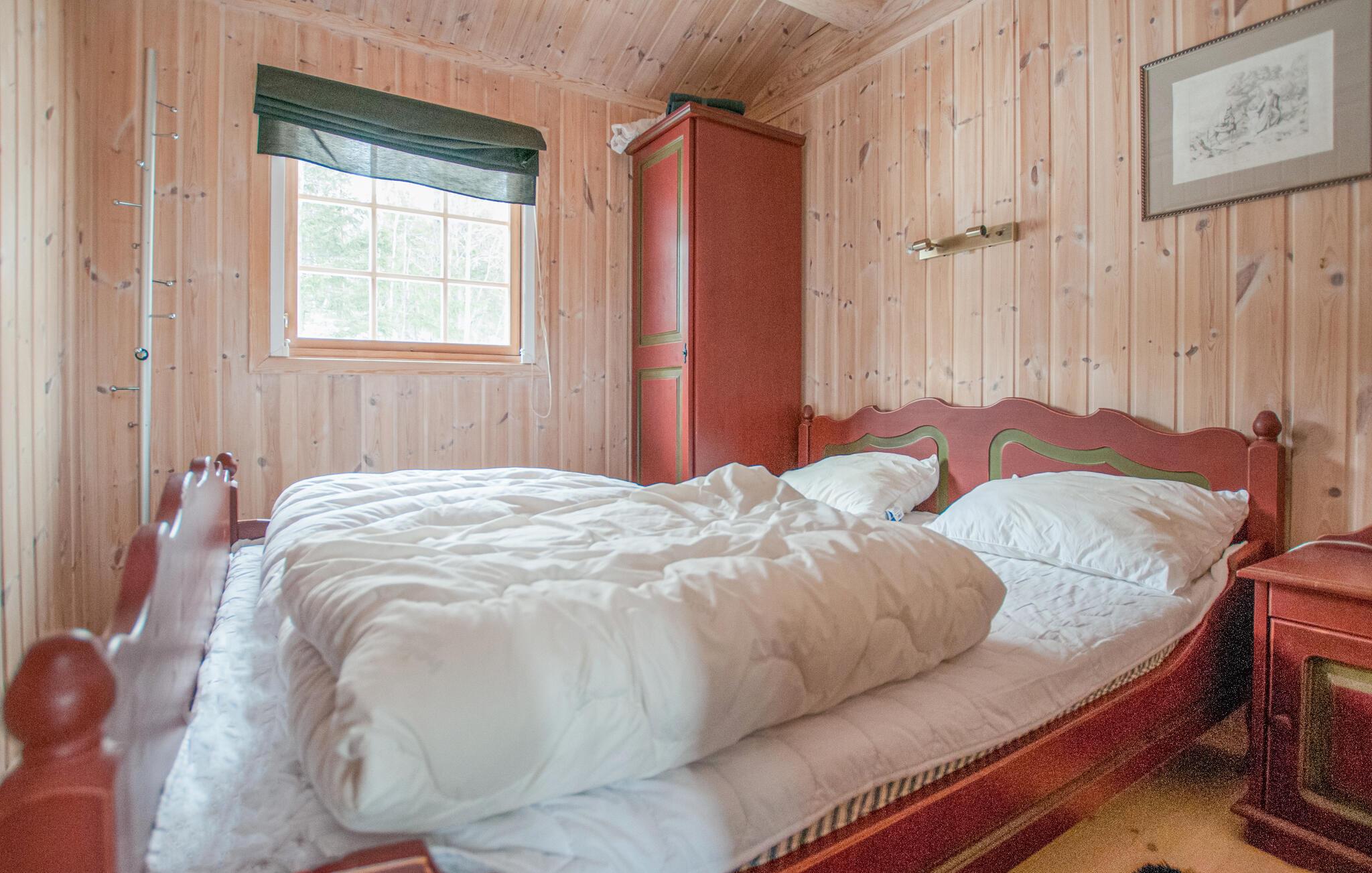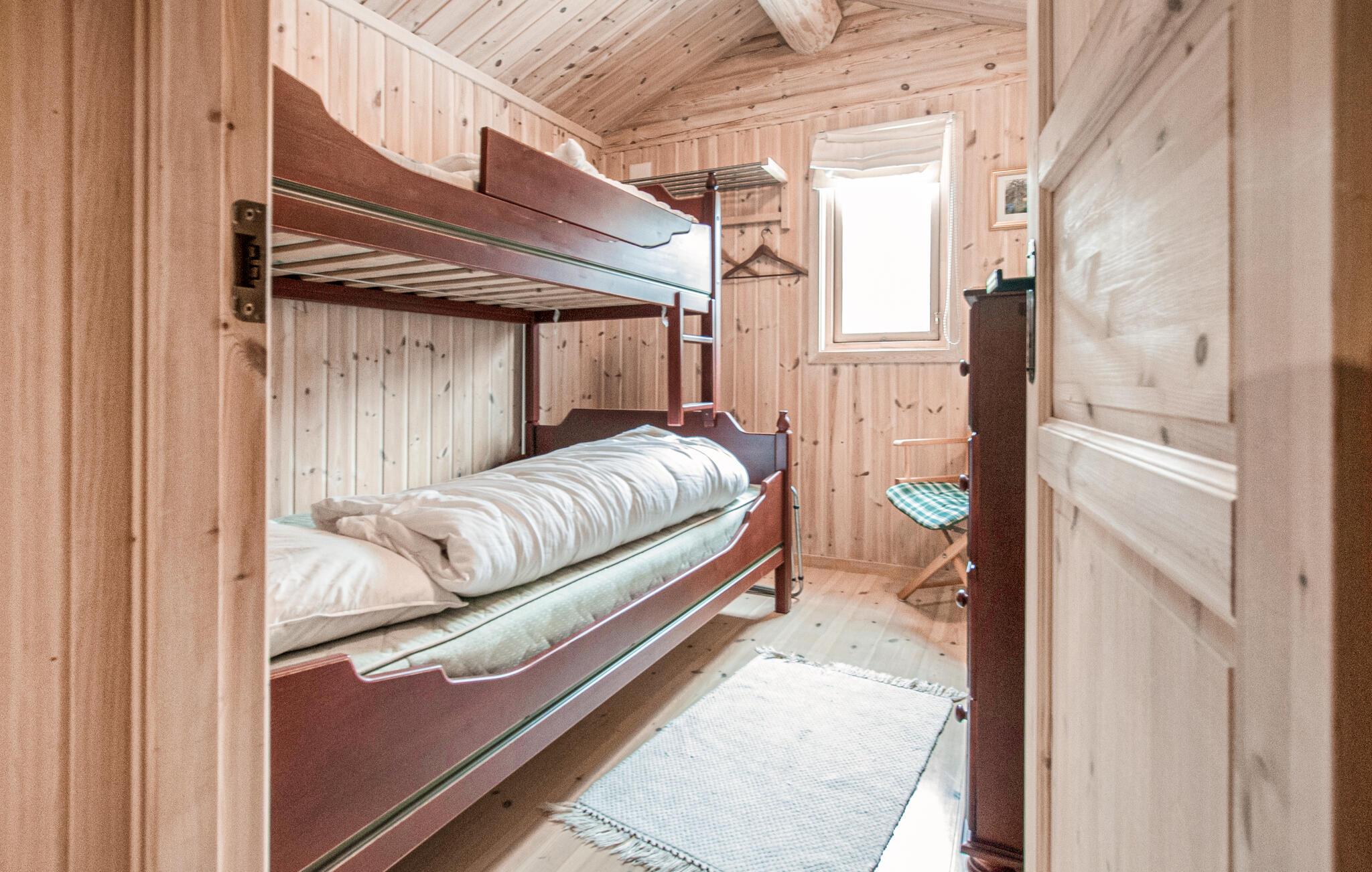 Tag afsted med familien og få sat gang i ferien i dette hyggelige træhus. Fordel jer på 2 etager og nyd dejlige stunder sammen i sofahjørnet. Skru endnu mere op for hyggen med brændeovnen og et sjovt spil på sofabordet. I køkkenet kan i forberede lækre snacksskåle og naturligvis kreere dagens middag. Om aftenen kan I samle alle dynerne i sofaen og sætte en god film på tv’et. I kan også nyde en dejlig varm tur i saunaen.