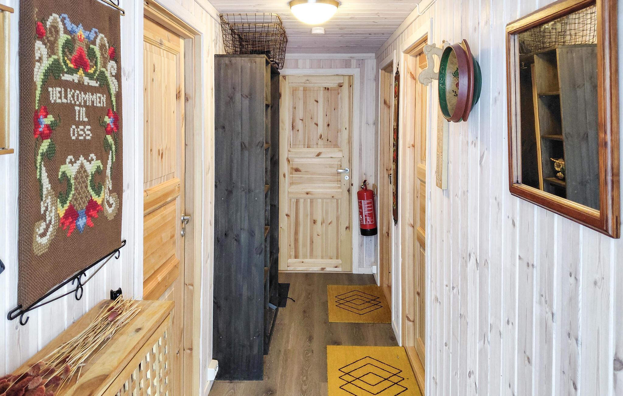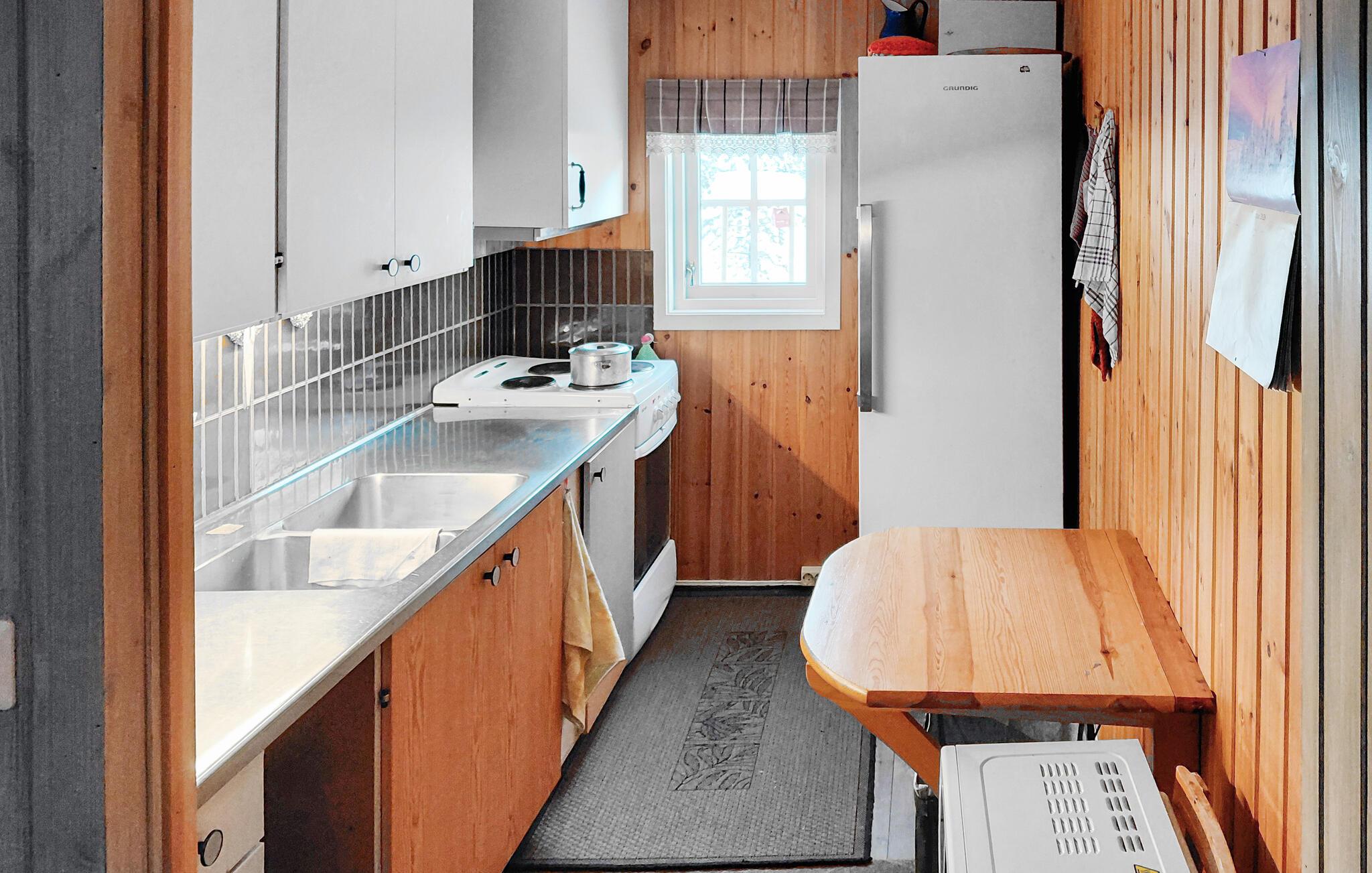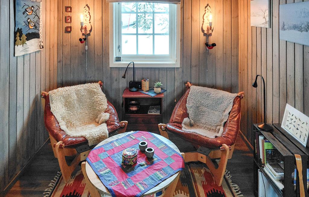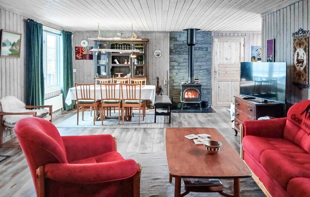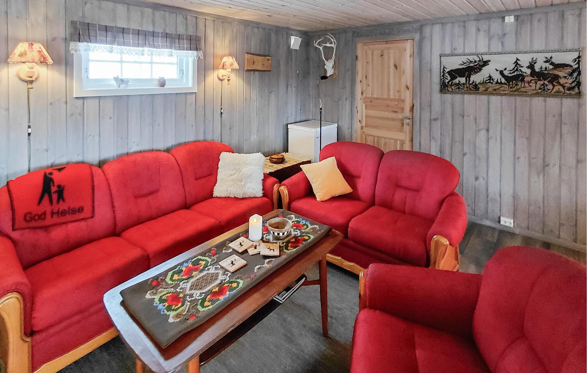 Glæd jer til et hyggeligt interiør med rustik charme. Sæt jer til rette i sofaerne og nyd den varme atmosfære, der skabes af træoverfladerne og de gennemtænkte detaljer. Lad den knitrende ild i brændeovnen give hygge på kølige aftener, og brug opholdsstuen til fælles måltider eller rolige timer med en bog. Slå jer ned ved spisebordet og planlæg jeres dag bevidst uden hastværk. Træk jer tilbage til det hyggelige siddeområde og nyd jeres fritid fuldt ud.
