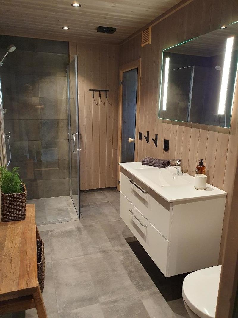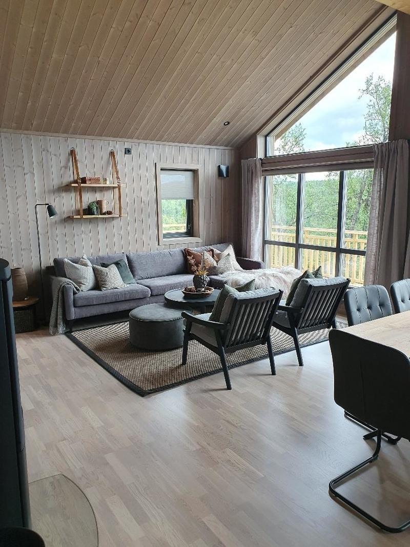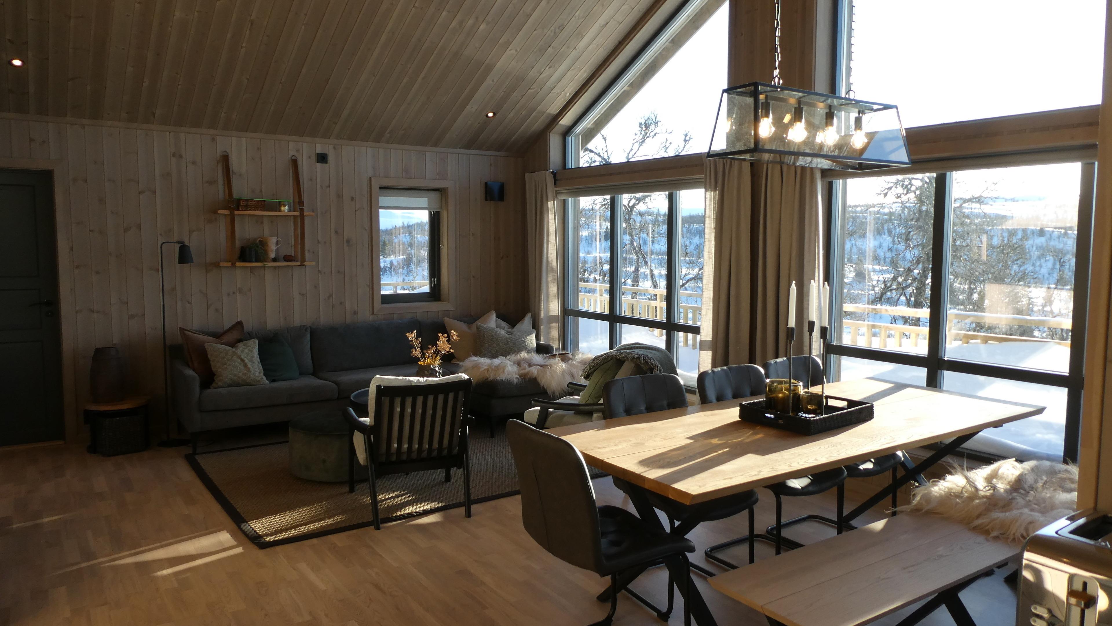 Unser gemütliches Ferienhaus hat drei Schlafzimmer mit einem Doppelbett und 2 Kabinenbetten. 90/140 und 90/160. Vom offenen Wohnzimmer mit Kaminofen hat man einen wunderschönen Blick über die umliegende Fjell- und Gebirgslandschaft. Die offene Küche ist funktional und komplett ausgestattet. Nach einer Wanderung oder einem Tag im Schnee kann man sich auf die Sauna freuen. Entzünden Sie den Kaminofen und widmen sich Ihrer Urlaubslektüre oder schmieden vielleicht Pläne für den folgenden Tag. Im Sommer können Sie die Außenterrasse nutzen.