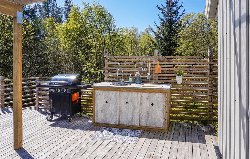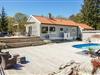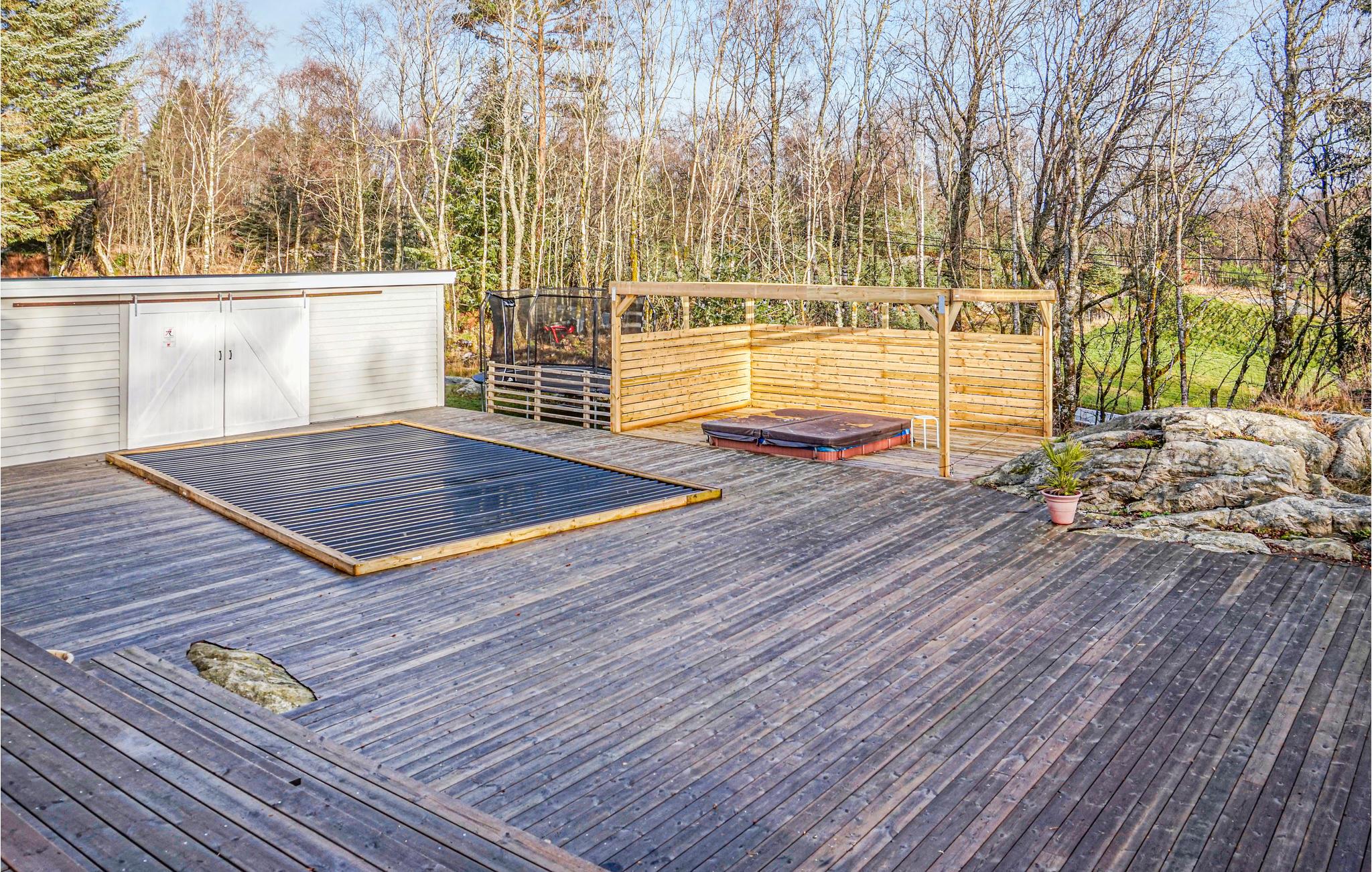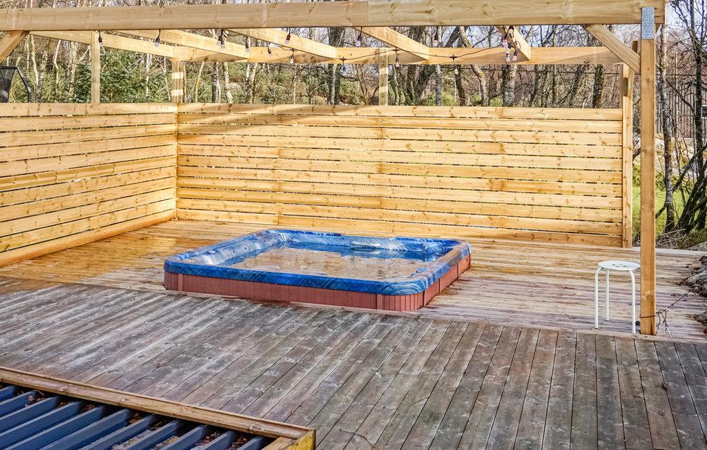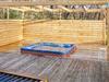 Ferieboligen har en stor terrasse med udendørs, opvarmet swimmingpool. Der er både havemøbler og liggestole ved poolen. Der er boblebad tilgængeligt mod betaling og efter aftale med ejeren. Terrassen har gode solforhold, så her kan I nyde afslappende sommerdage fuldt ud. På den store grund er der også et bål, en stor boldbane og en stor parkeringsplads.