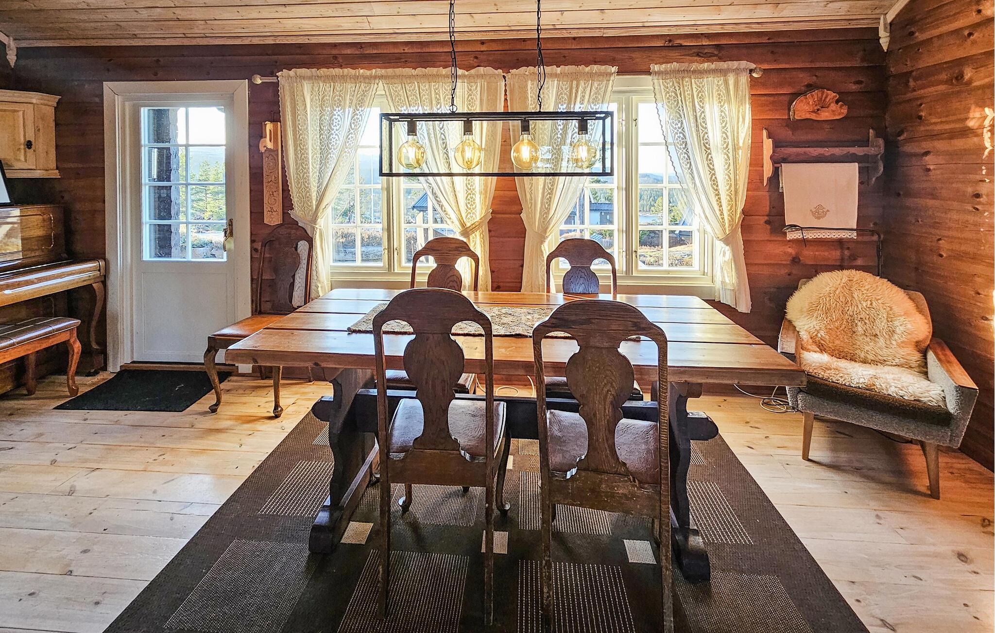 Midt i Fagerfjells fortryllende sølandskab byder dette rummelige feriehus jer velkommen med en hyggelig, rustik atmosfære og moderne komfort. Her kan I nyde harmoniske aftener ved brændeovnen, hyggelige måltider og muntre spilleaftener ved det lange træbord, selv med en større gruppe. Slap af efter en lang dag med en film eller i saunaen, eller fordyb jer i jeres ferielæsning i de komfortable læsestole.
