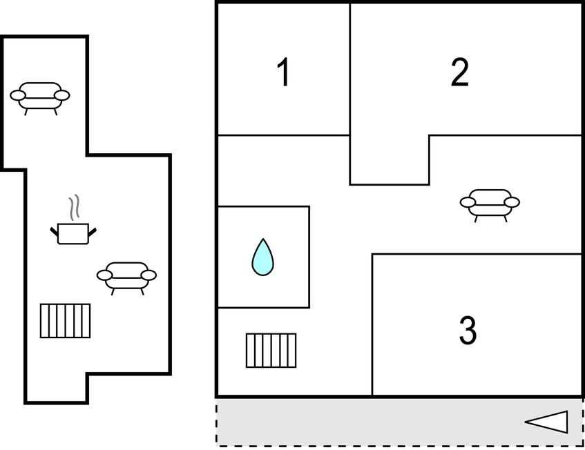 Soveværelse (nr. 2) - 1 Soveplads. (Enkeltseng(e)). 2 Sovepladser. (Dobbeltseng(e)).