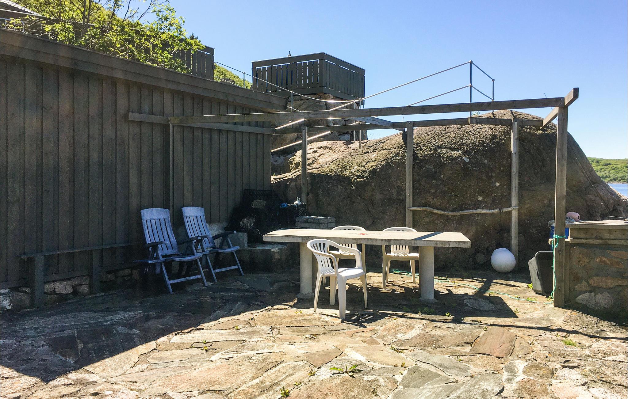 Drømmer I om en afslappende ferie med havudsigt og nærhed til naturen, er I kommet til det rigtige sted. Beliggende lige ved klippekysten har dette hus alt, hvad I behøver for et behageligt ophold. Den lyse stue indbyder til afslappende timer og hyggelige aftener foran brændeovnen. Udnyt den skønne terrasse med havemøbler og gode solforhold. Nyd en kop friskbrygget kaffe om morgenen og bliv inspireret af den storslåede udsigt. Slut dagen af i havemøblerne, mens I lader blikket vandre ud over havet og skærgården.