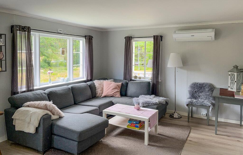 Dette feriehus giver jer mulighed for at tilbringe en afslappende ferie i naturlige omgivelser. Sæt jer til rette i husets stue. Gør det behageligt i den store hjørnesofa og nyd udsigten over naturen gennem de rummelige vinduer. Ved spisebordet kan hvert måltid nydes i en afslappet atmosfære. Tilbered nemt måltiderne i det praktiske køkken, som lægger op til at dele madlavningsoplevelser sammen.