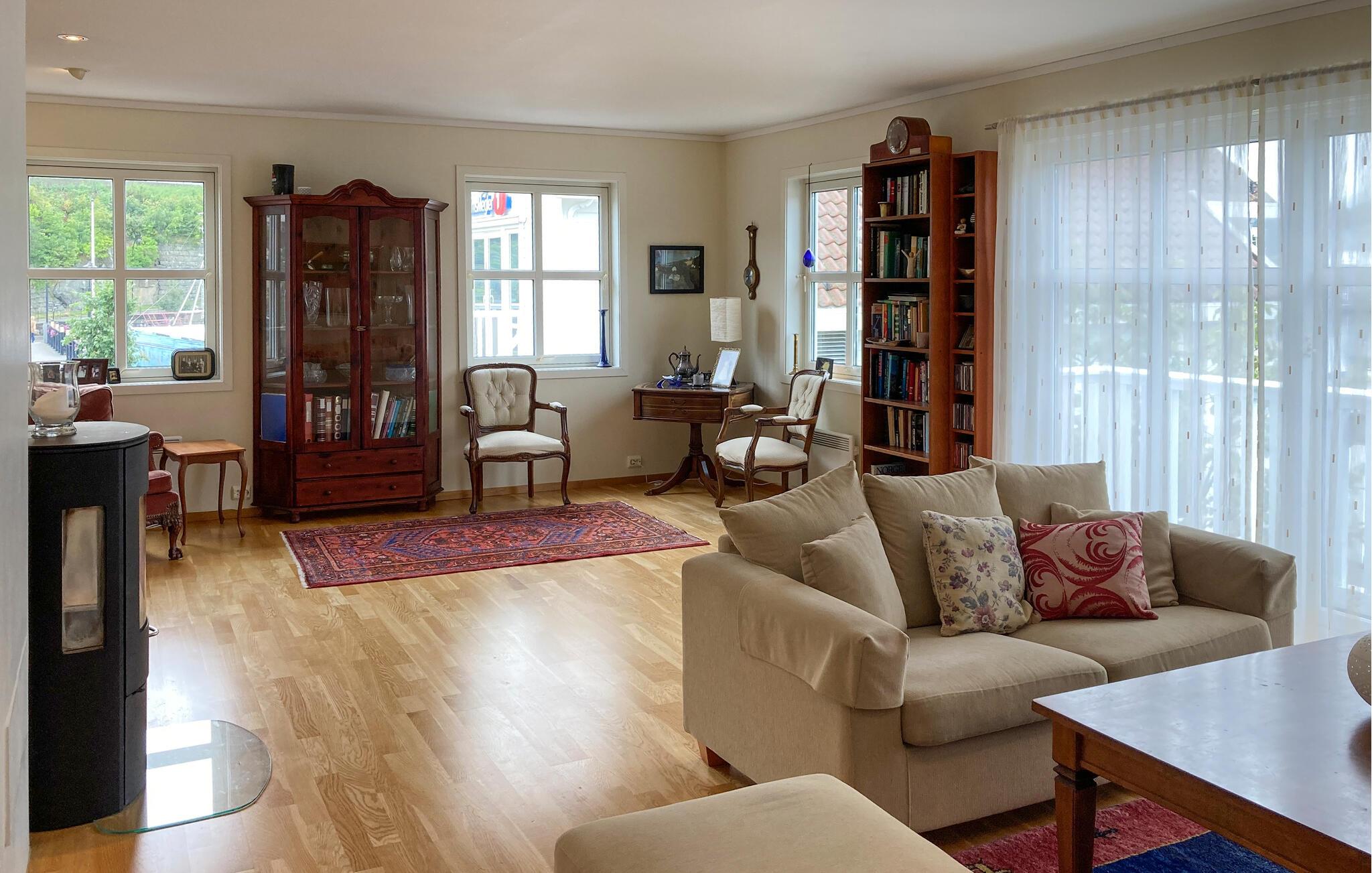 Denne store lejlighed kombinerer harmonisk hygge, komfort og et strejf af nostalgi. En lys stue med en behagelig sofa og bogreoler samt et praktisk køkken skaber en atmosfære, hvor I hurtigt kan slappe af. Lad batteriene op med en afslappende kop kaffe, en god bog eller at lytte til musik.